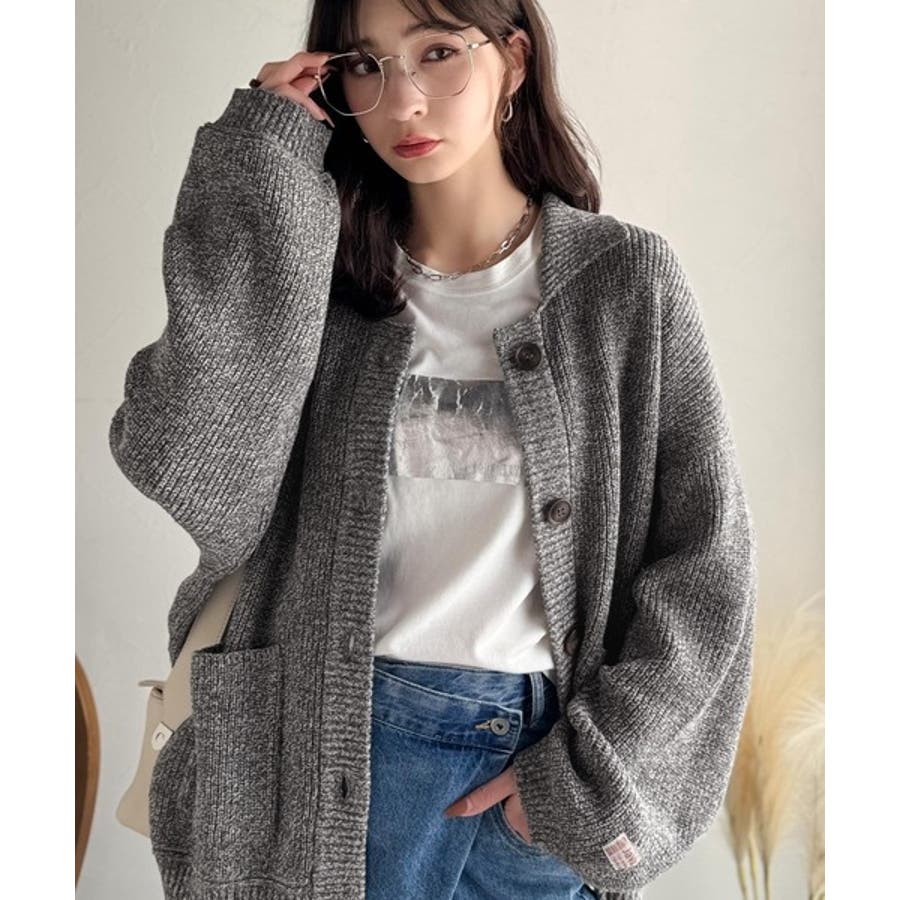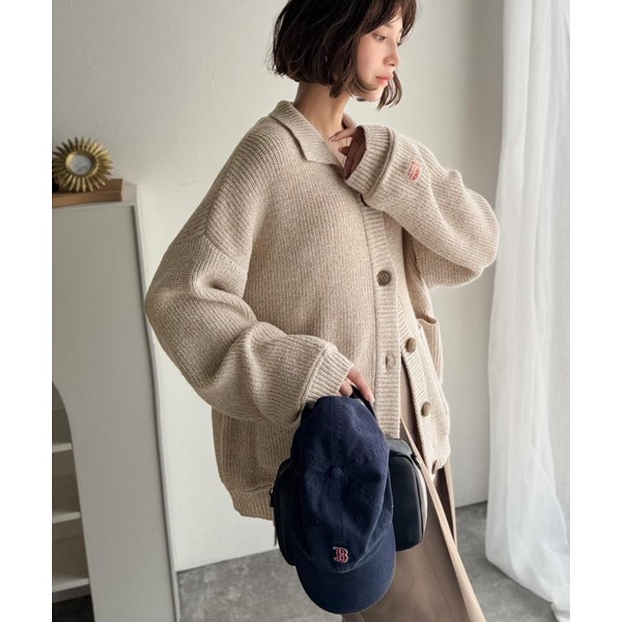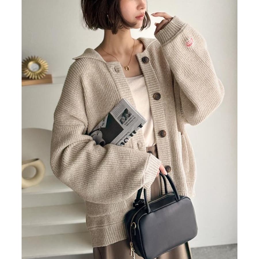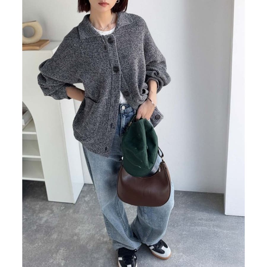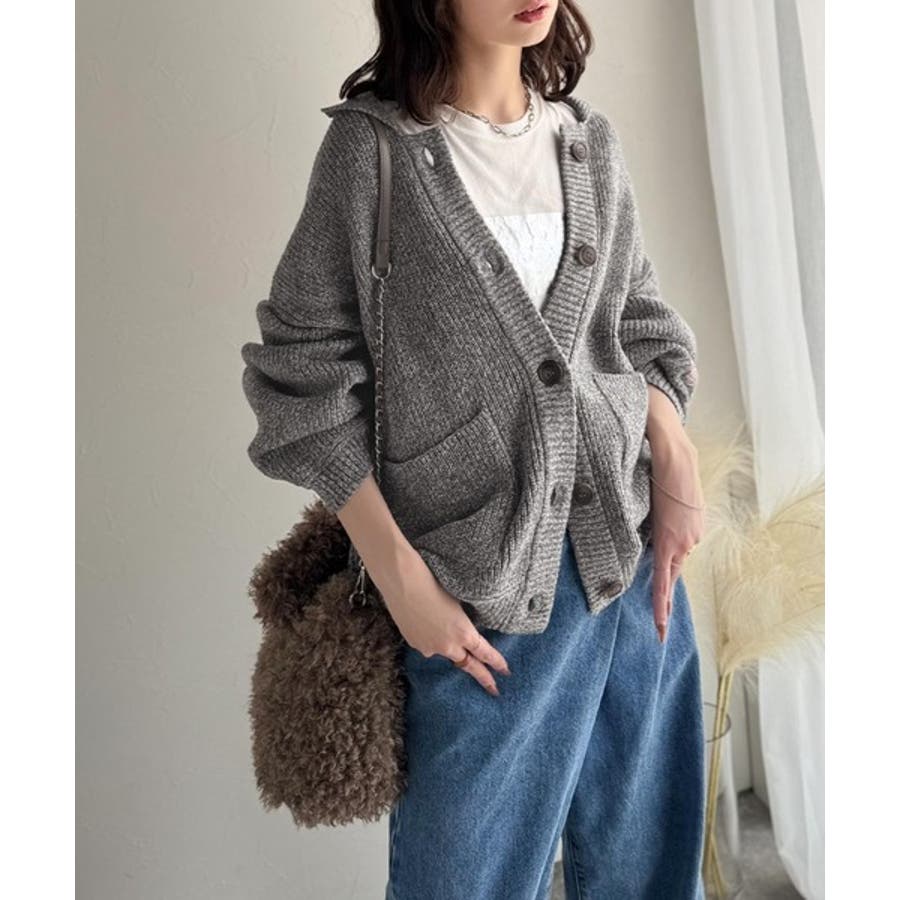 メンズライクなこなれ感を演出。メランジ襟付きカーディガン