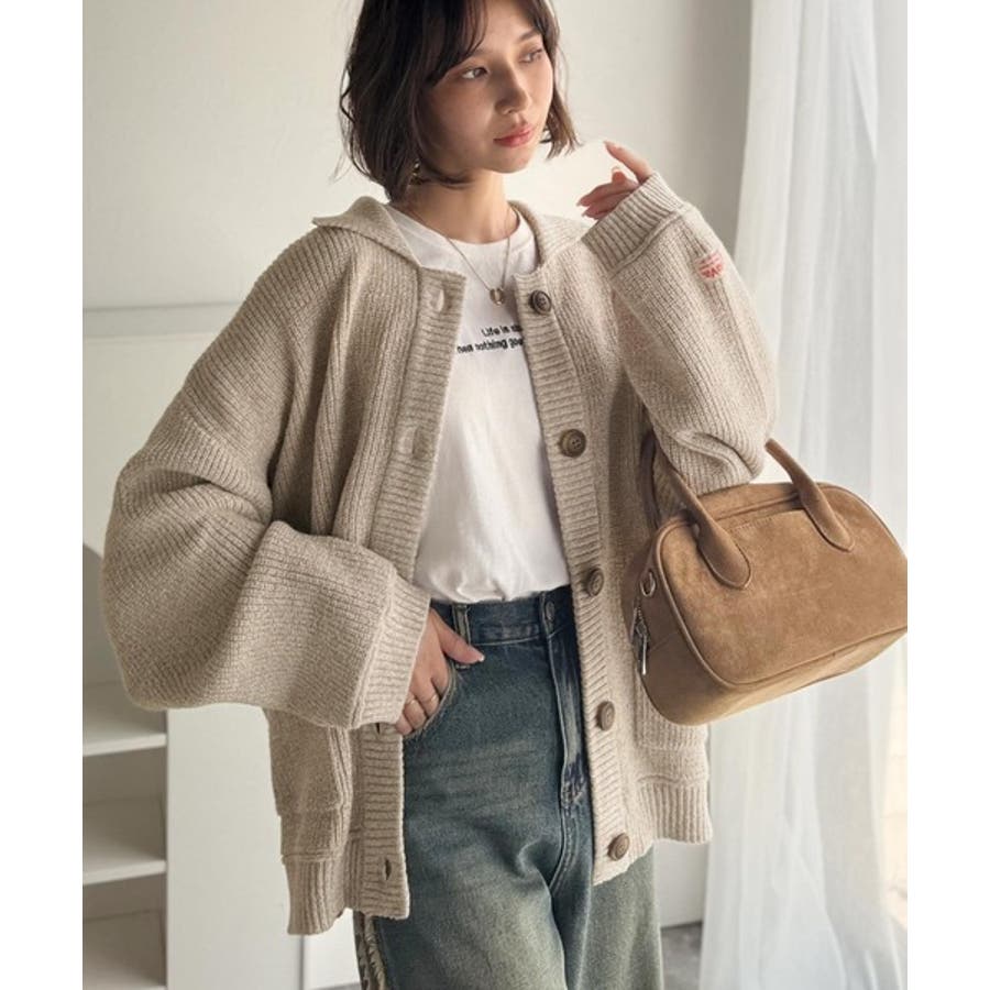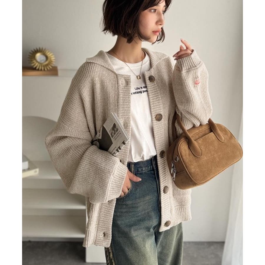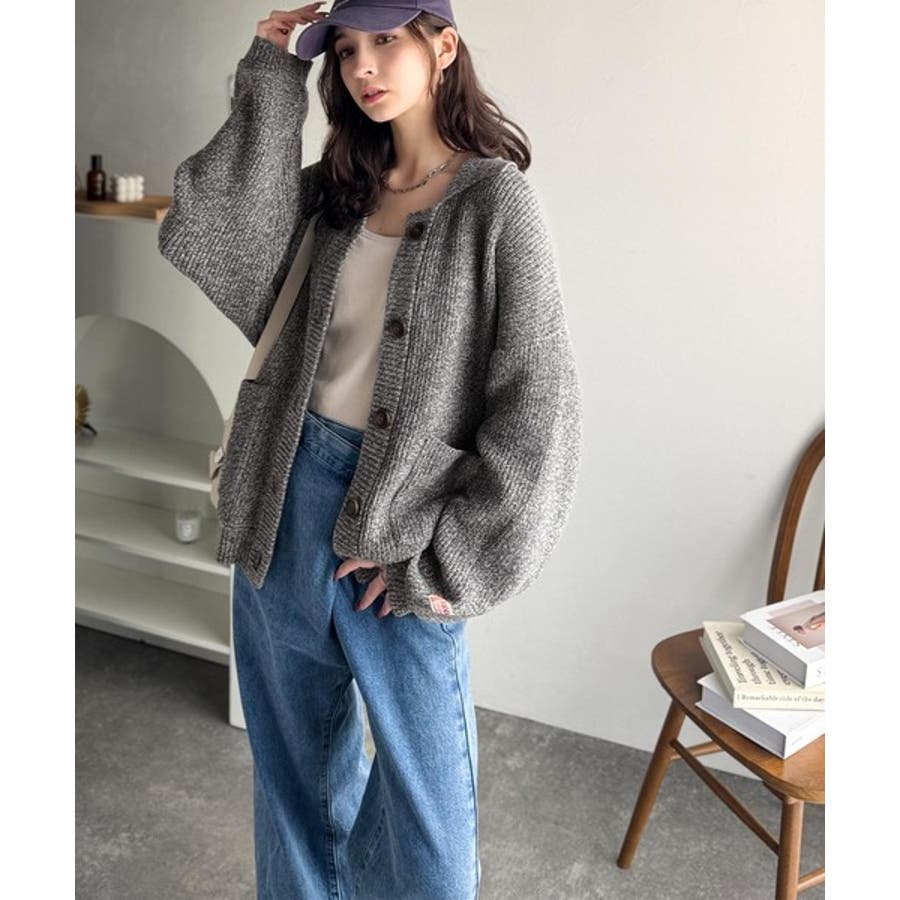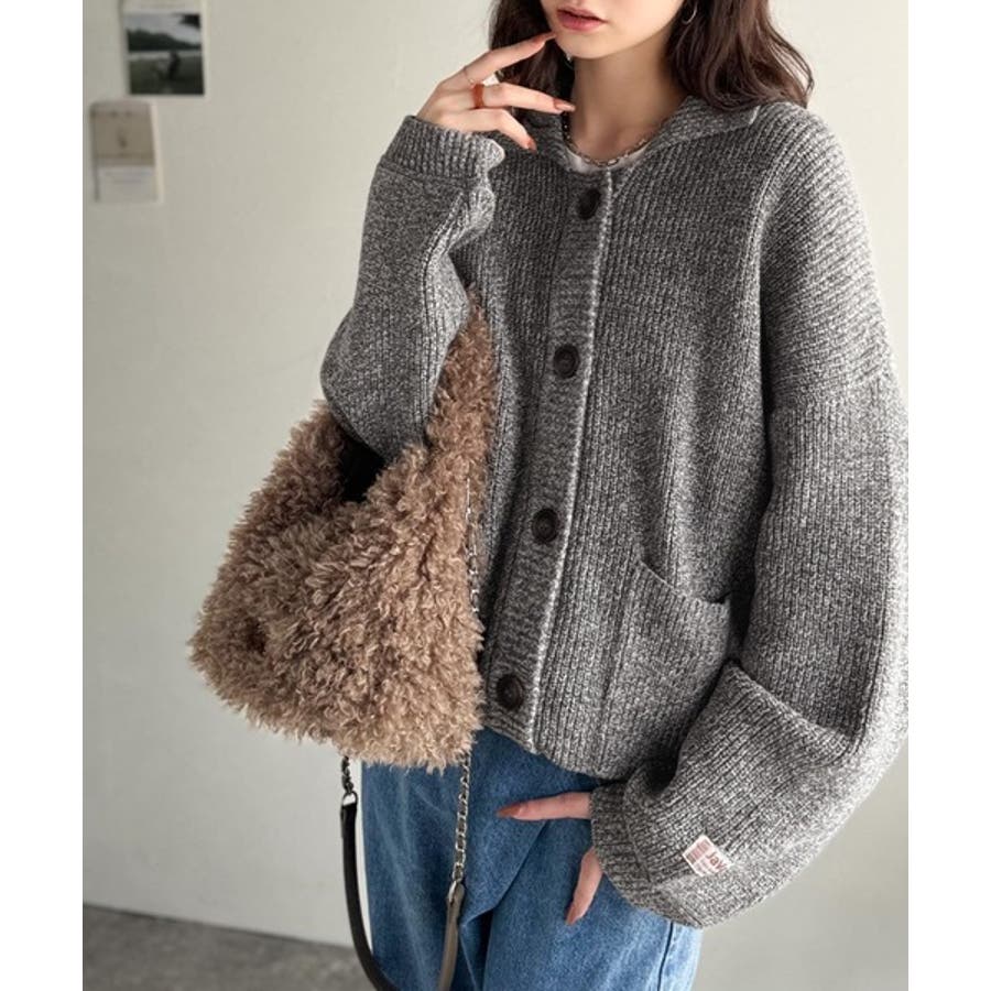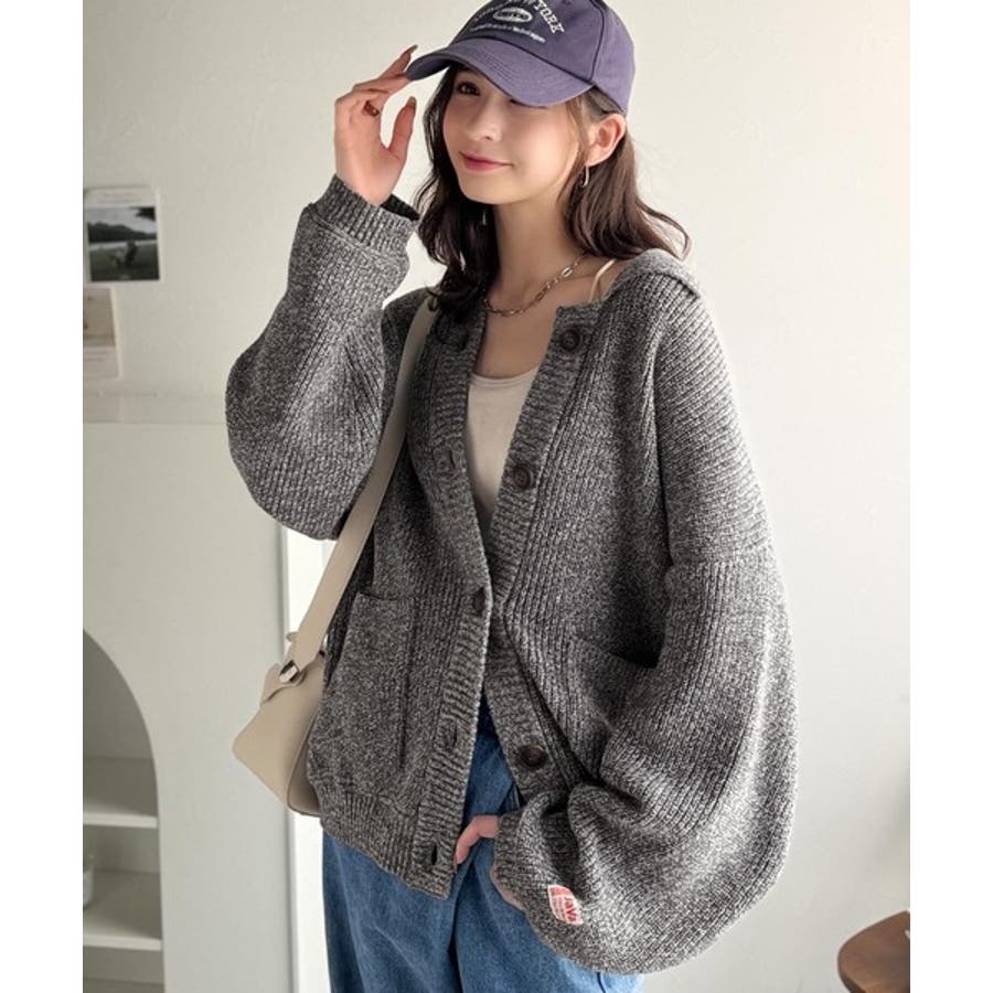 メンズライクなこなれ感を演出。メランジ襟付きカーディガン