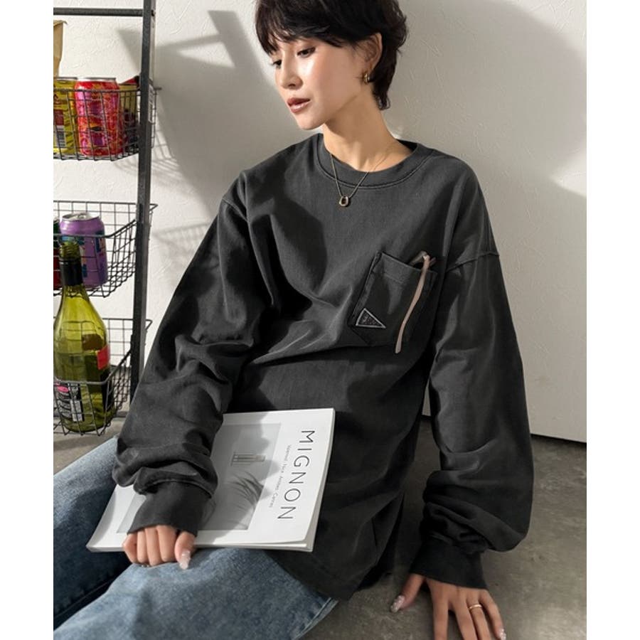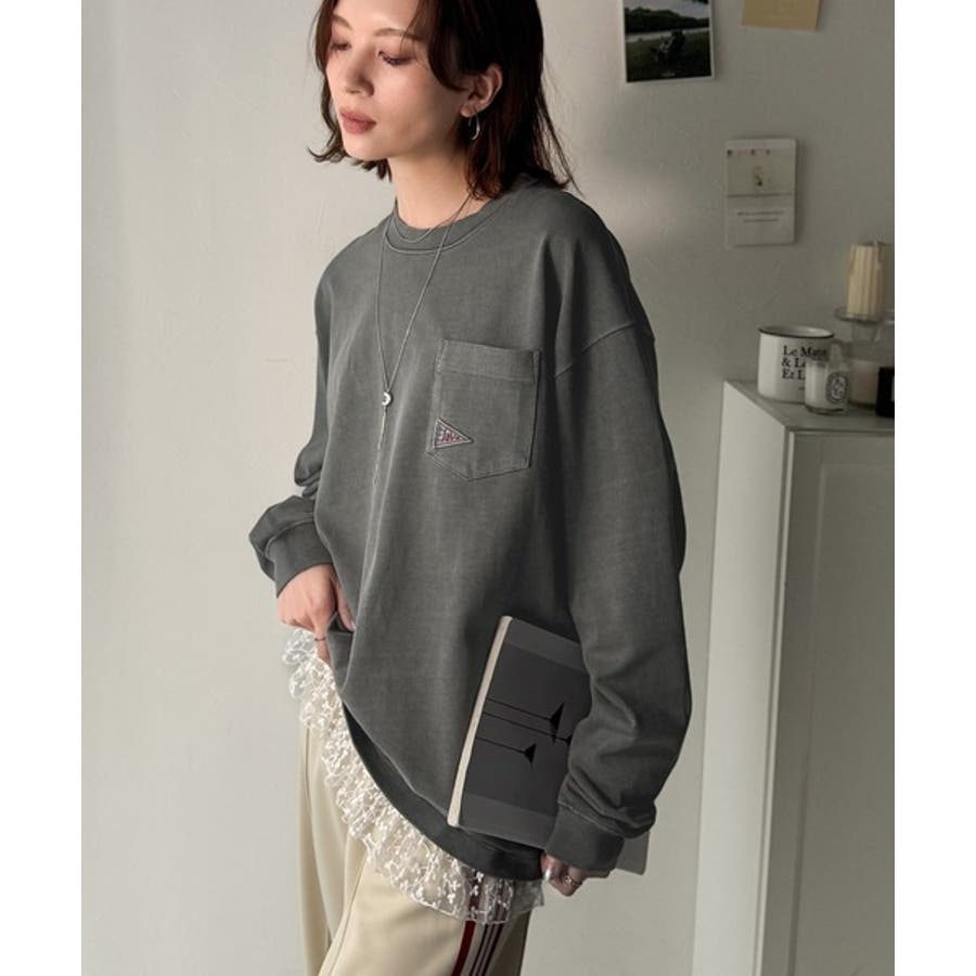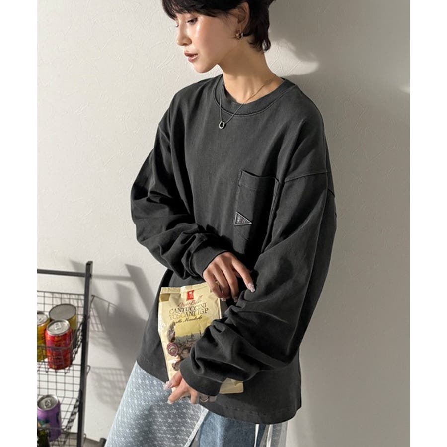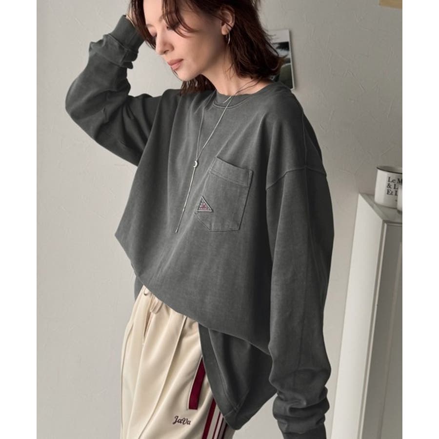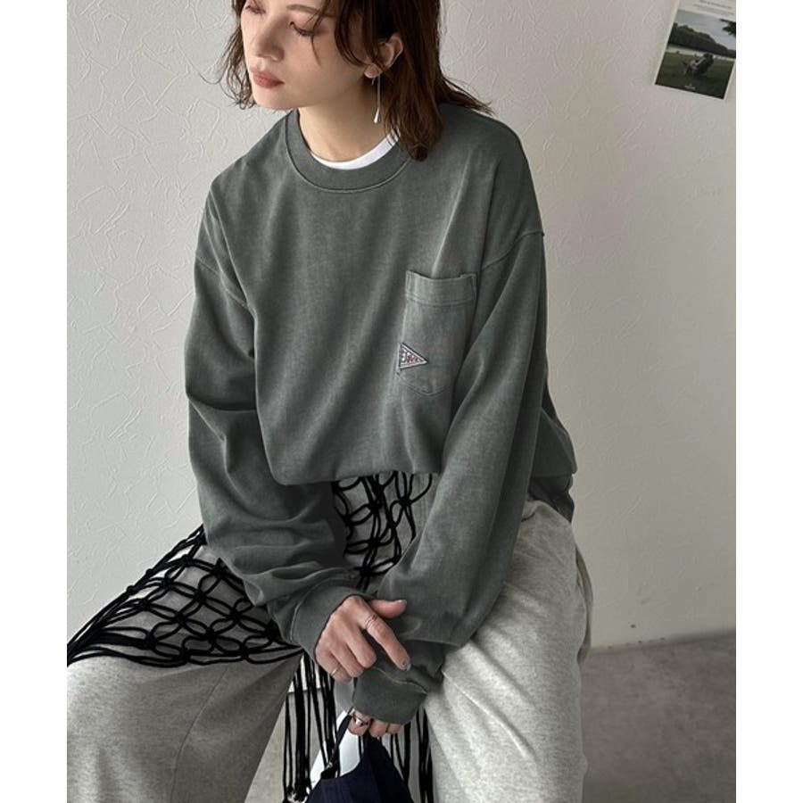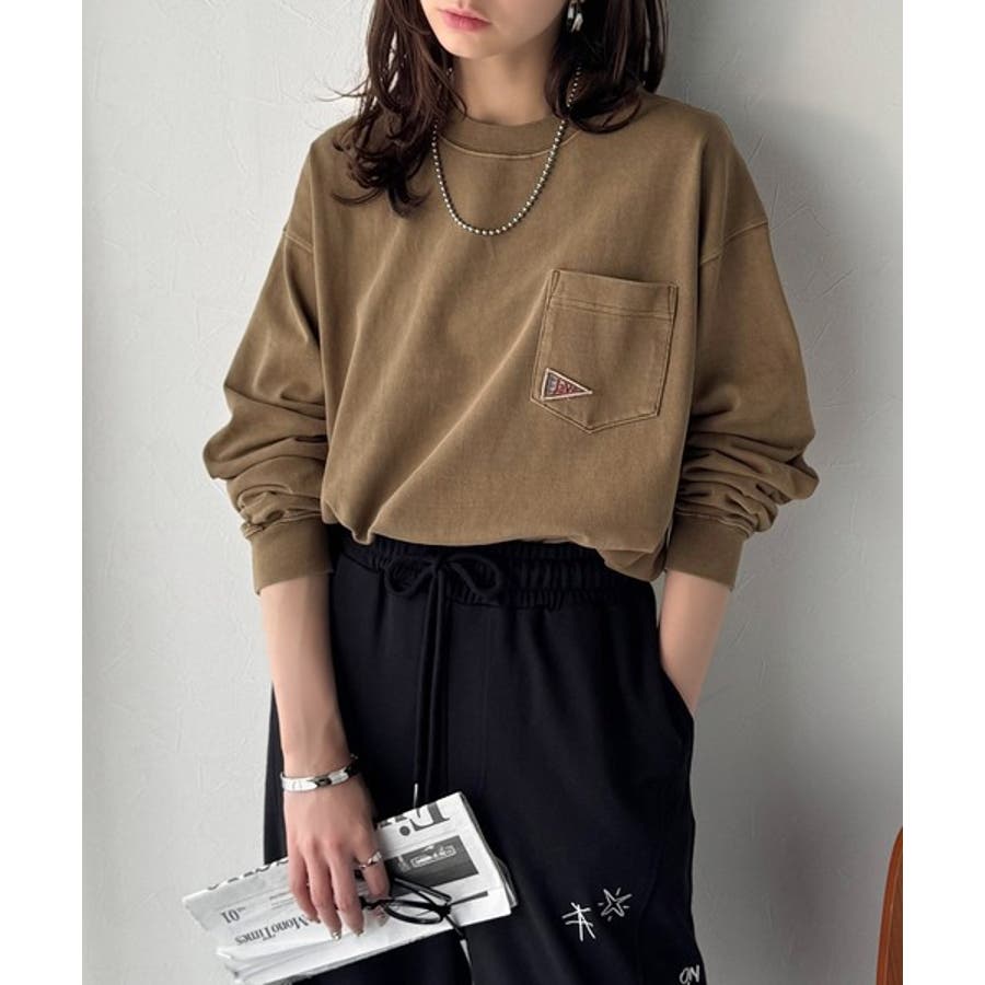 ラフに着映える。ピグメント加工胸元刺繍ワッペンヘビーウェイトポケットロンT