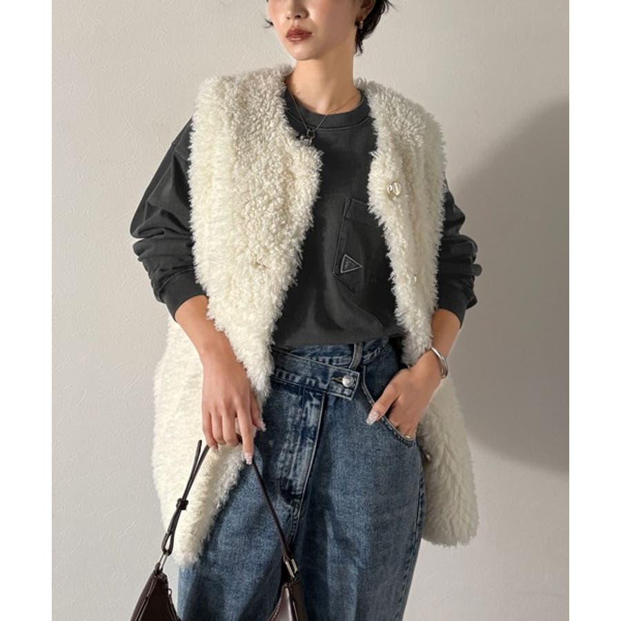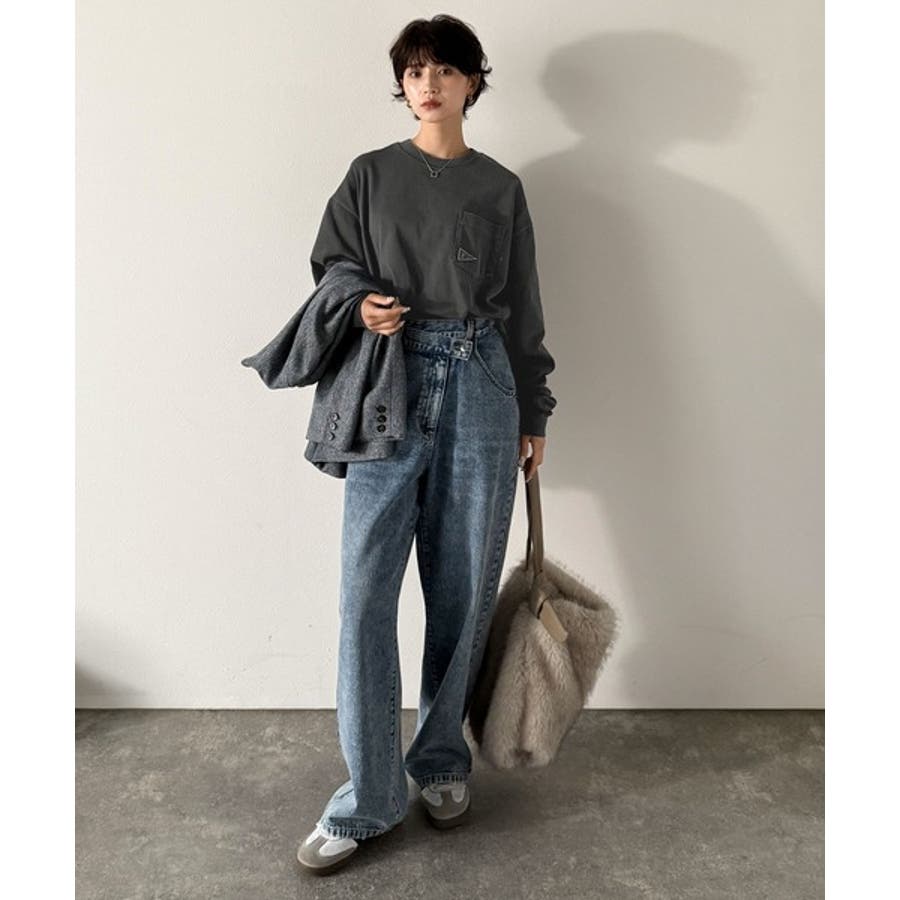 ドロップショルダーで程よくゆるさのあるシルエットだから、こなれ感たっぷり。デニムはもちろん、スラックスやナロースカートとの相性も抜群です。