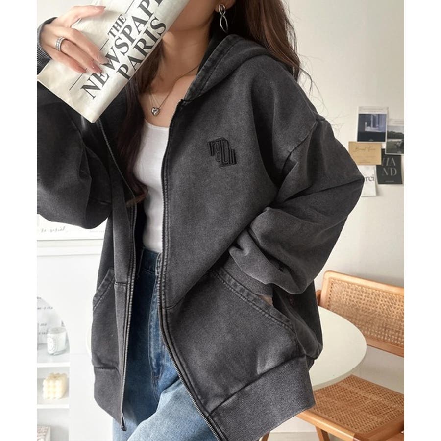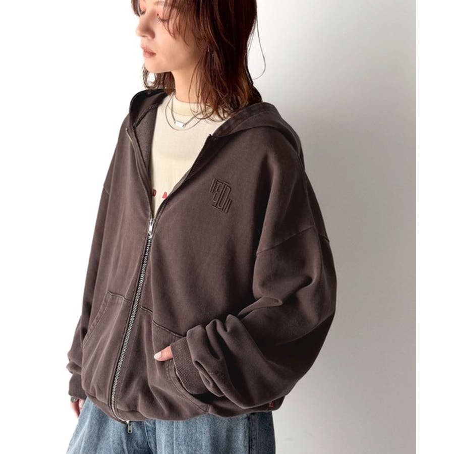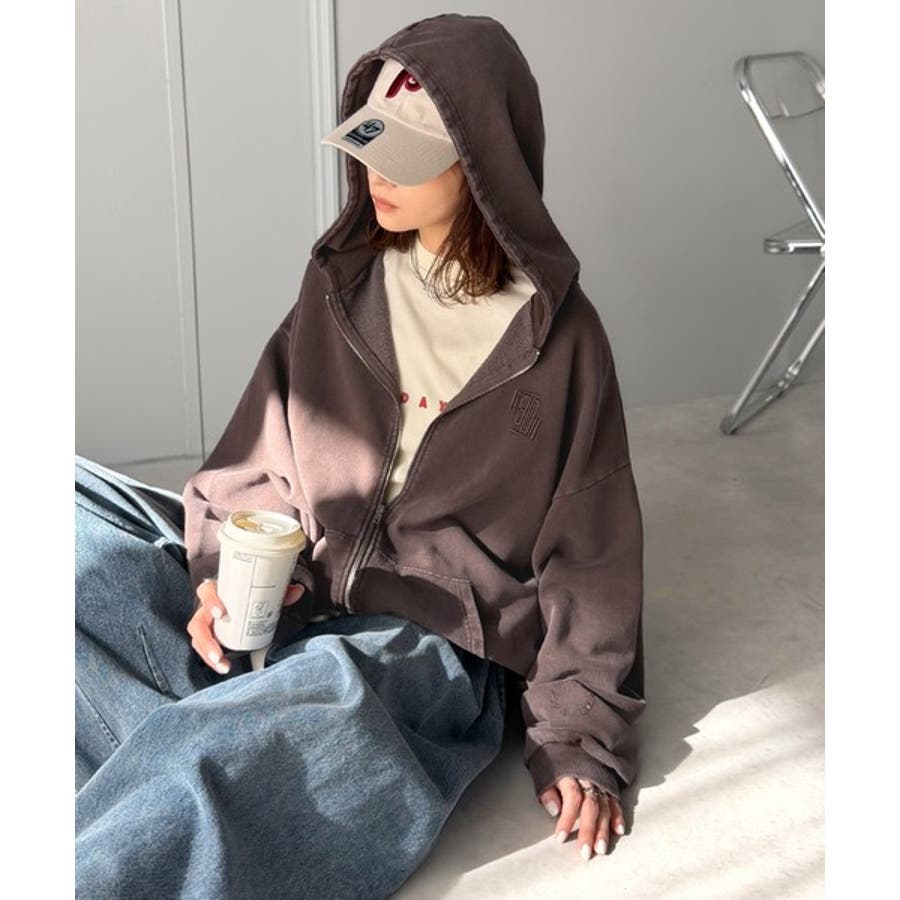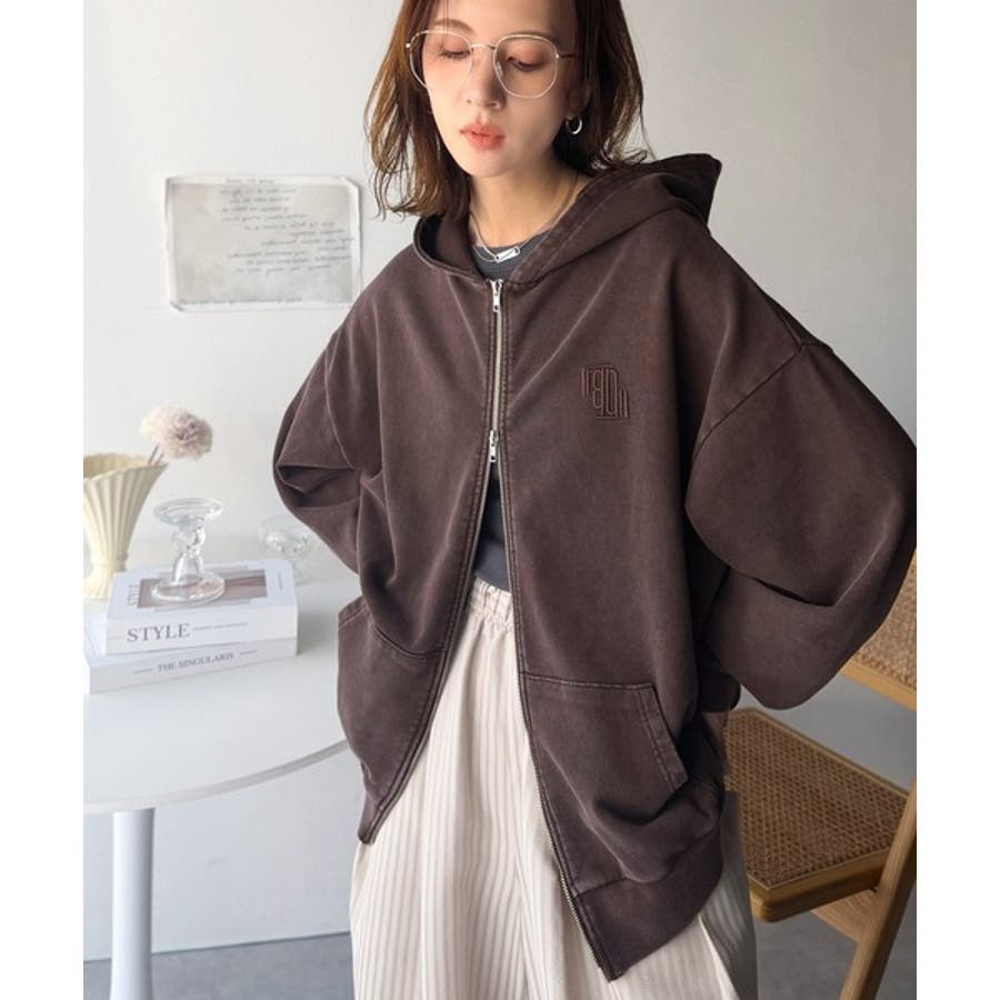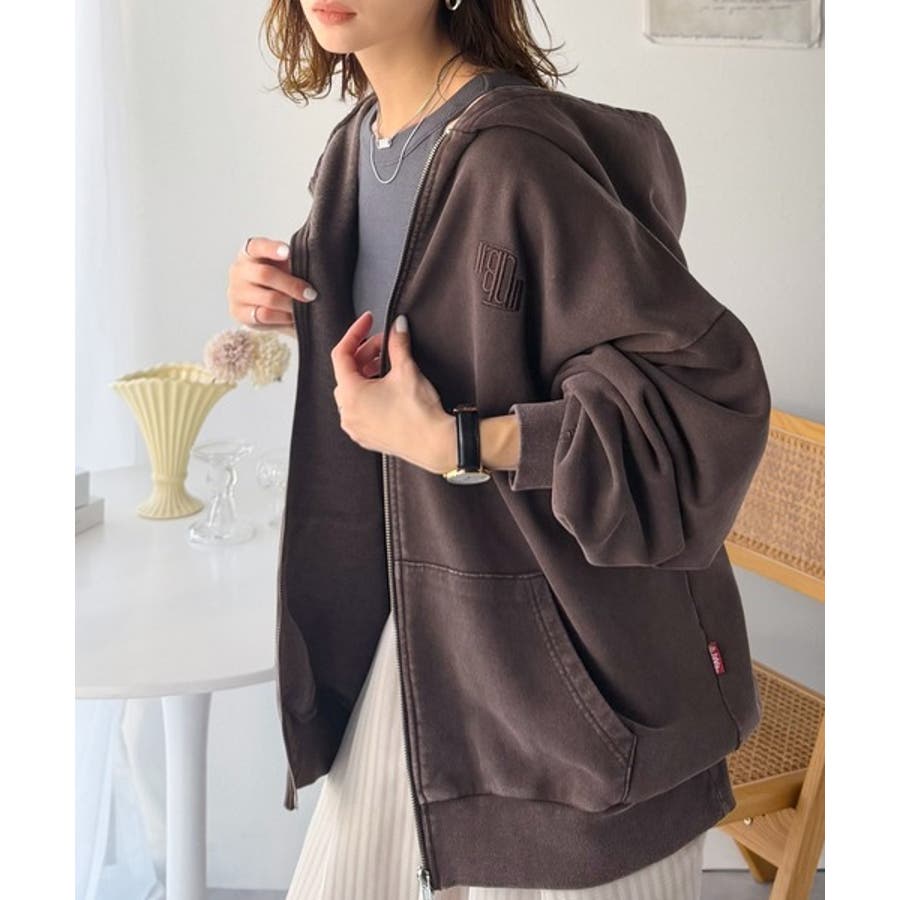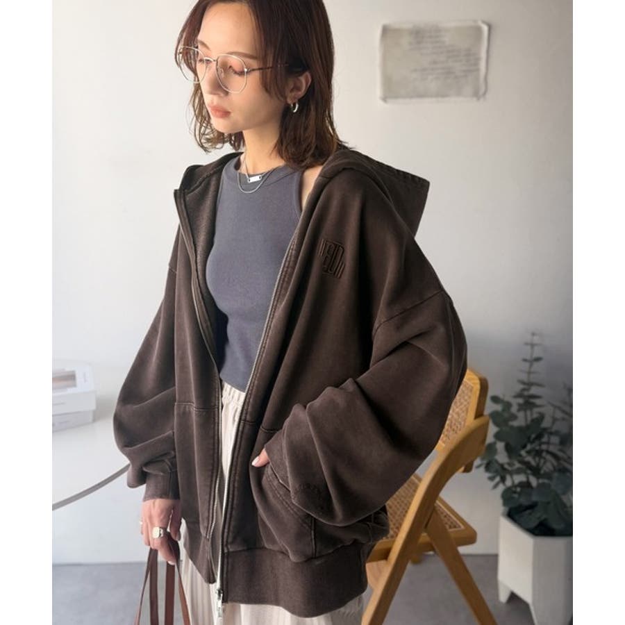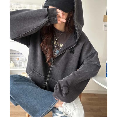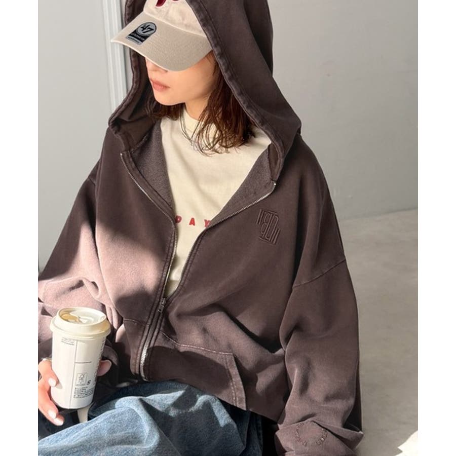大人の抜け感◎ニュアンス色が映える。アシッドウォッシュロゴZIPパーカー