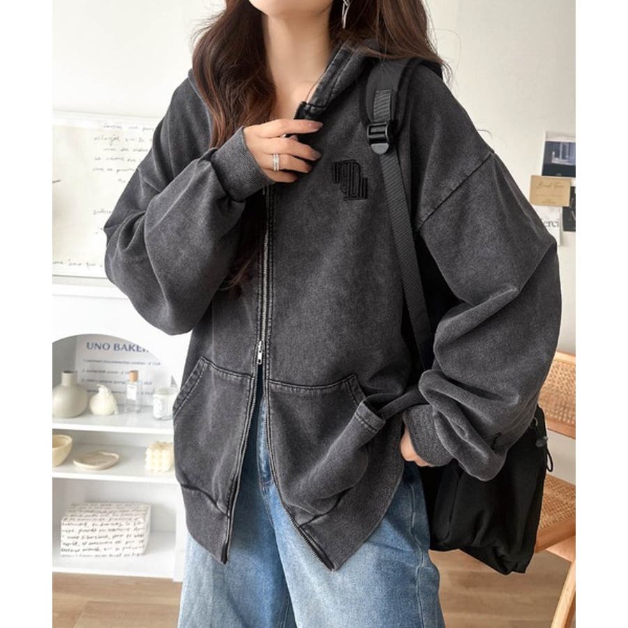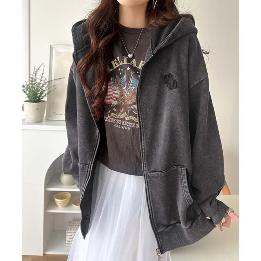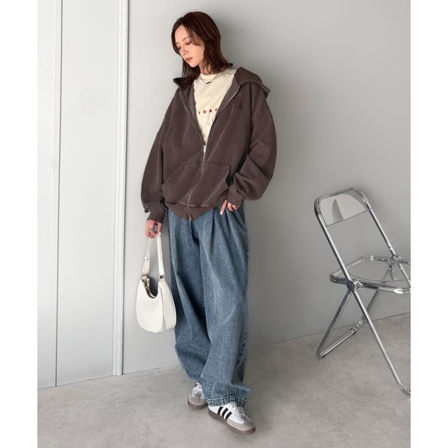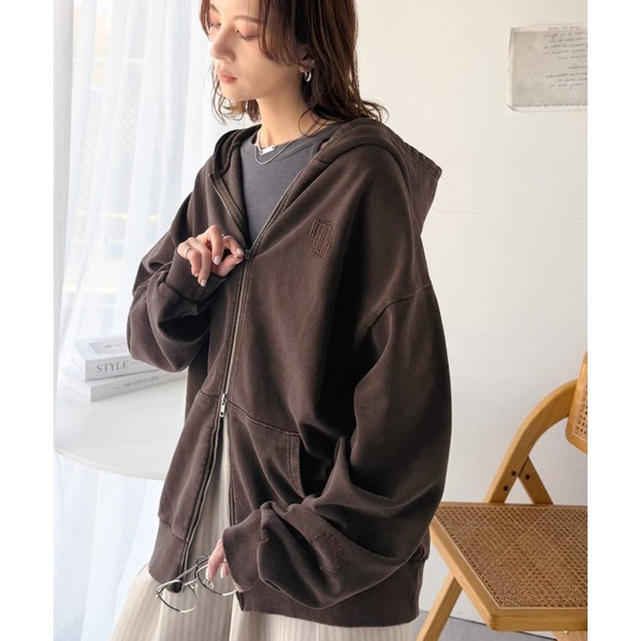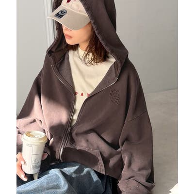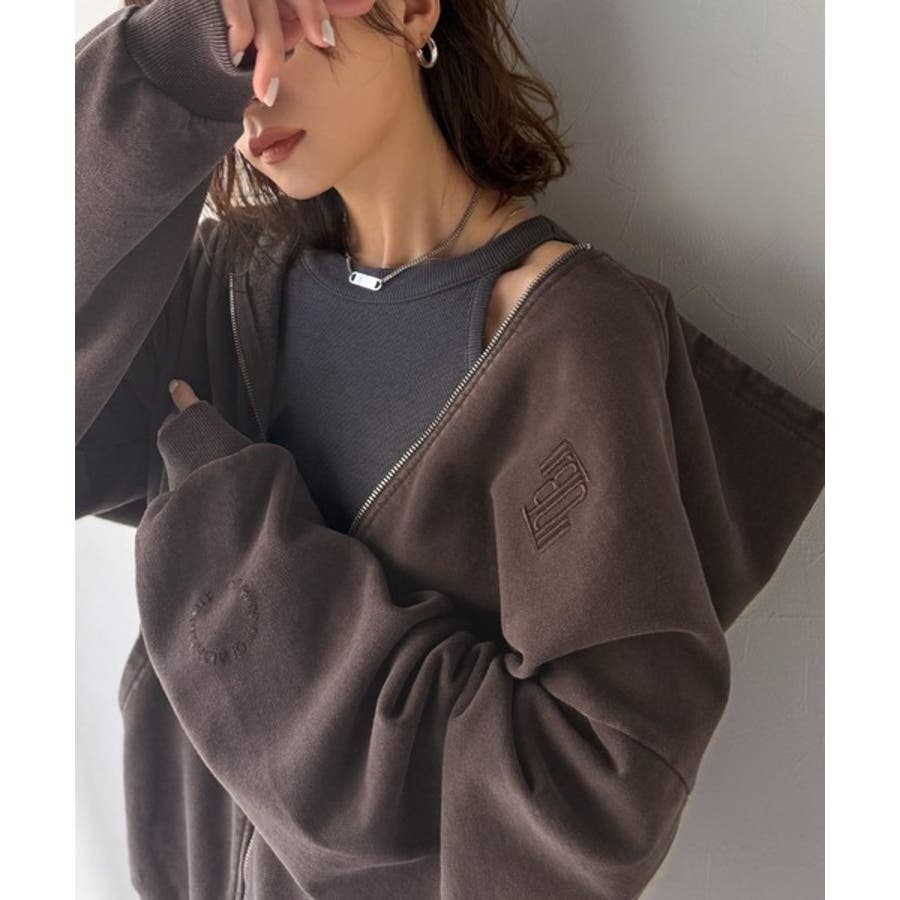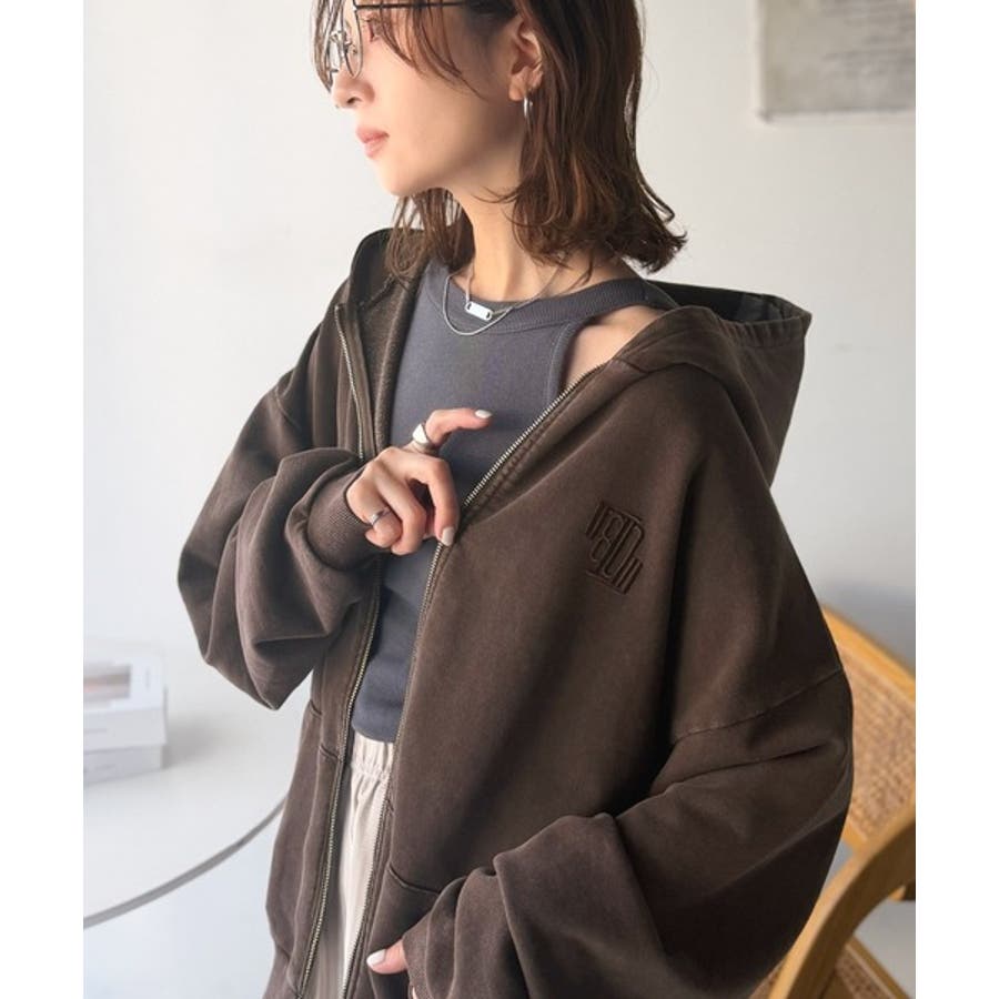 大人の抜け感◎ニュアンス色が映える。アシッドウォッシュロゴZIPパーカー