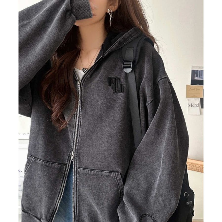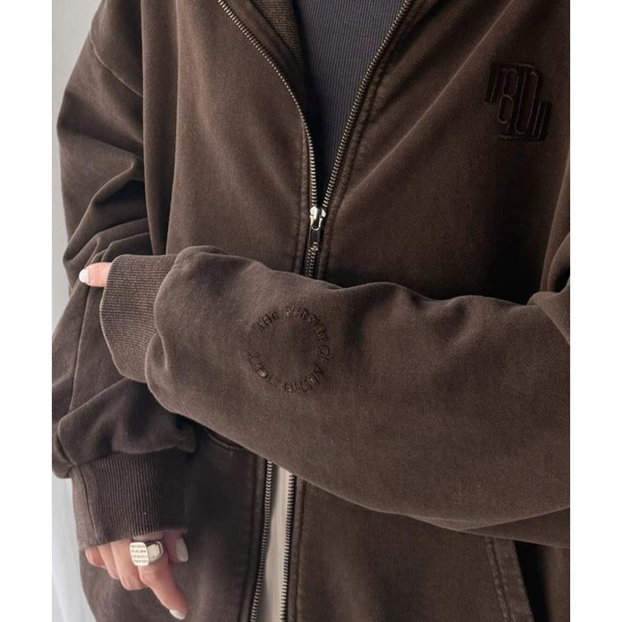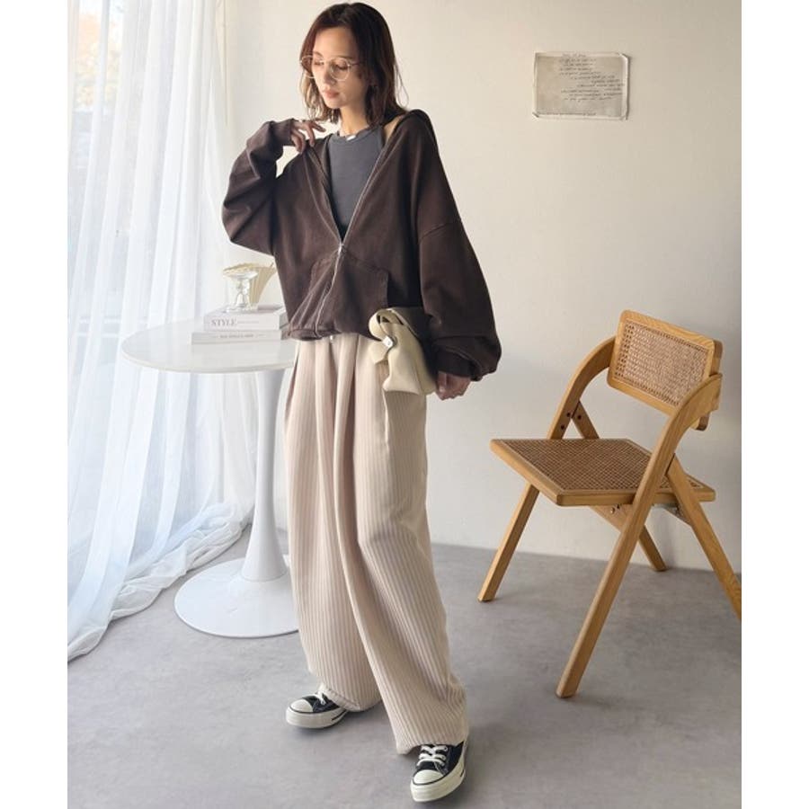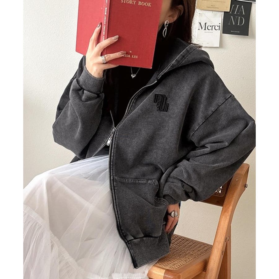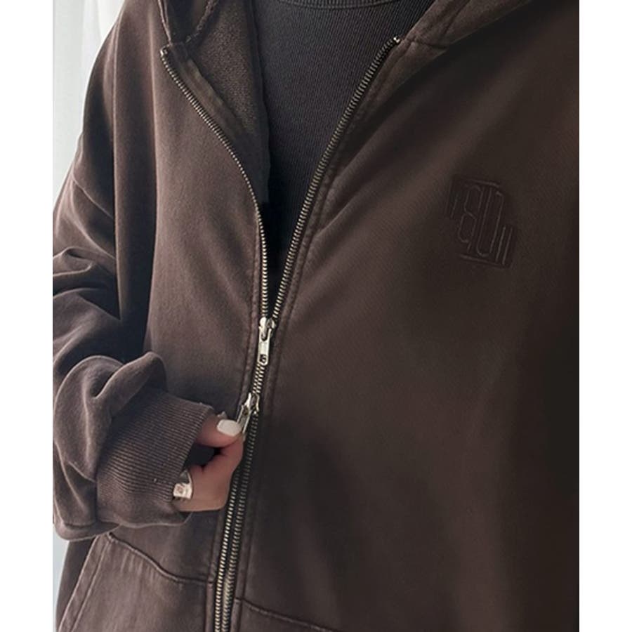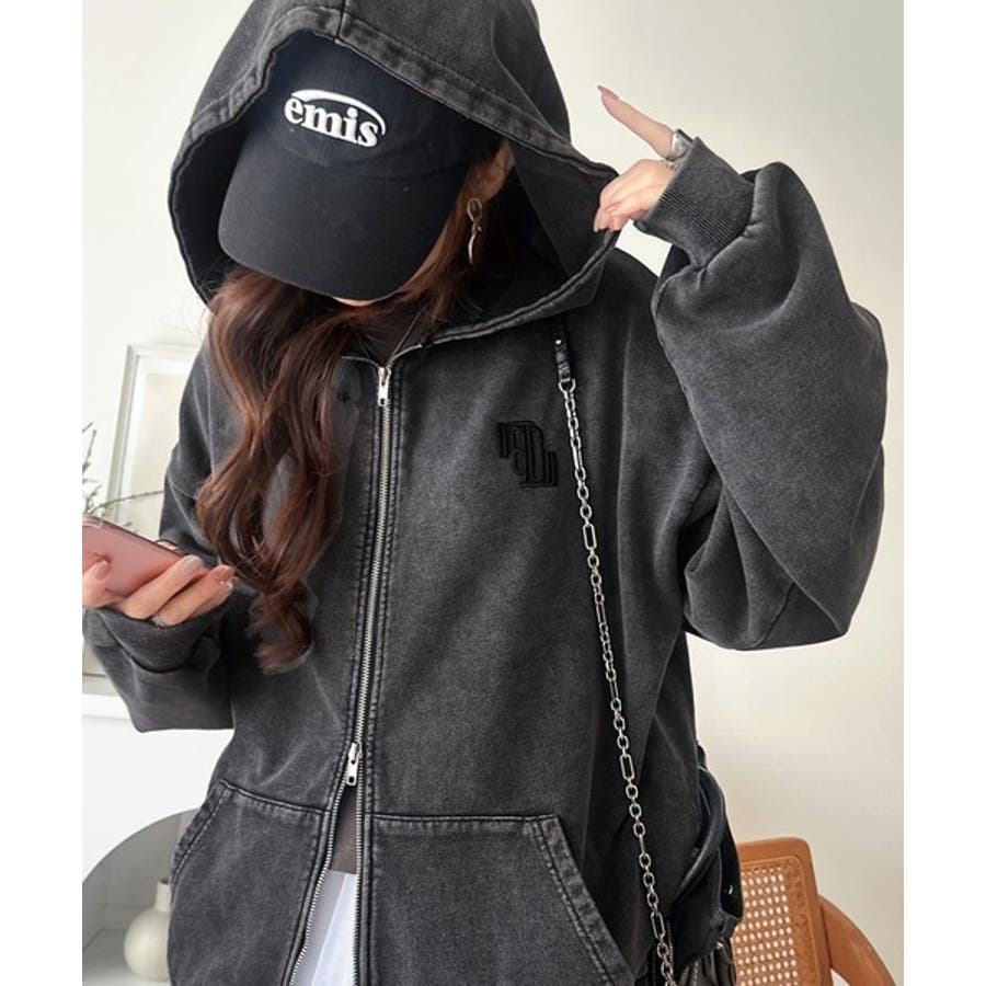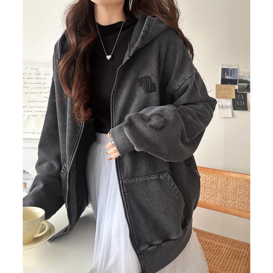 大人の抜け感◎ニュアンス色が映える。アシッドウォッシュロゴZIPパーカー