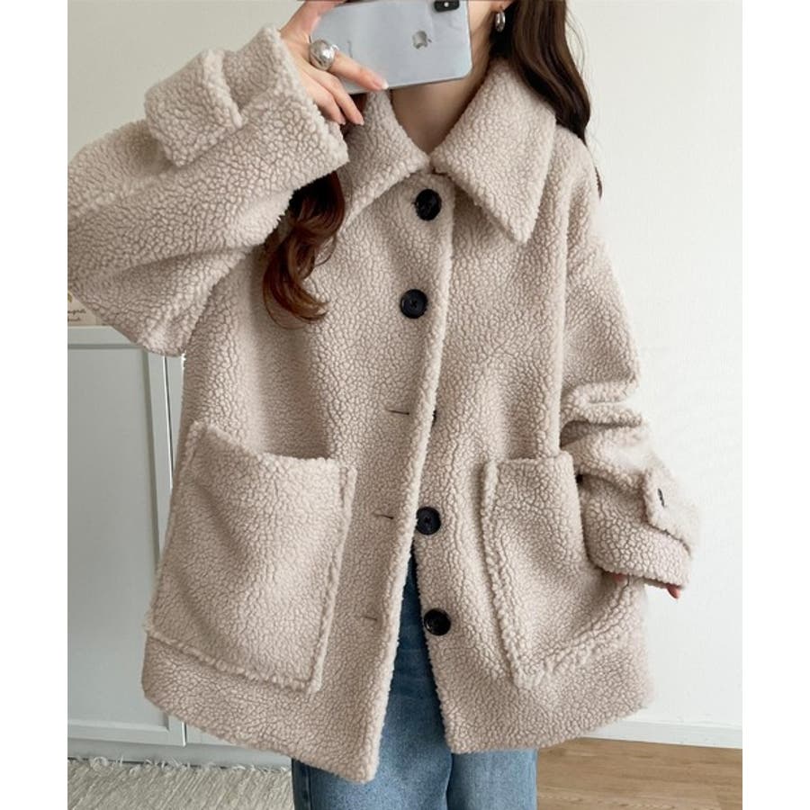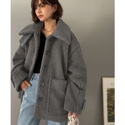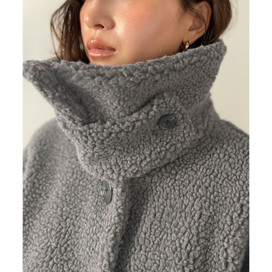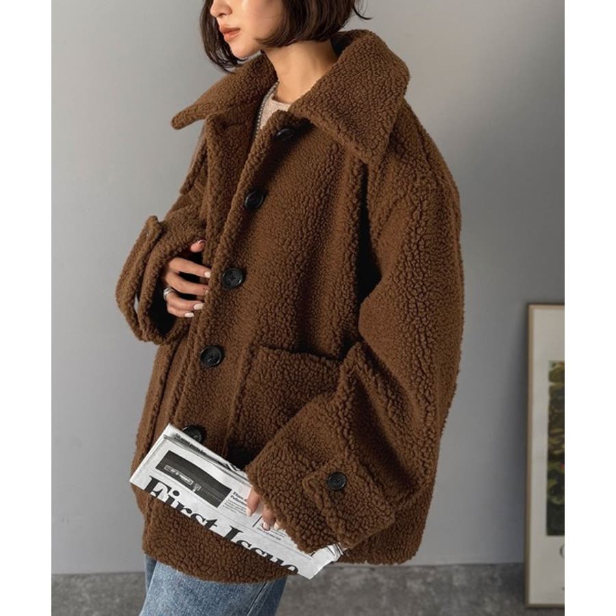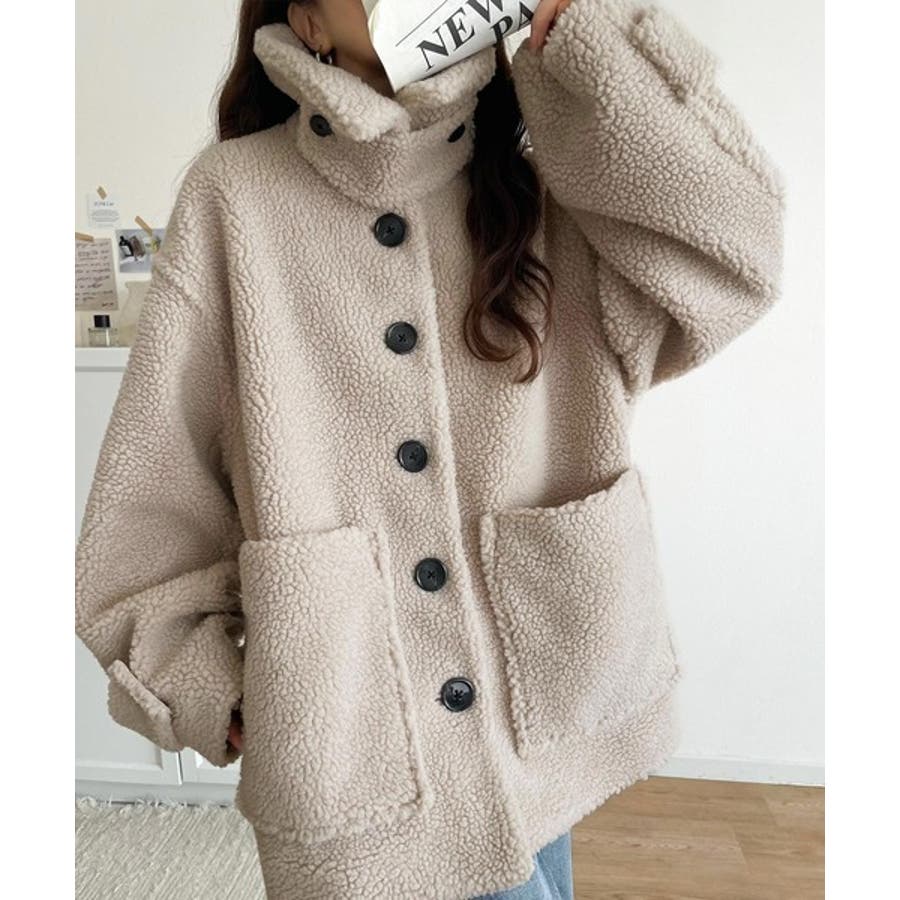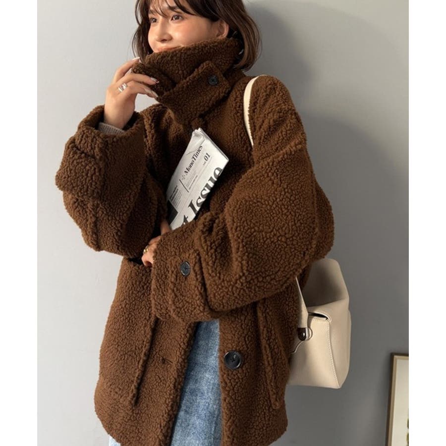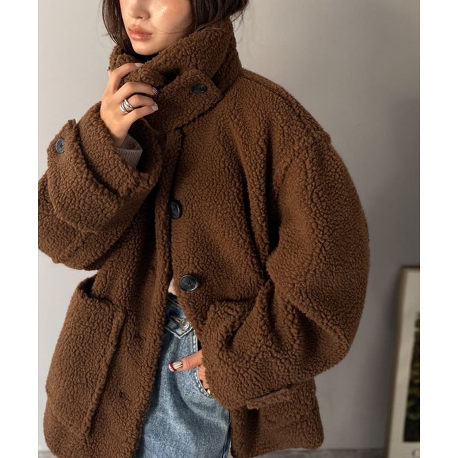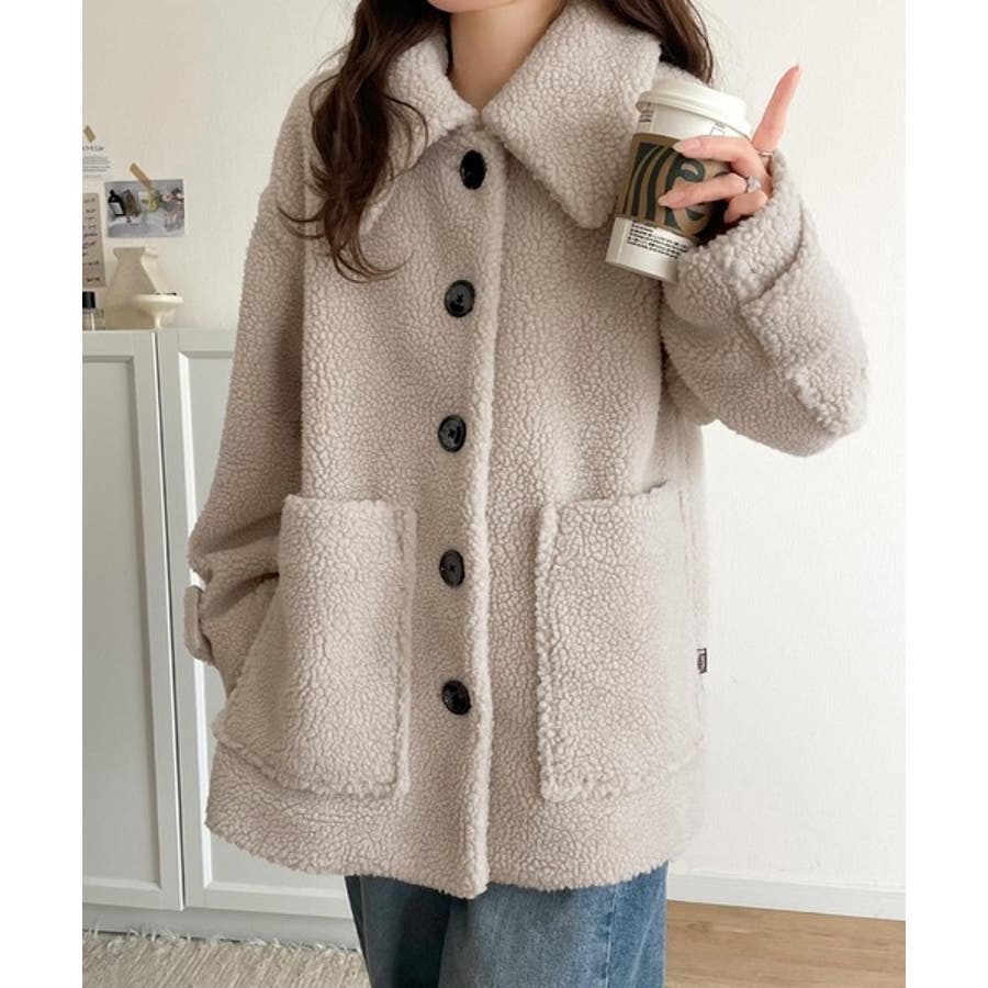 厚手の大粒ボアを使用した、大きめポケットつきショートブルゾン。