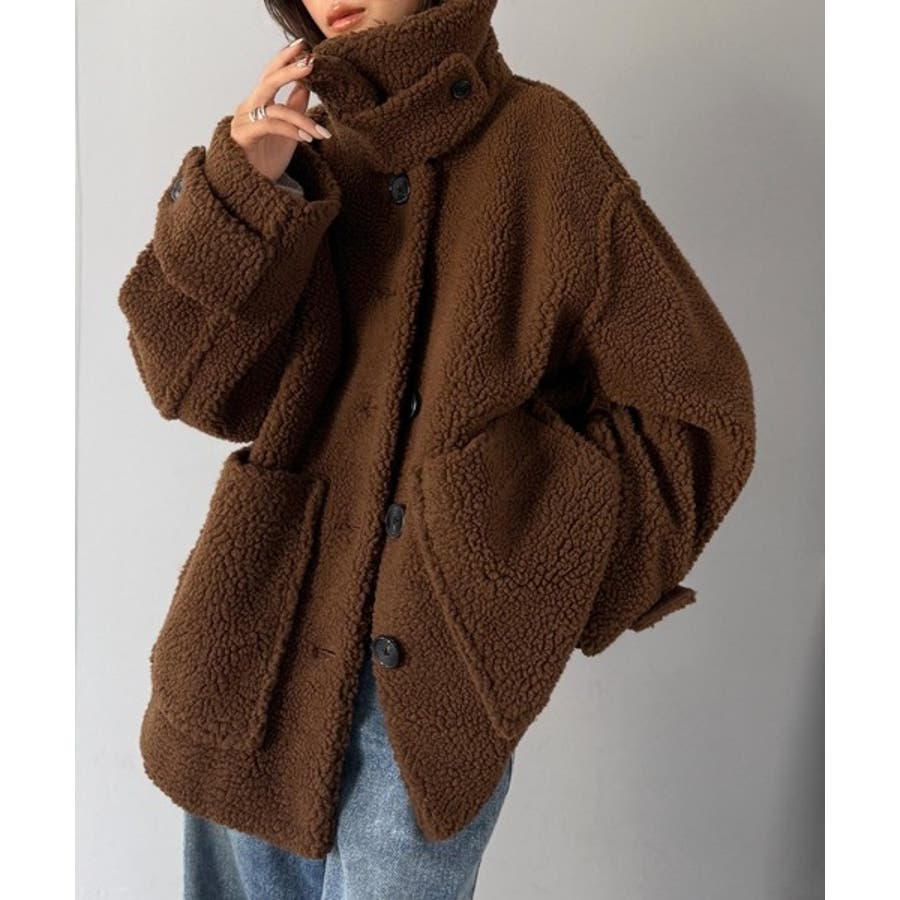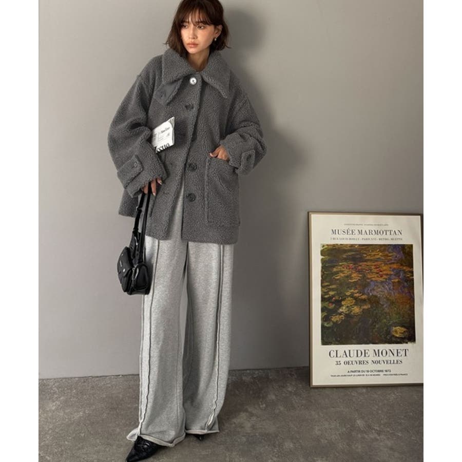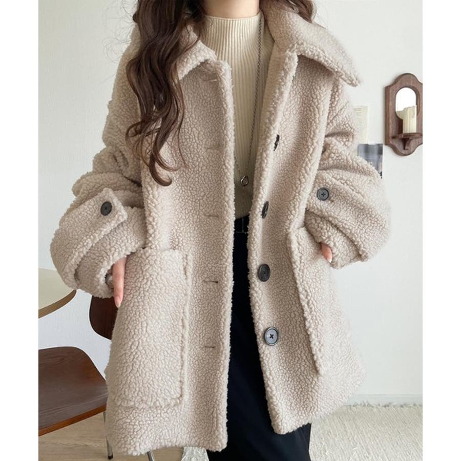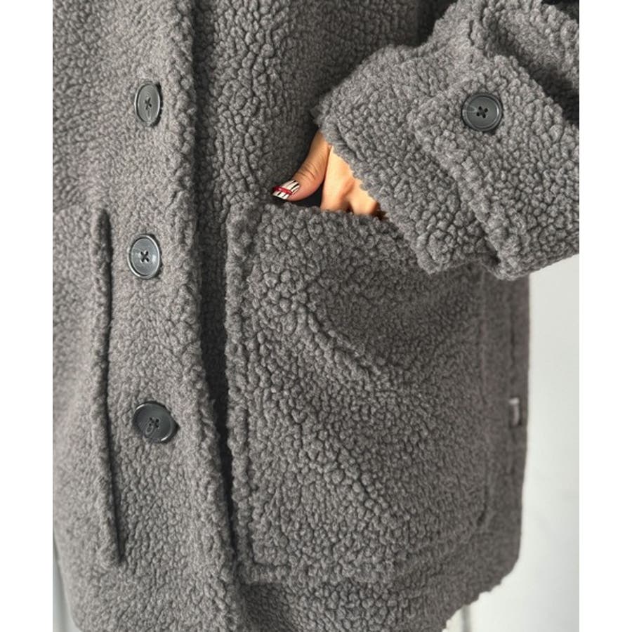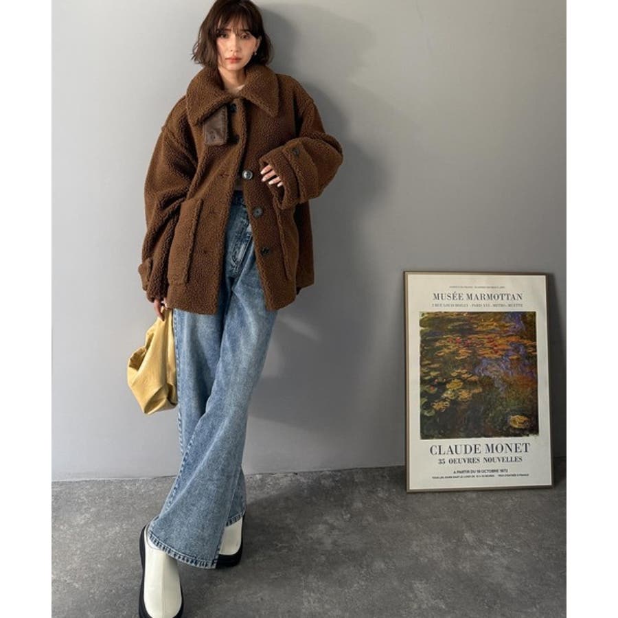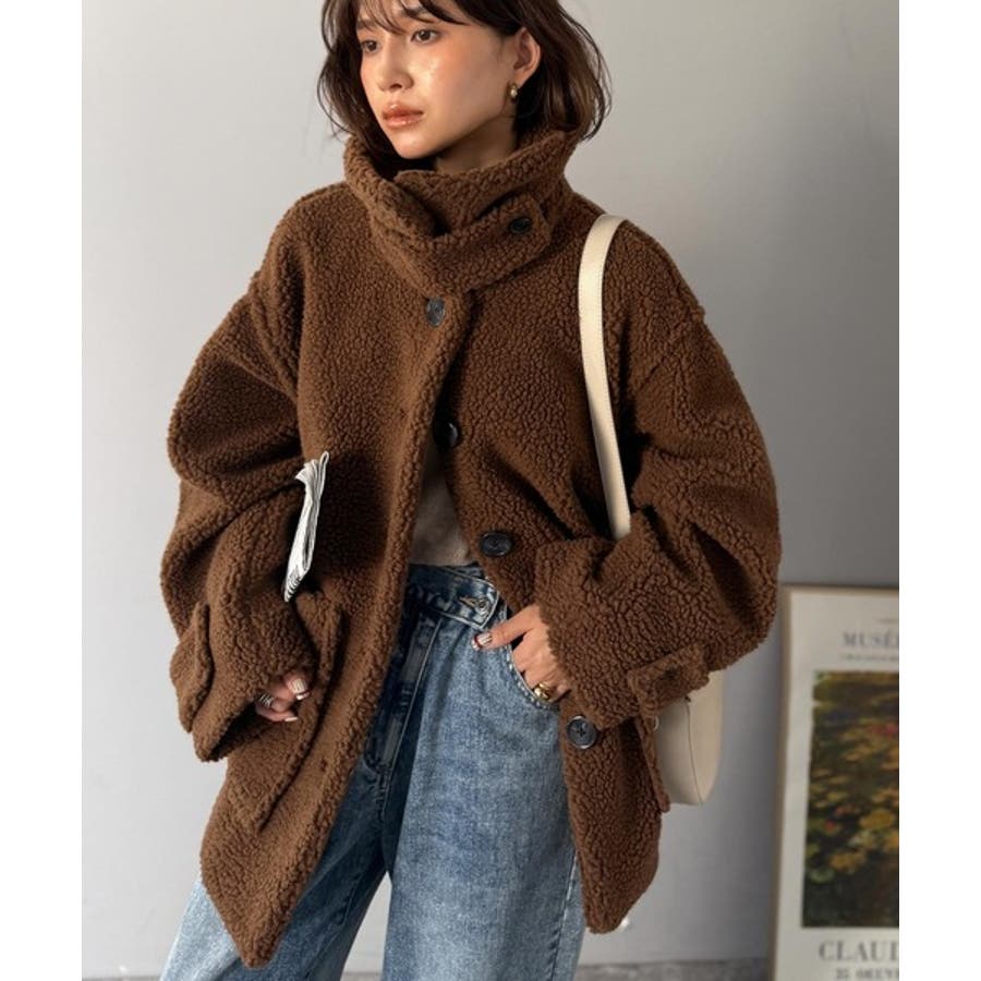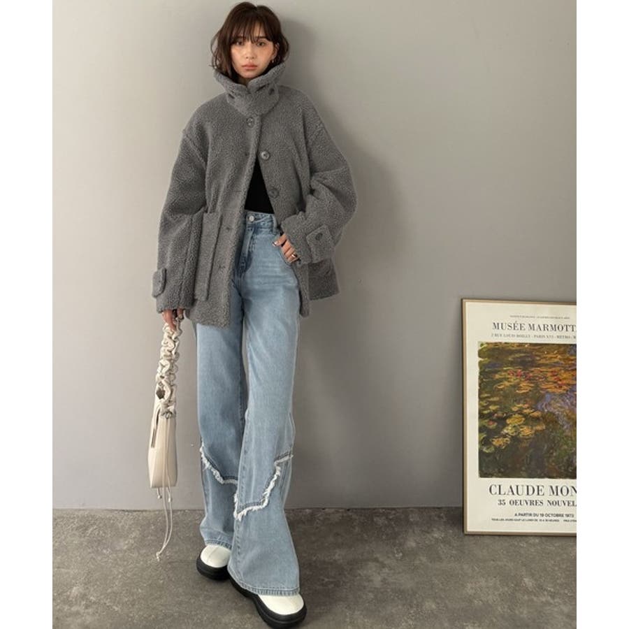 厚手の大粒ボアを使用した、大きめポケットつきショートブルゾン。