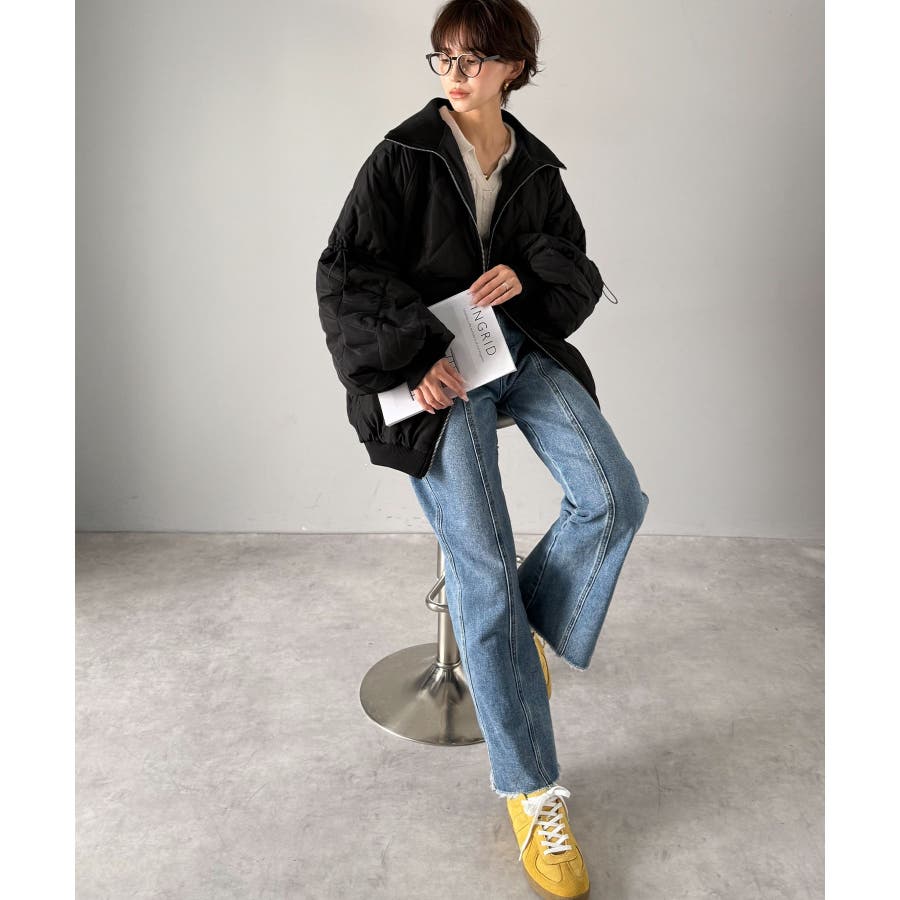 ゆったりしたサイジングで厚手のニットやパーカーも中に合わせやすい魅力の優秀アイテム!