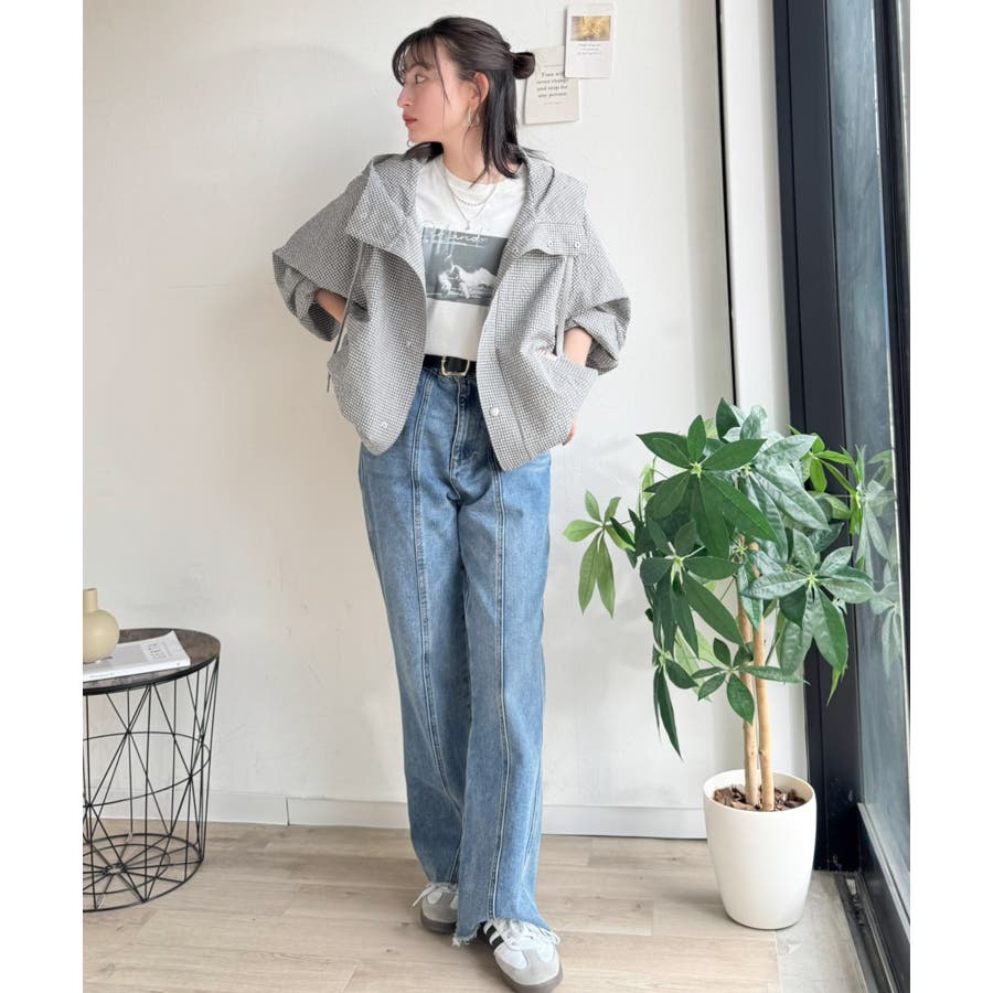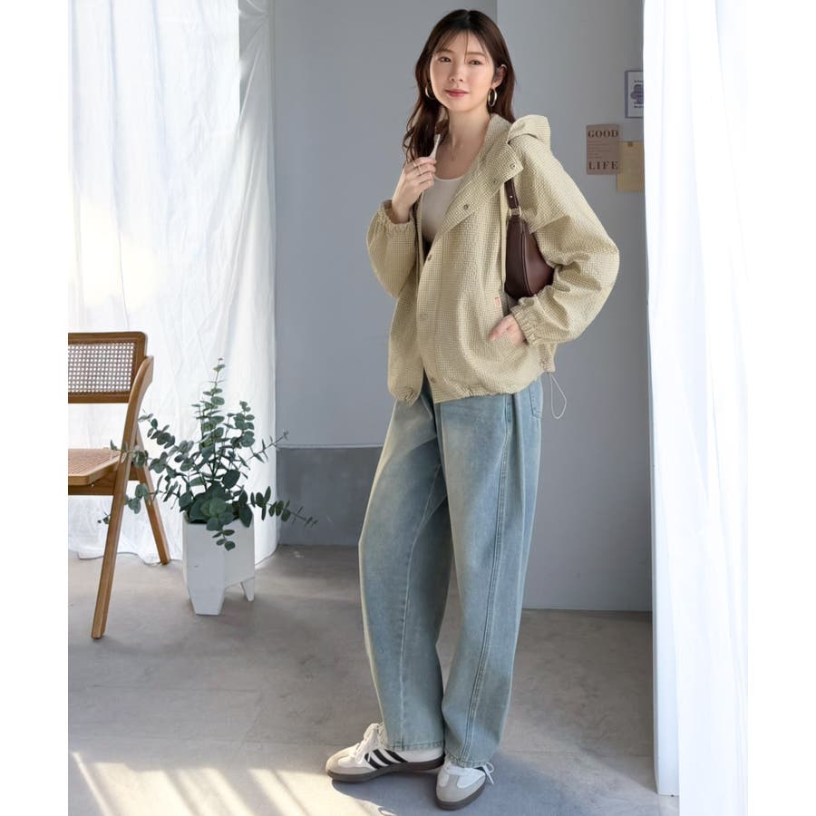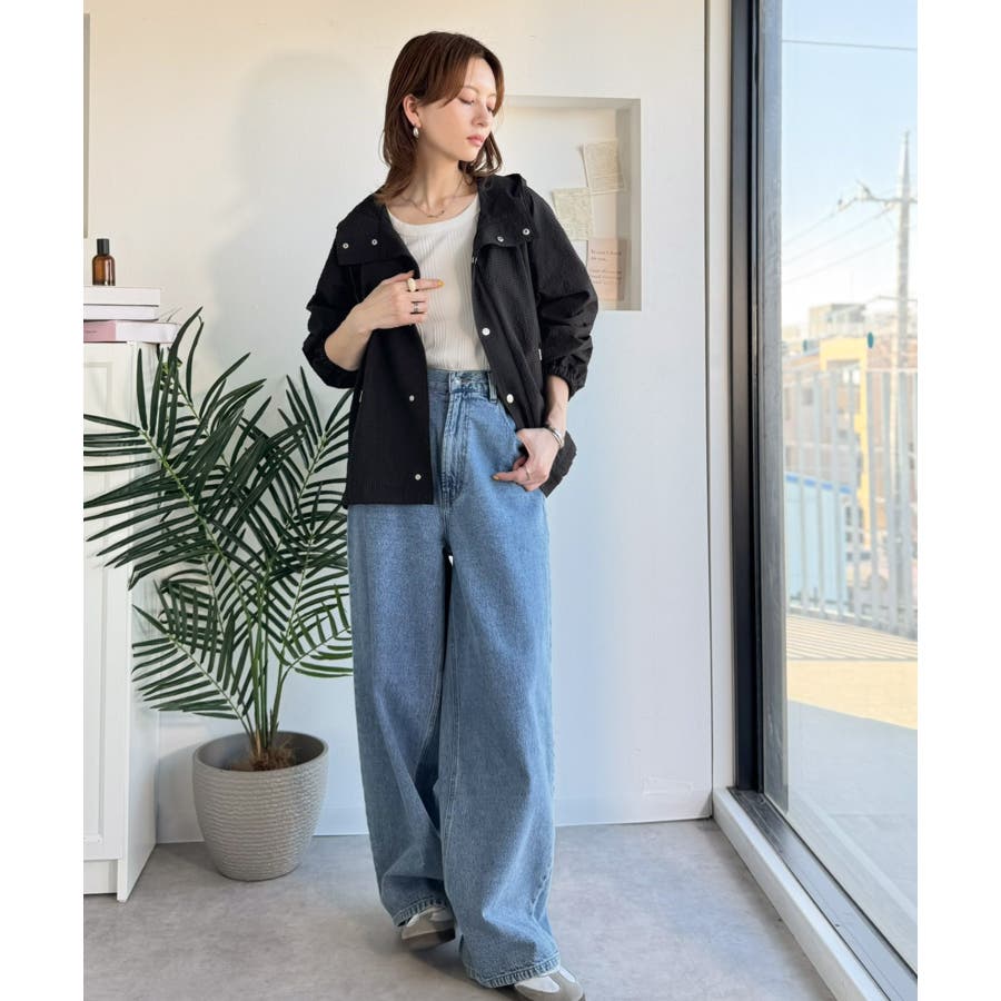 ドローコードを絞り着丈を短くしてボリュームボトムスと合わせれば旬のスタイリングに☆