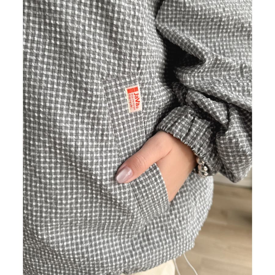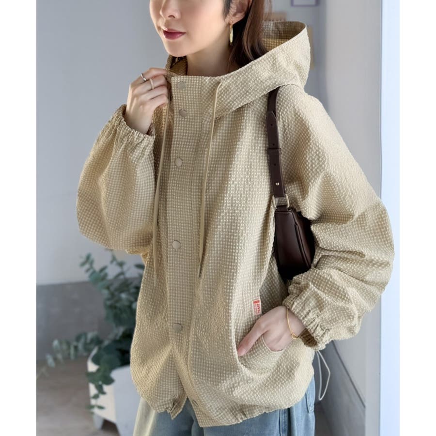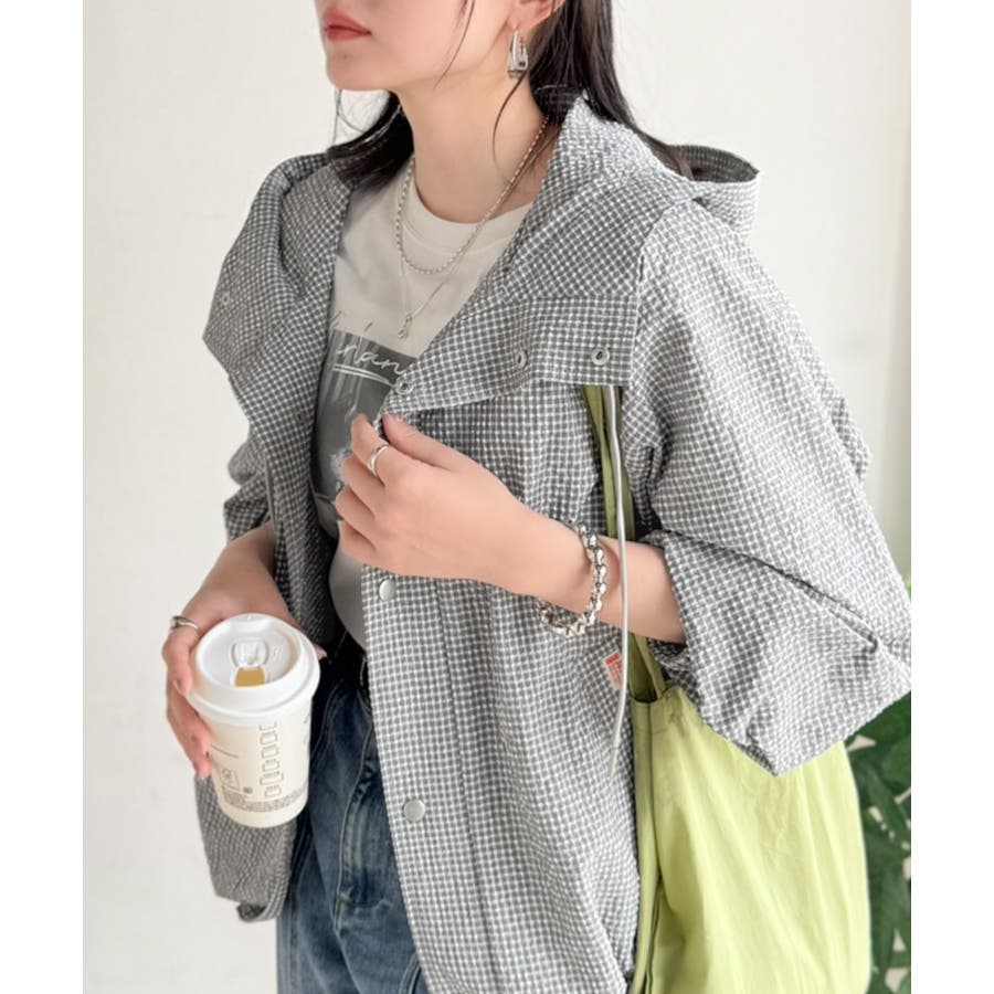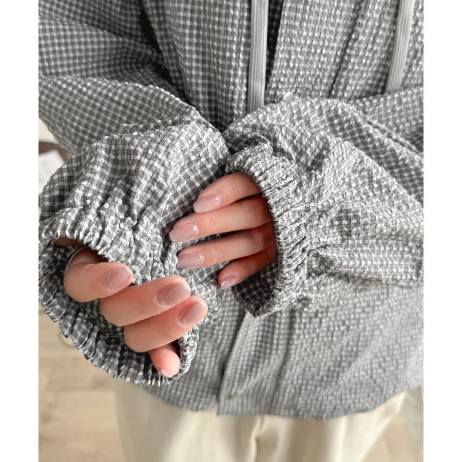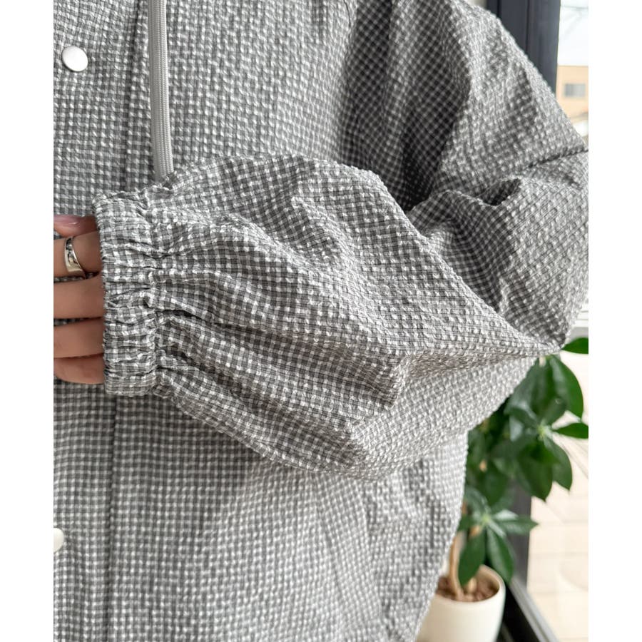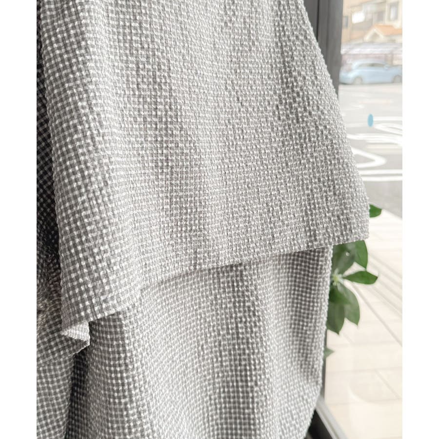 涼し気なサッカー素材。ベージュ・グレーのチェック見えも◎