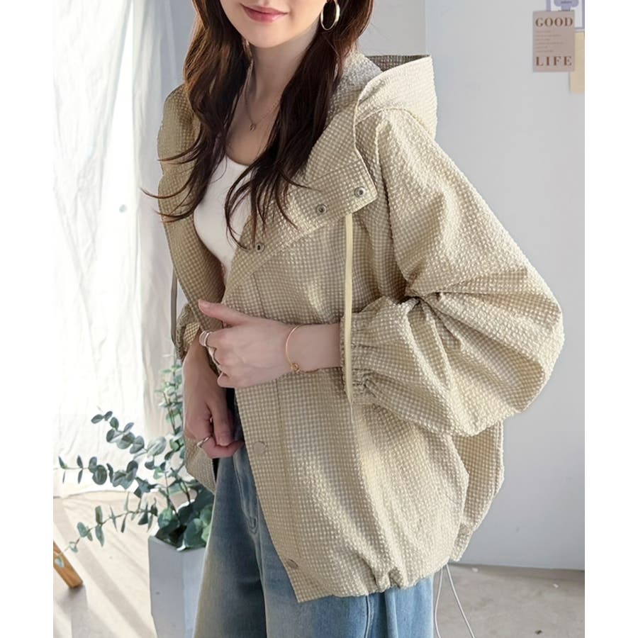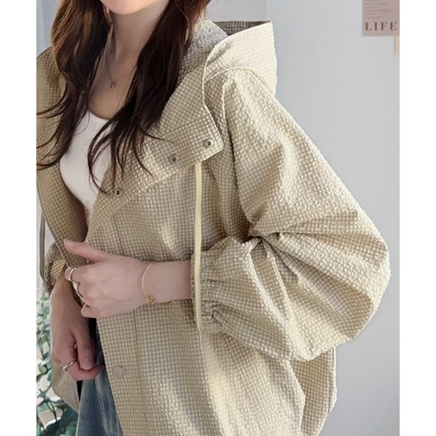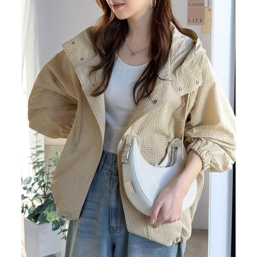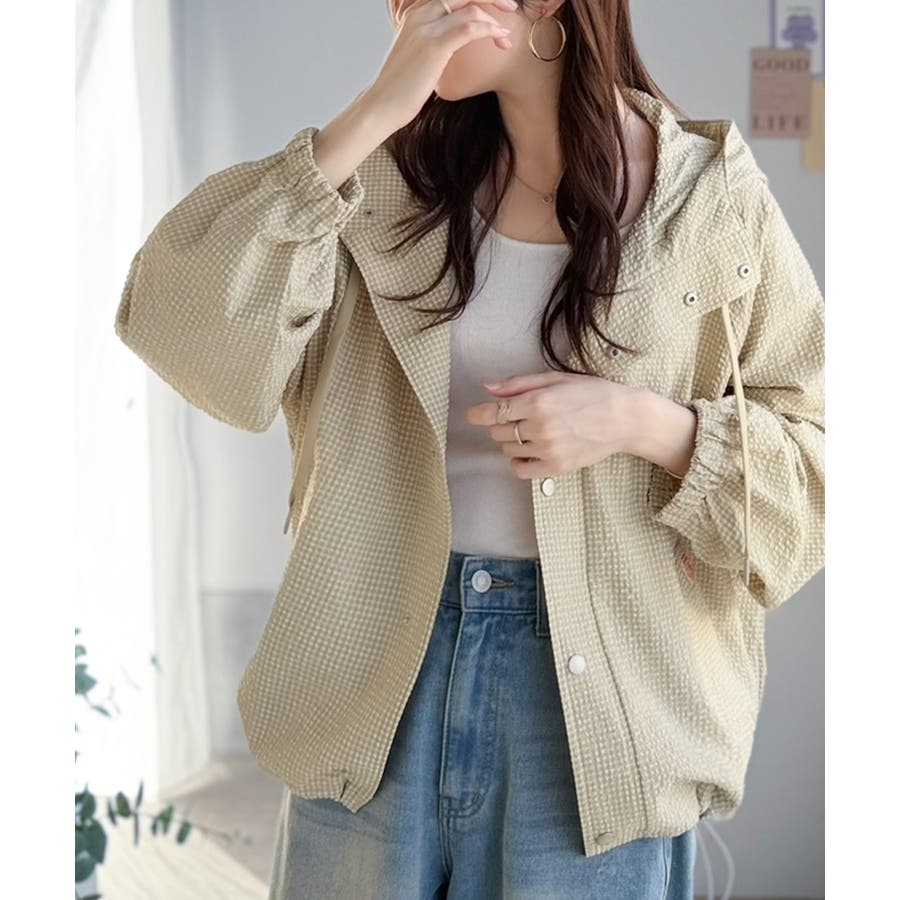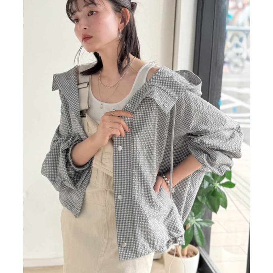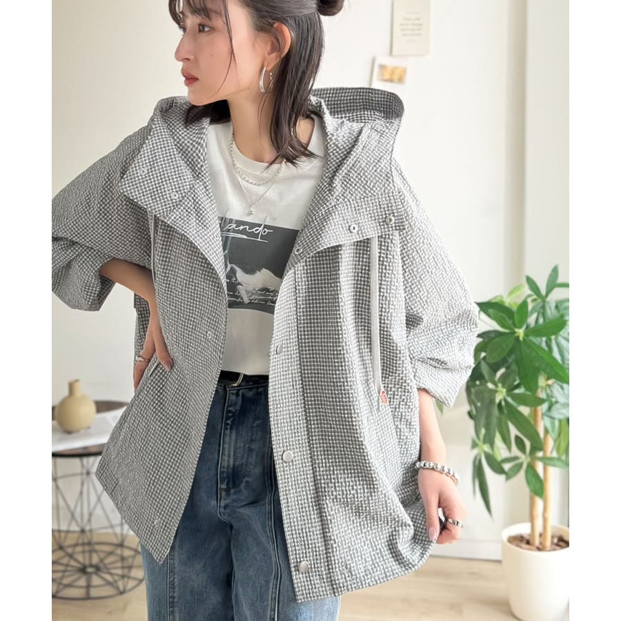 涼し気なサッカー素材。ベージュ・グレーのチェック見えも◎