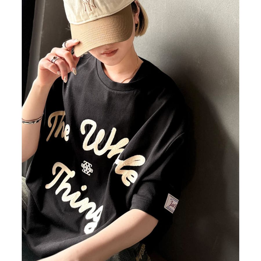 《JaVaジャバコラボ》“トレンドを纏う”コード刺繍ロゴ半袖Tシャツ(オーバーサ…