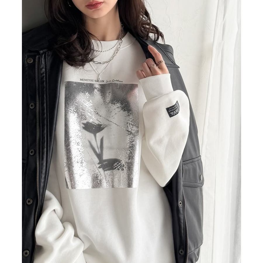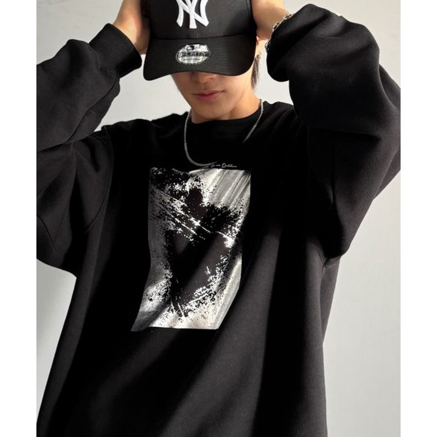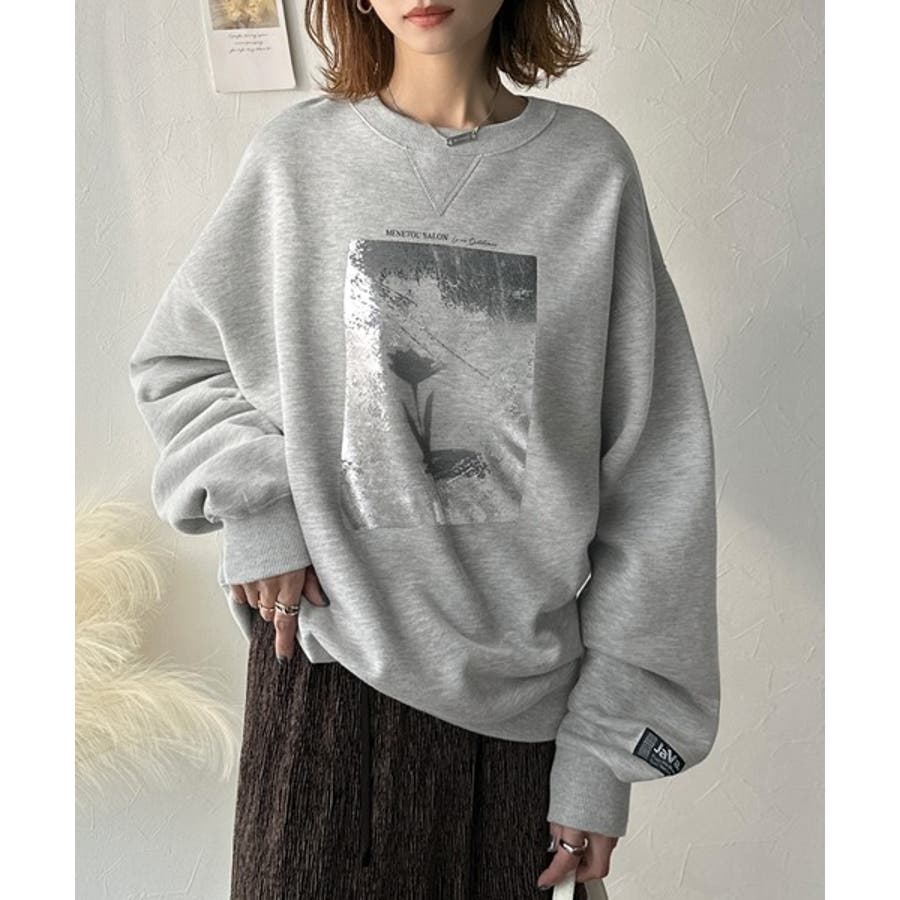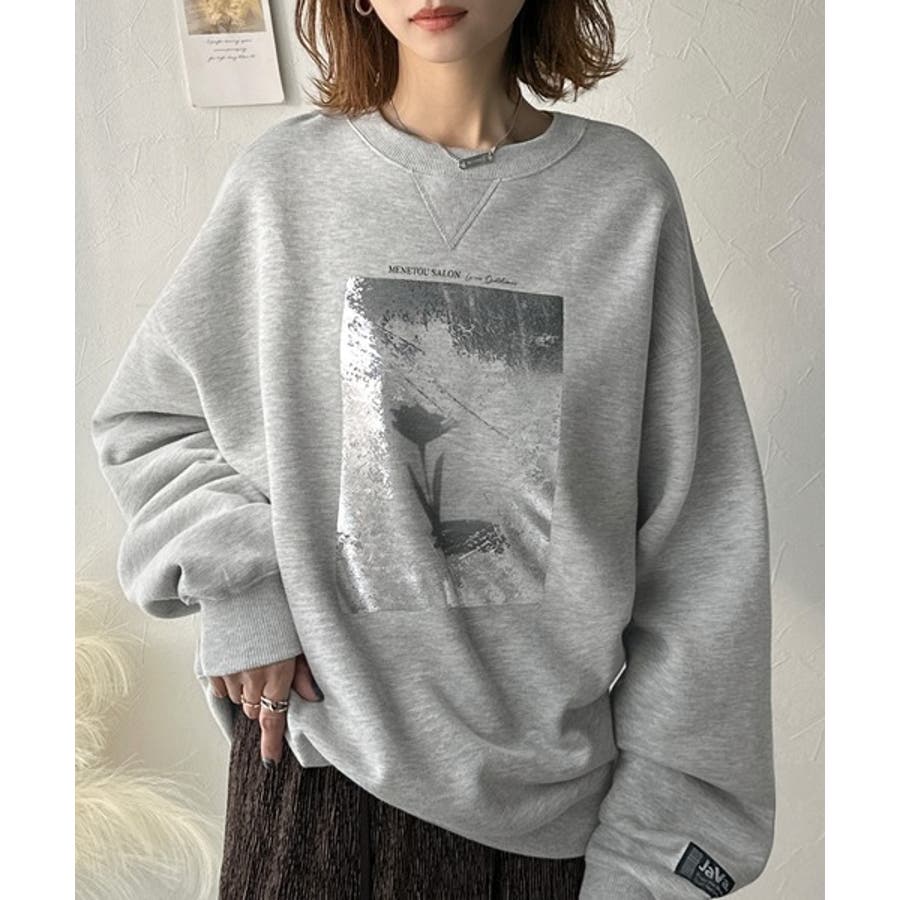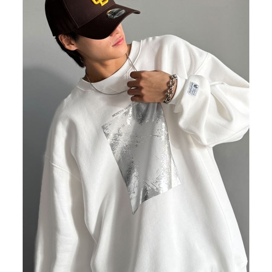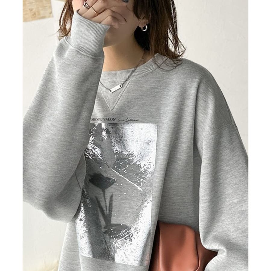 さりげない光沢感が目を惹く♪かすれボックス箔プリント裏起毛スウェット