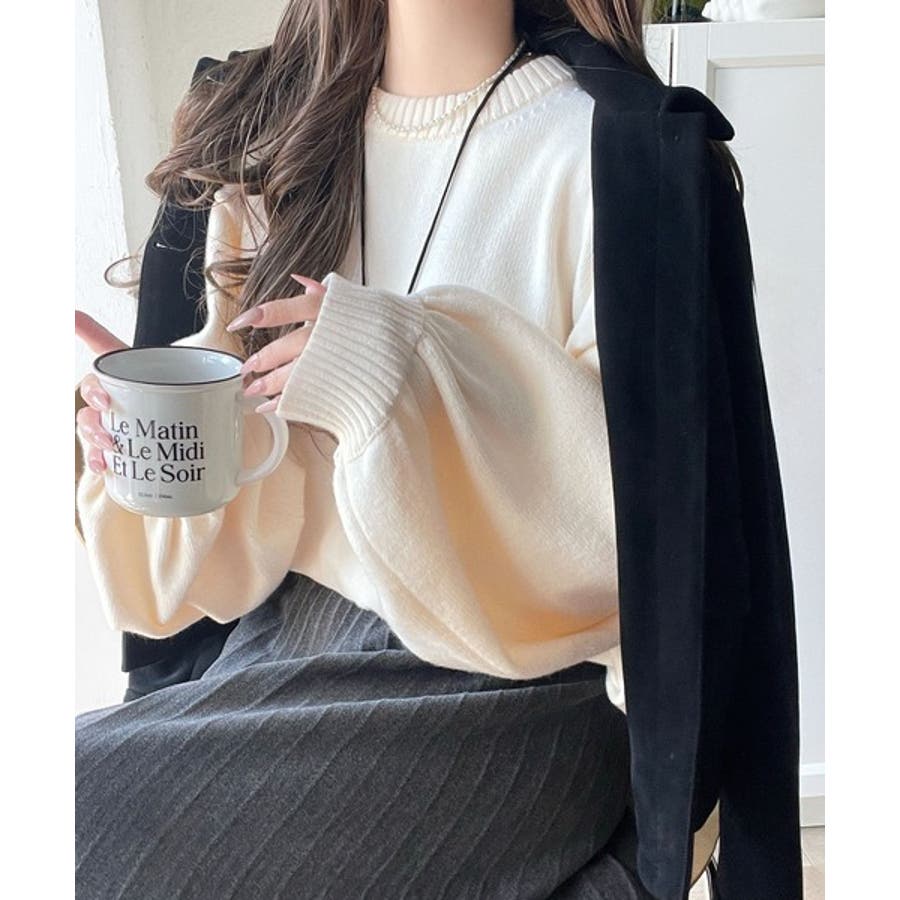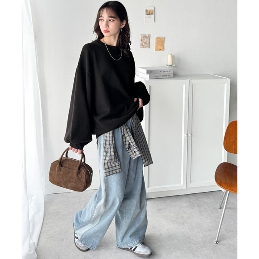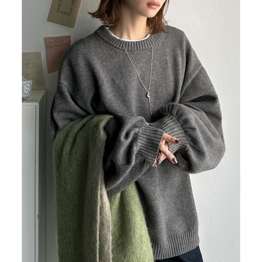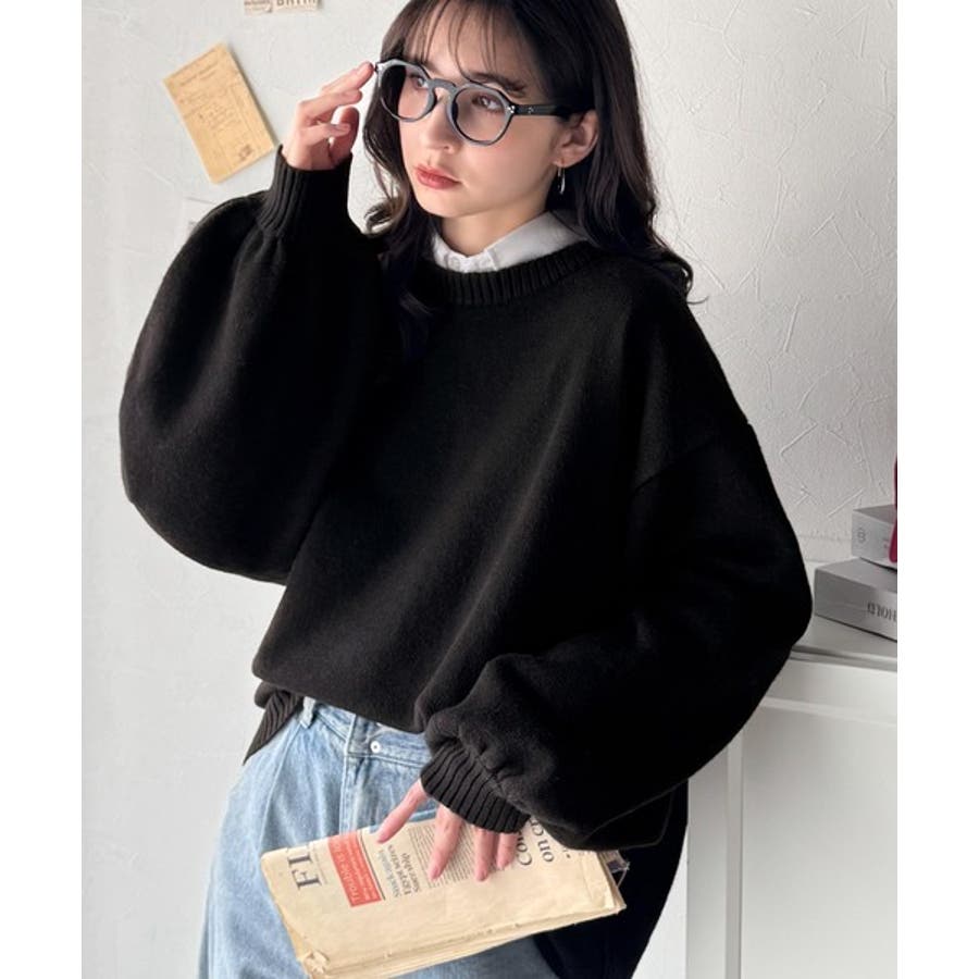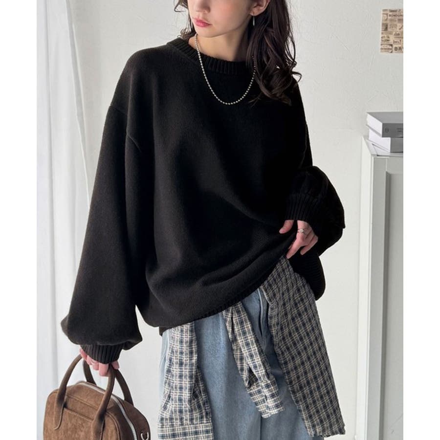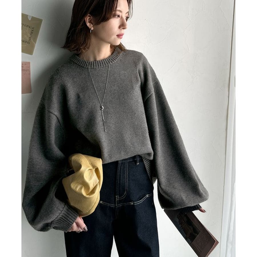 ビッグシルエットとボリュームスリーブが魅力のニット。