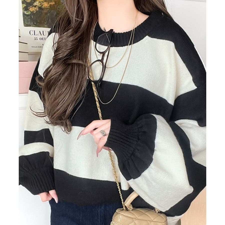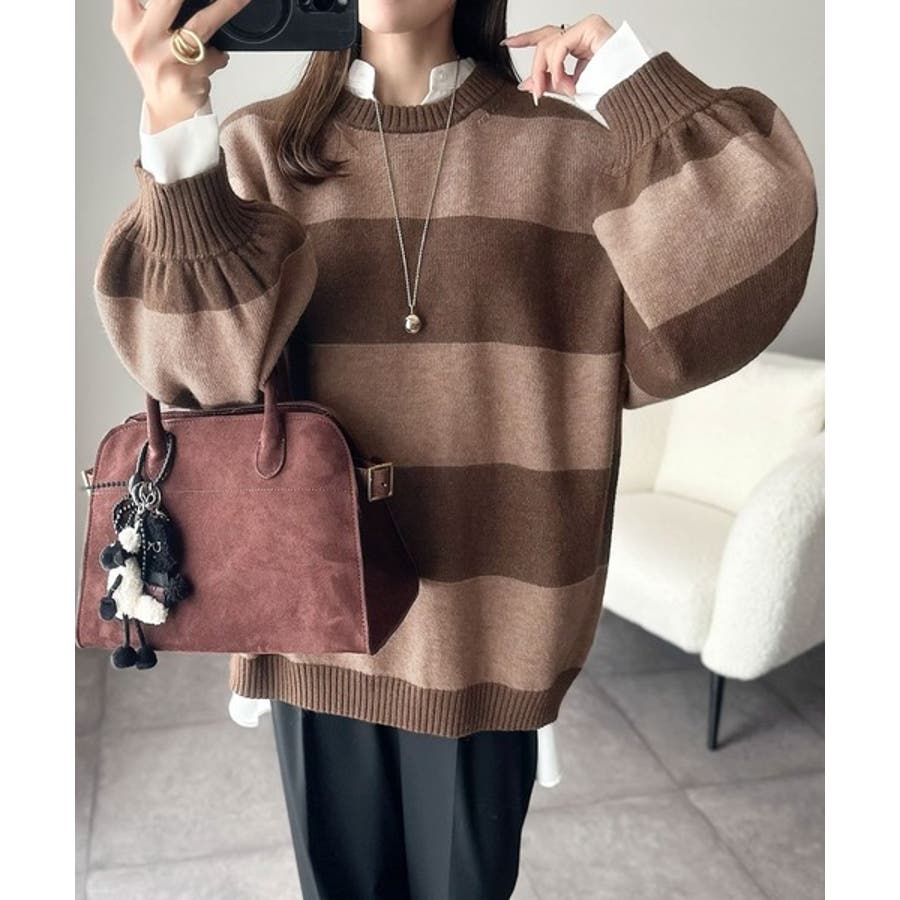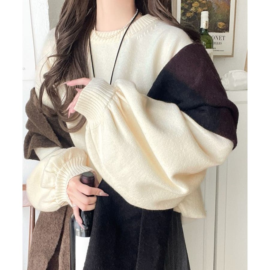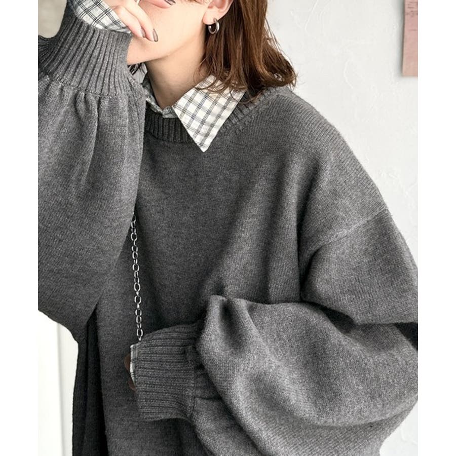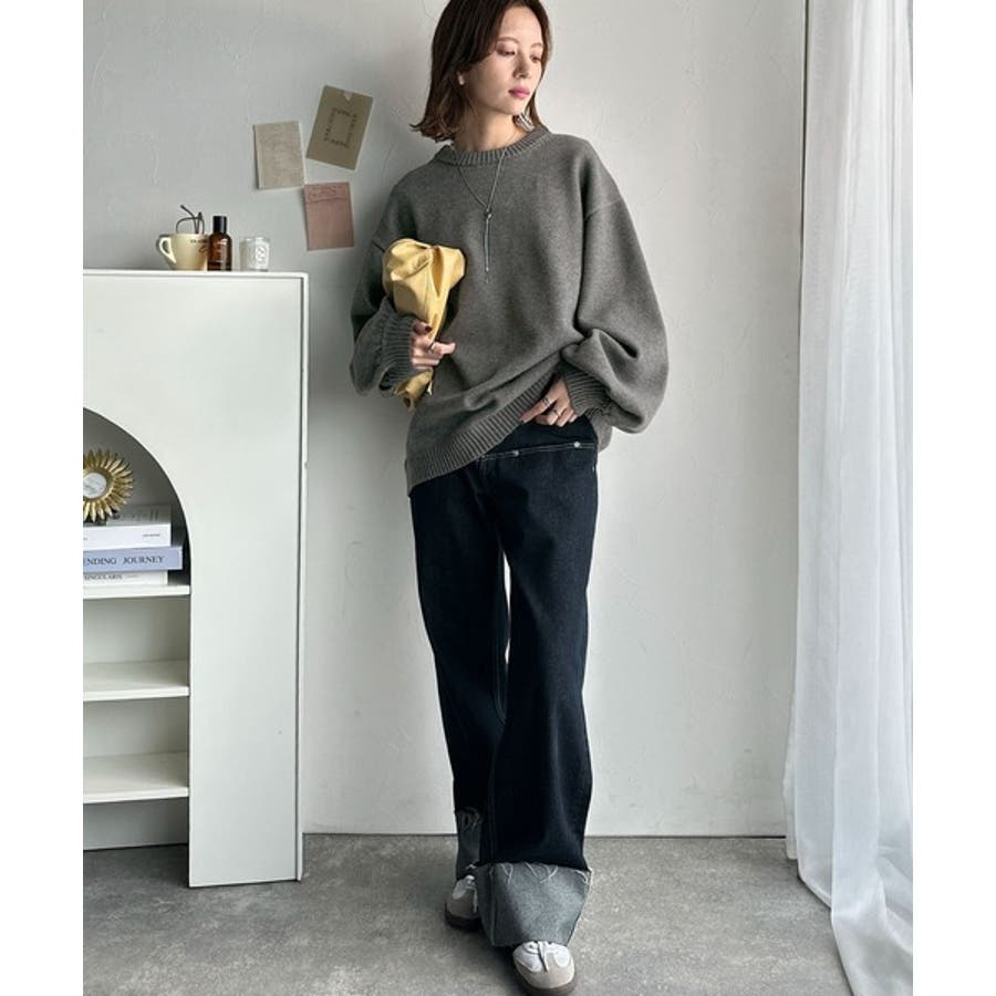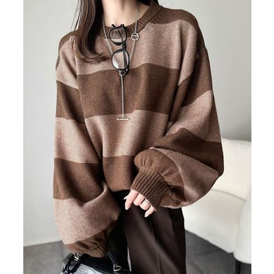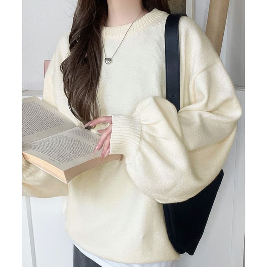 ビッグシルエットとボリュームスリーブが魅力のニット。