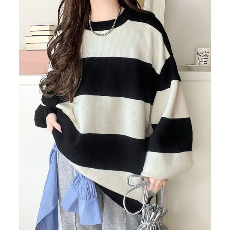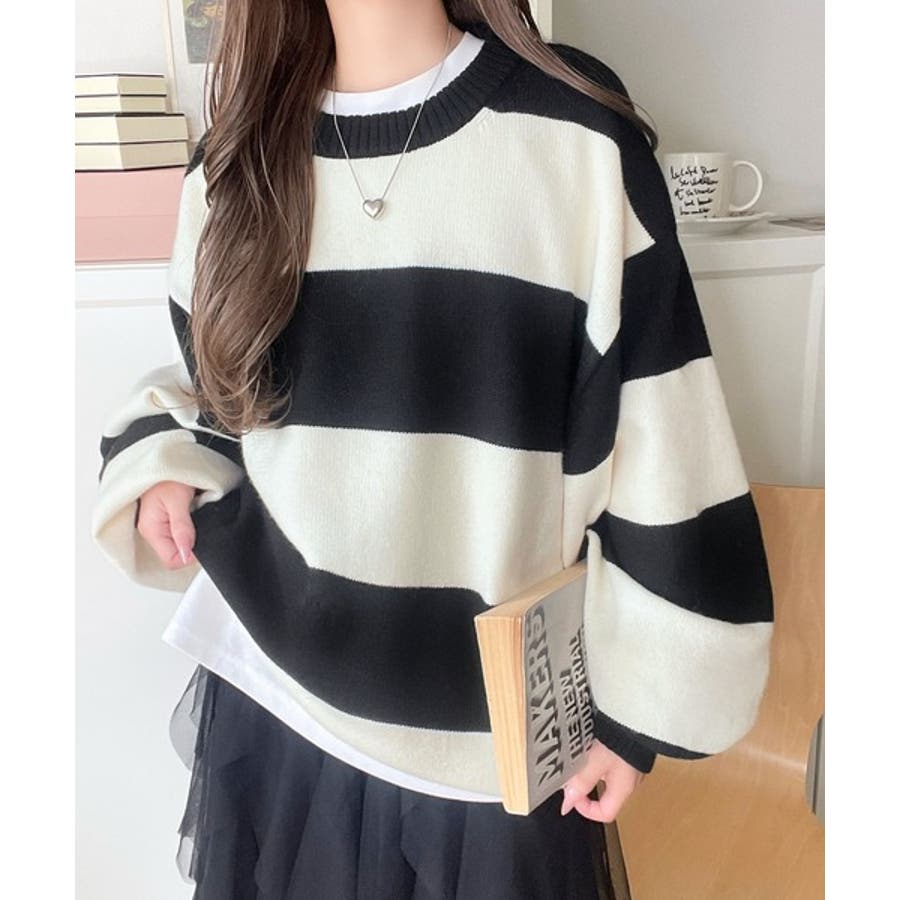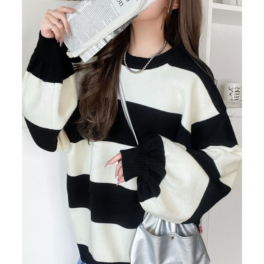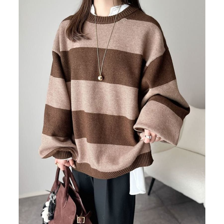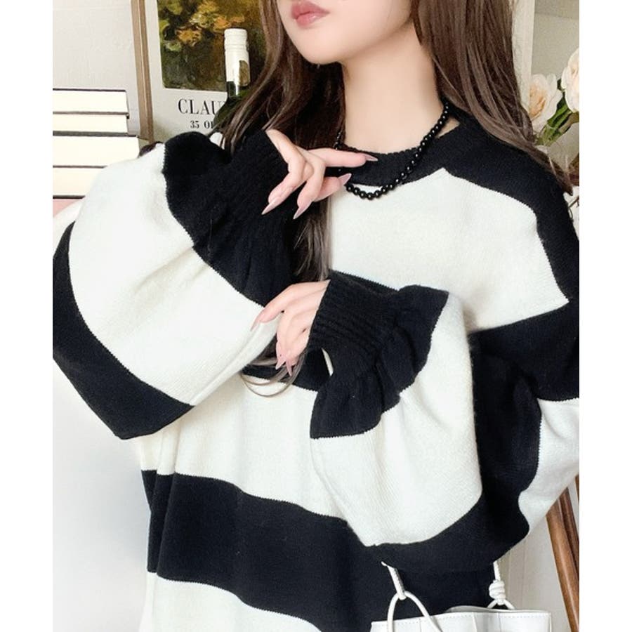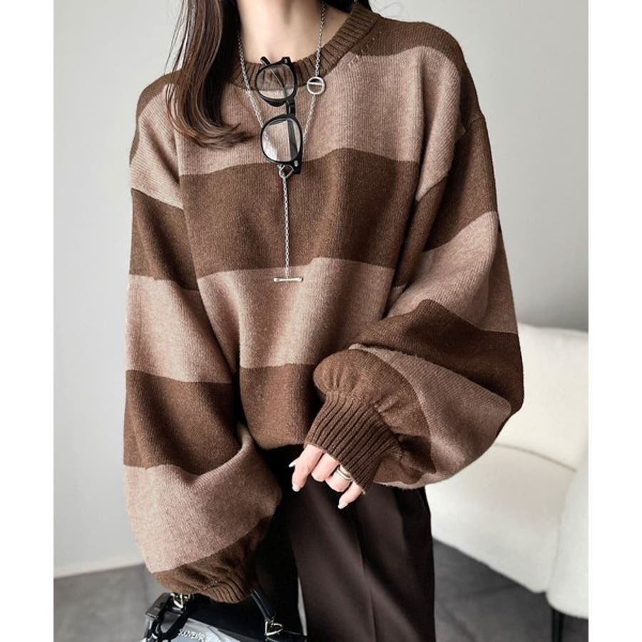 ビッグシルエットとボリュームスリーブが魅力のニット。