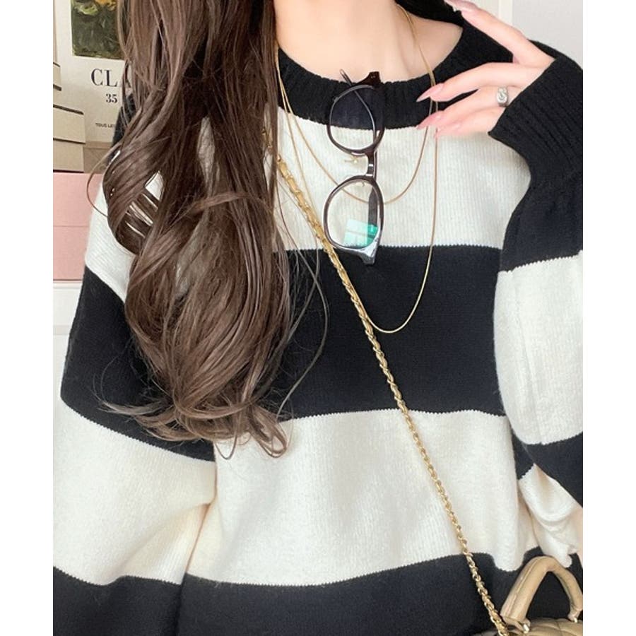シンプルで洗練されたデザインが特徴のこのニットは、フレアパンツやワイドボトムスとの相性が抜群です。