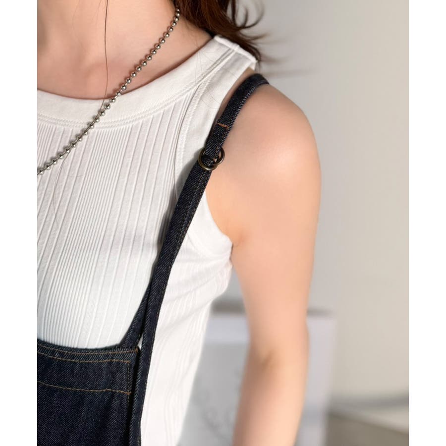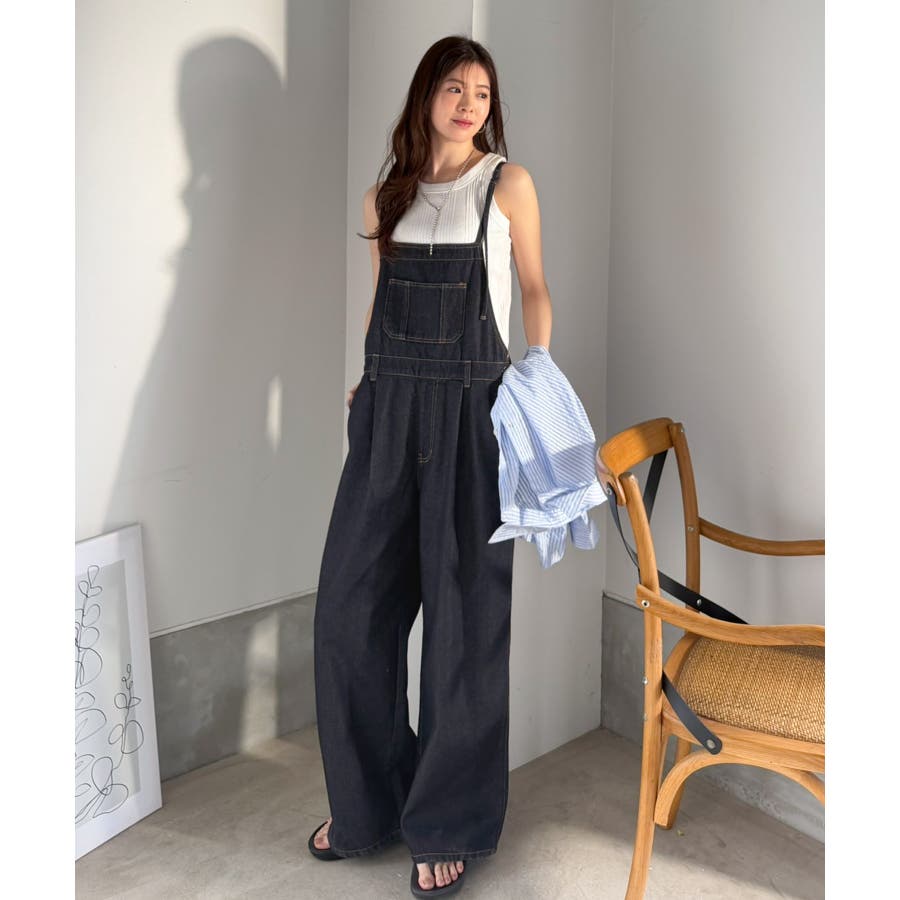 ナローストラップタック入りデニムサロペット。