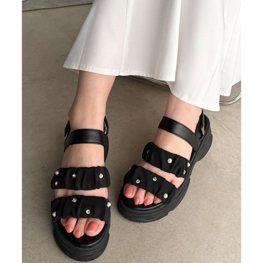 【mily bilet】大満足のトレンド感♪注目のビジュー付き厚底サンダル