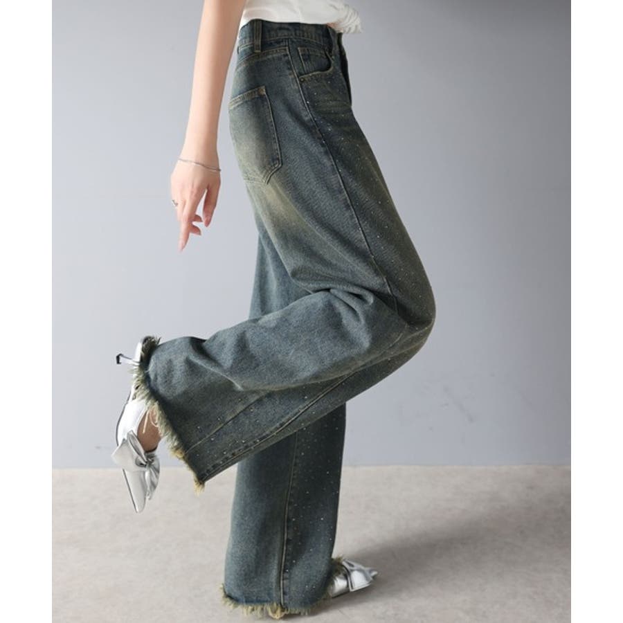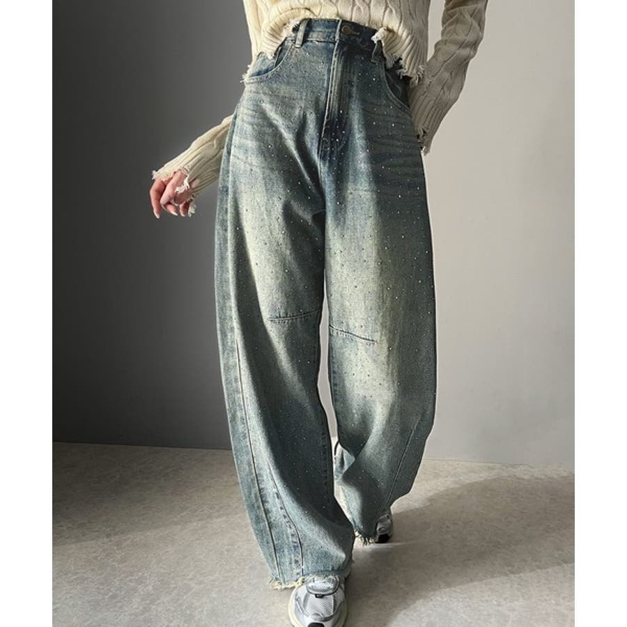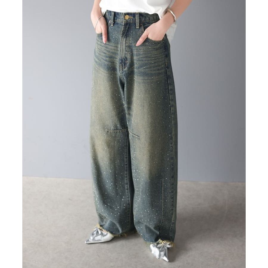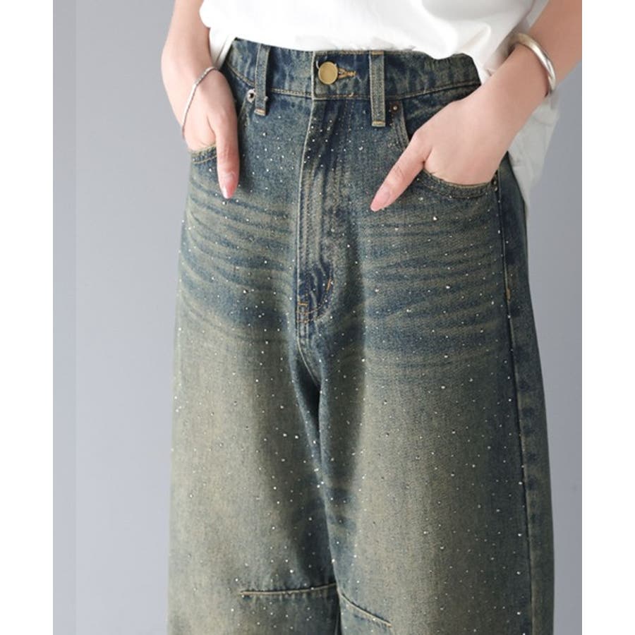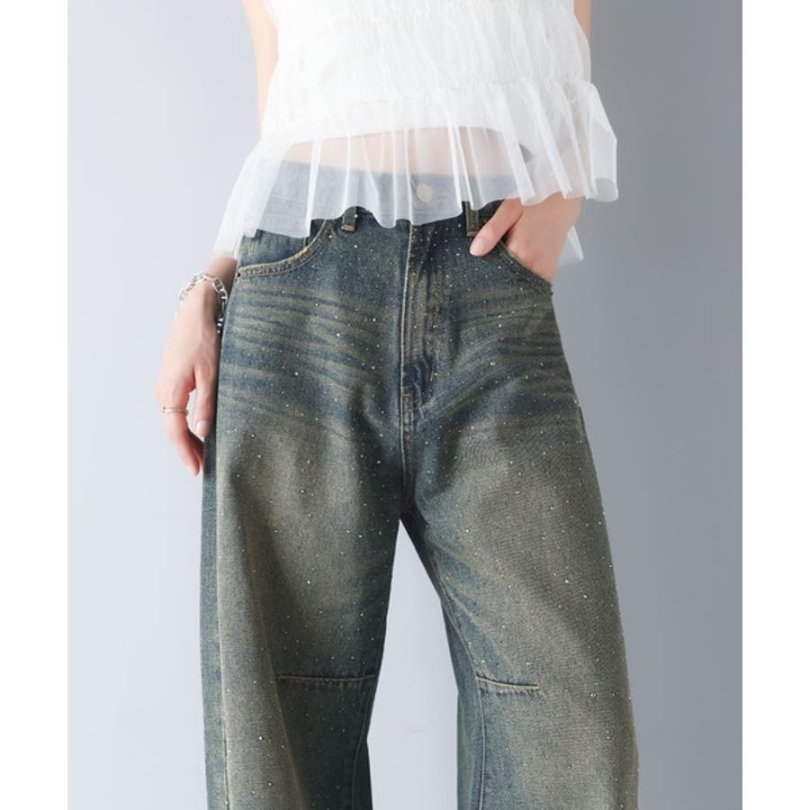 オーロラストーン付き!甘辛のバランスが今年らしい。ヴィンテージライクカーブデニム…