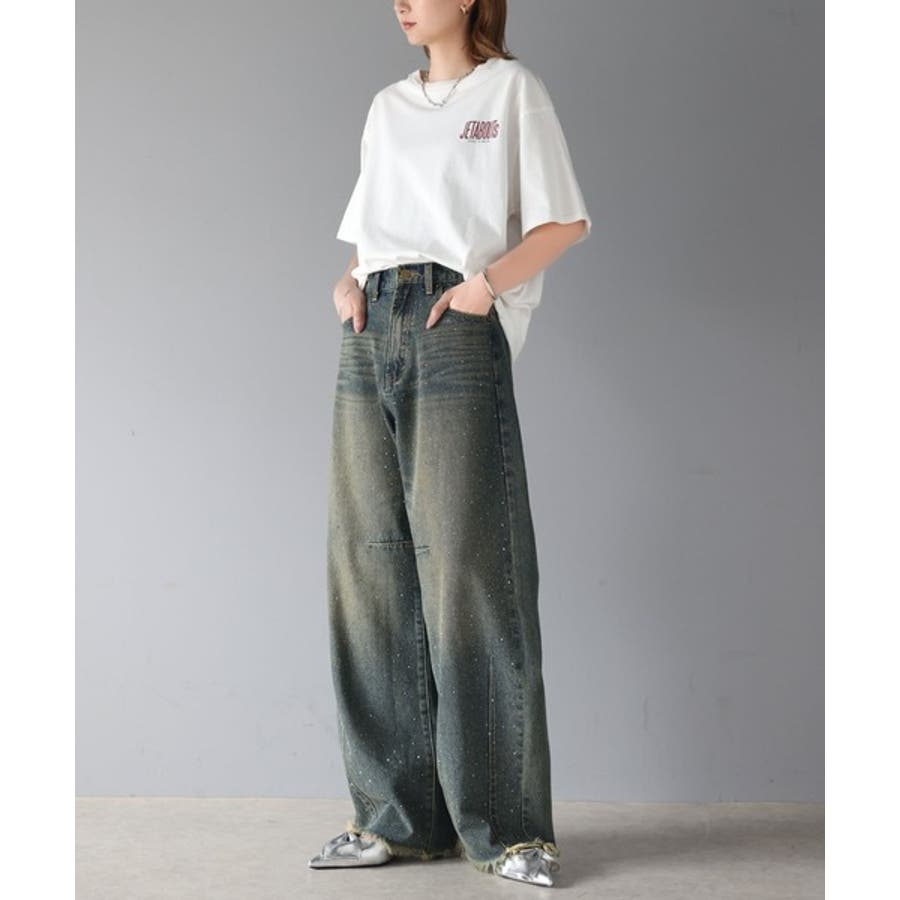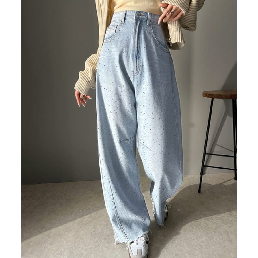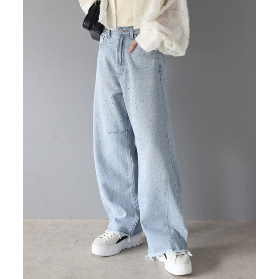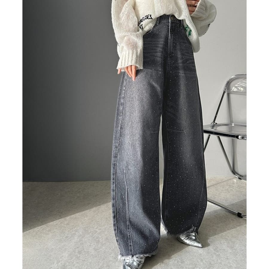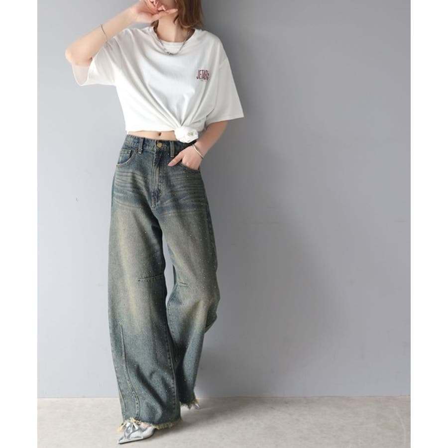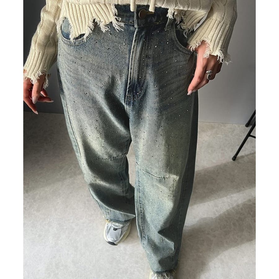 オーロラストーン付き!甘辛のバランスが今年らしい。ヴィンテージライクカーブデニム…