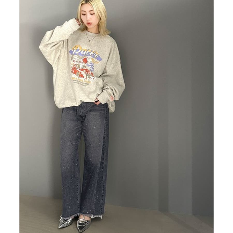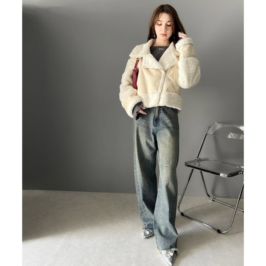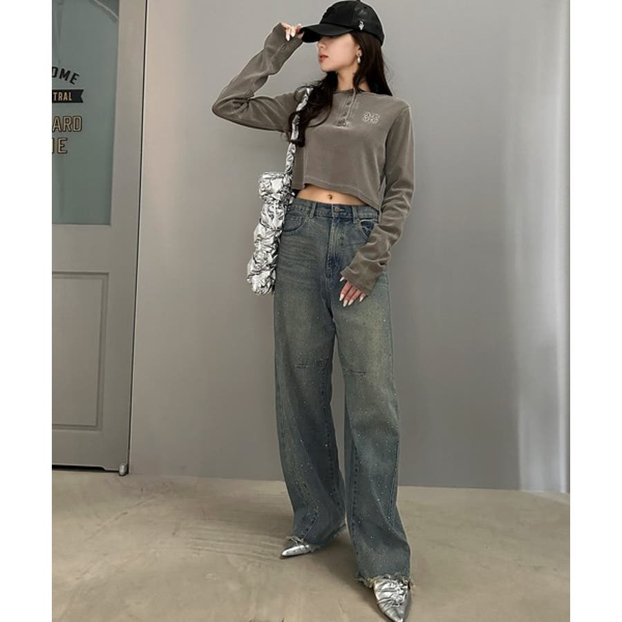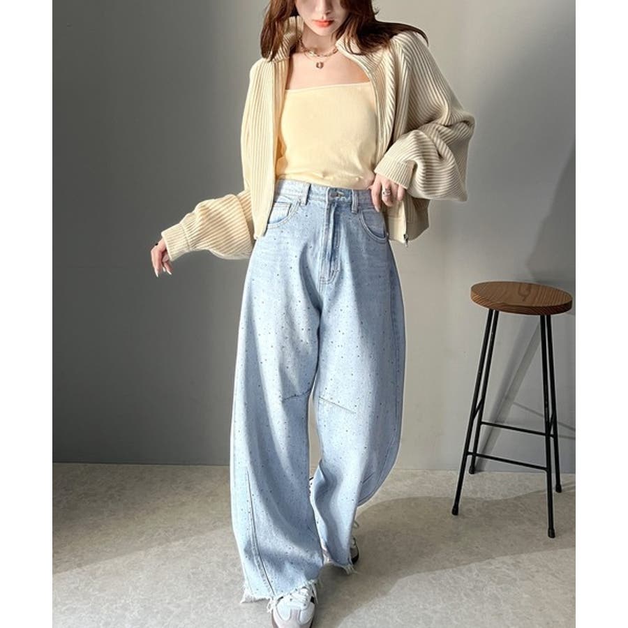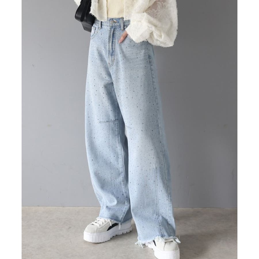 オーロラストーン付き!甘辛のバランスが今年らしい。ヴィンテージライクカーブデニム…