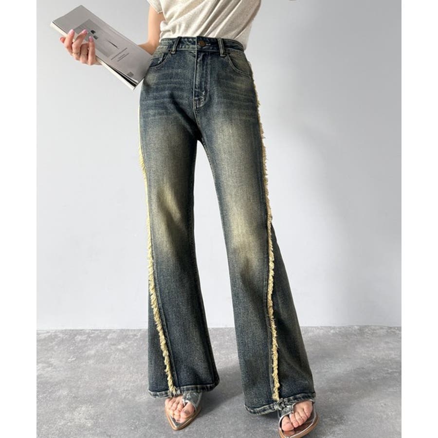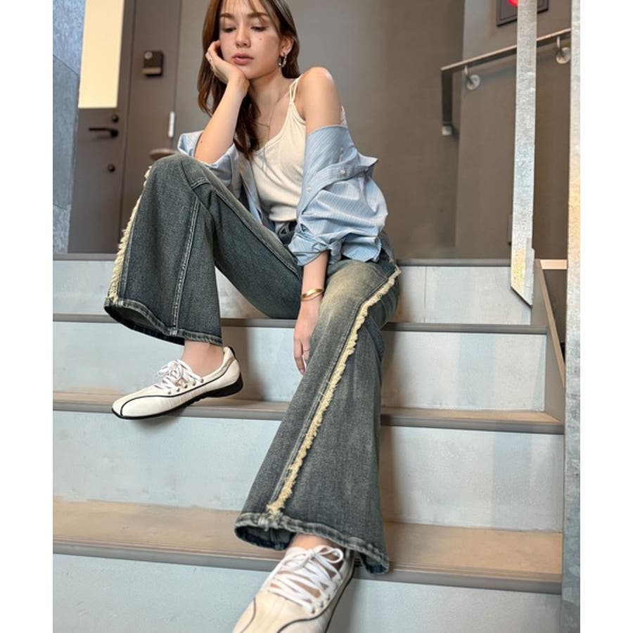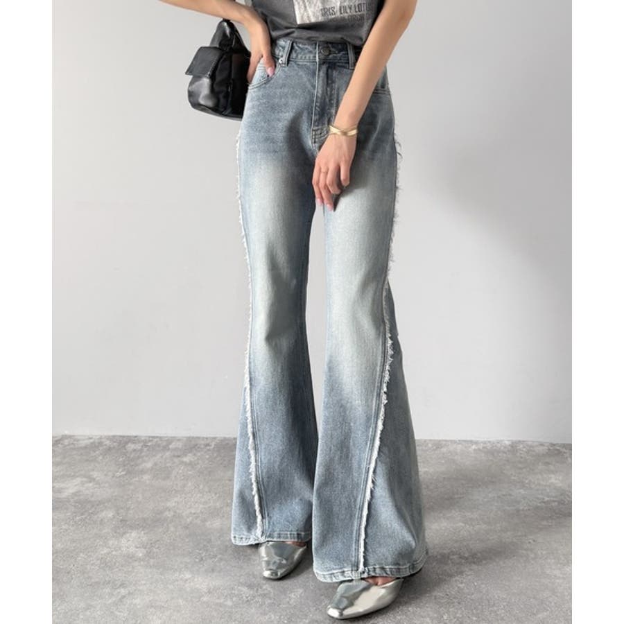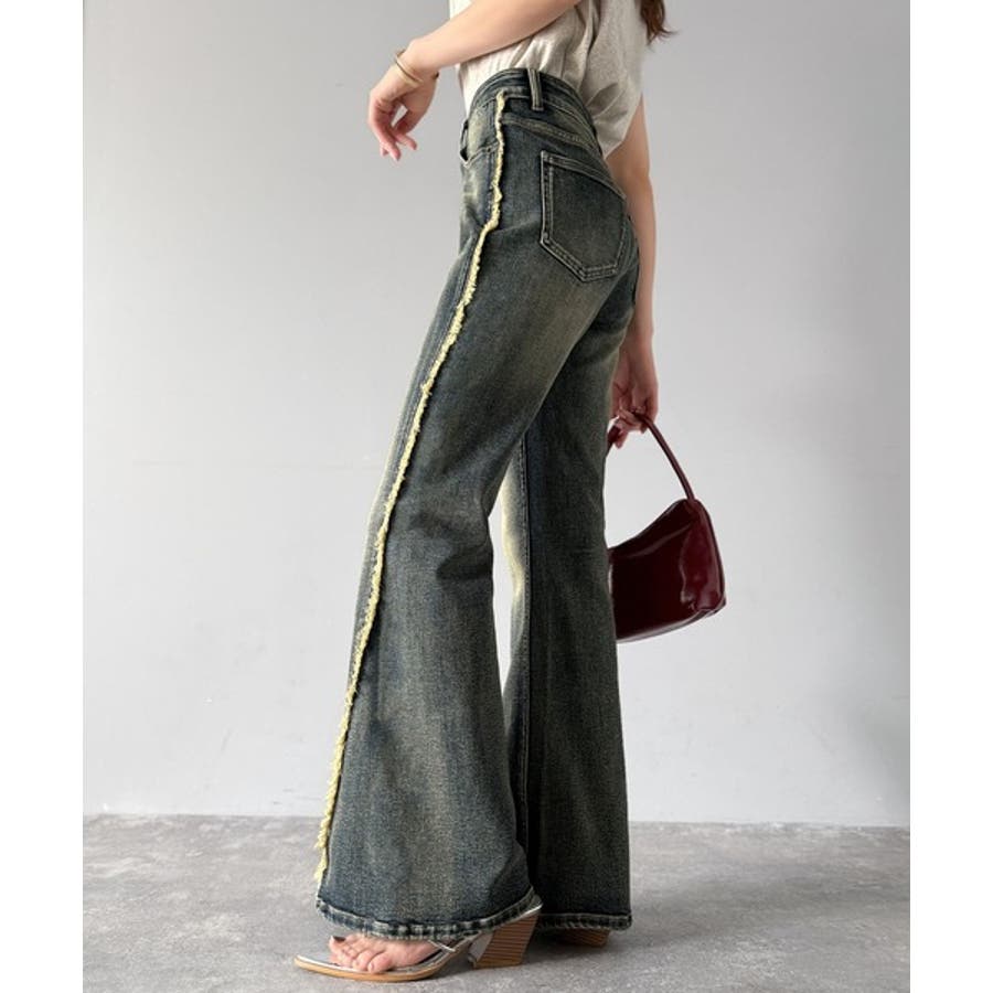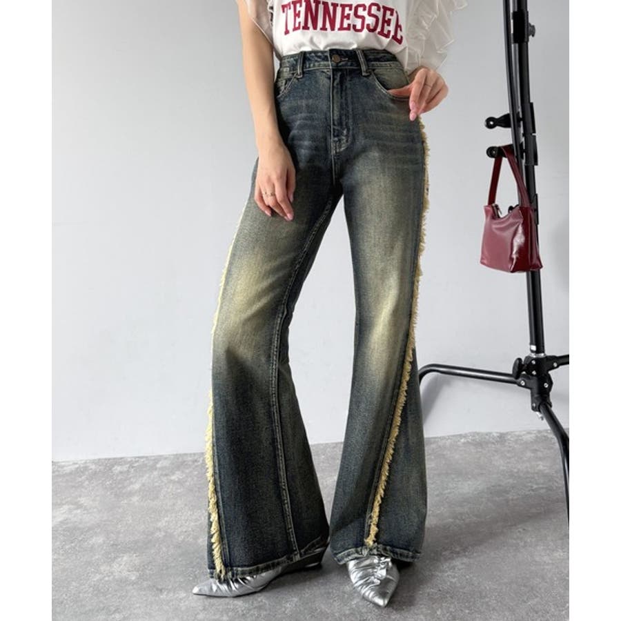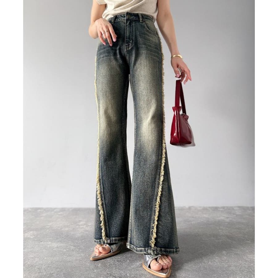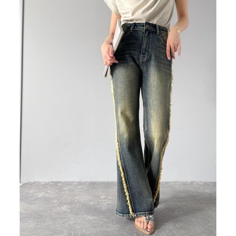 とにかく美脚!サイドフリンジ使いヴィンテージ風デニムフレアパンツ