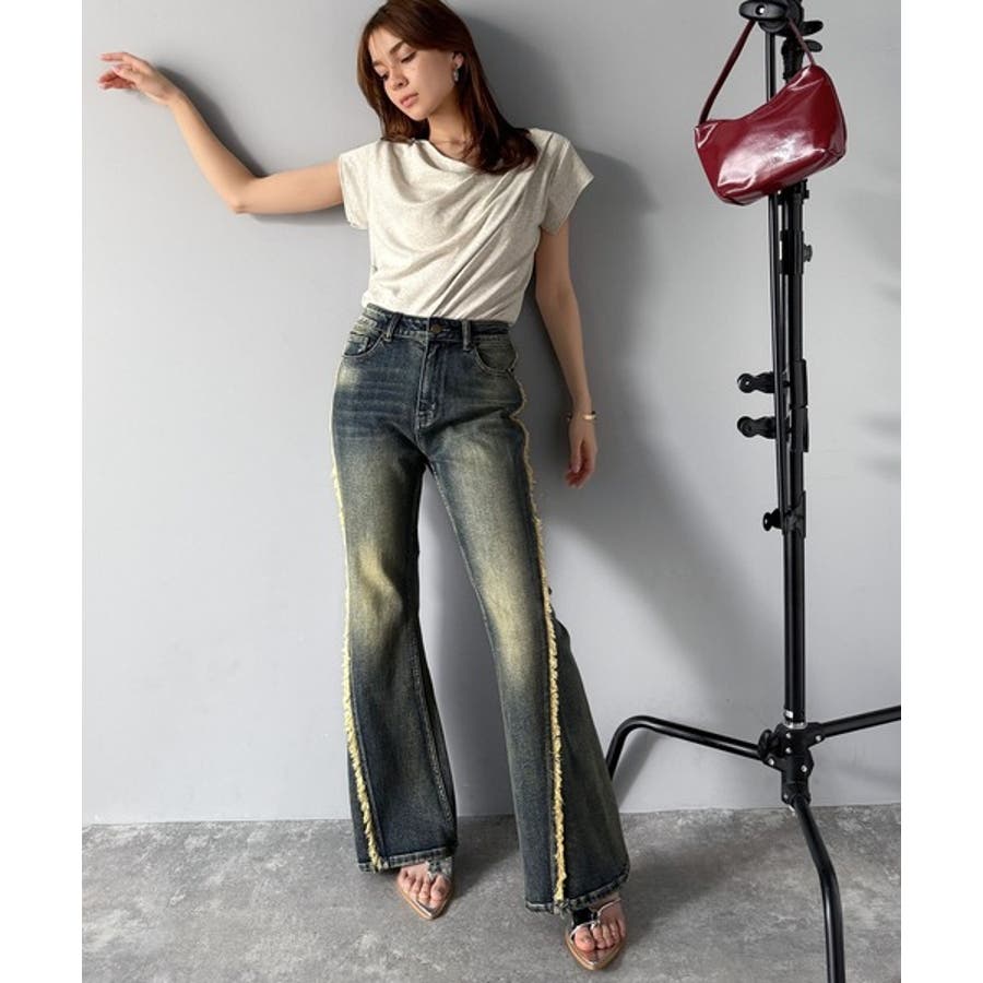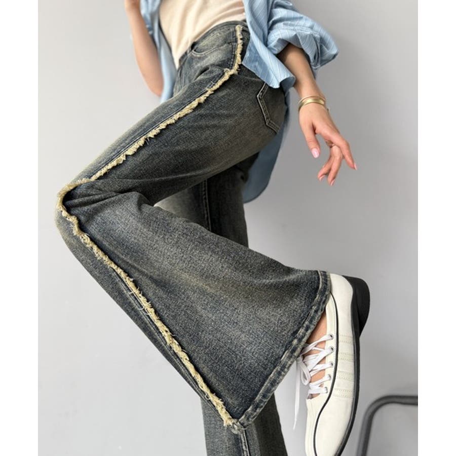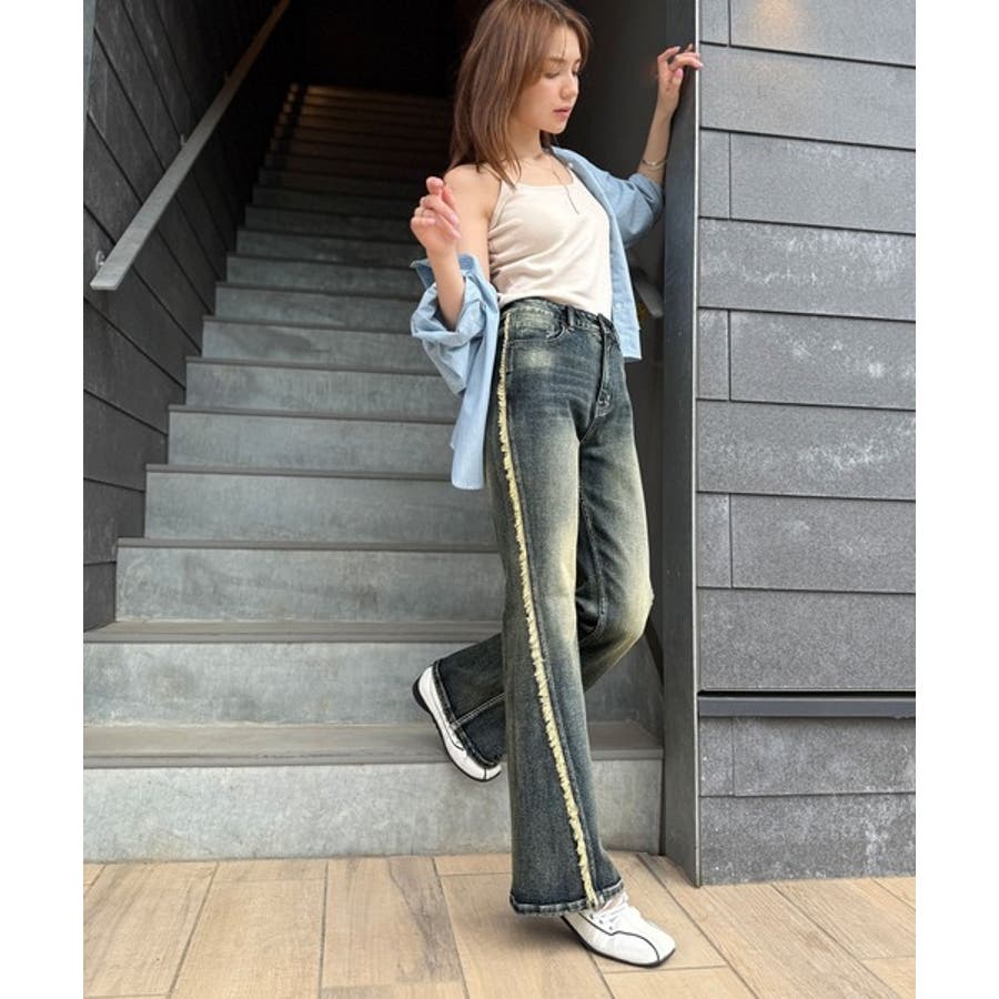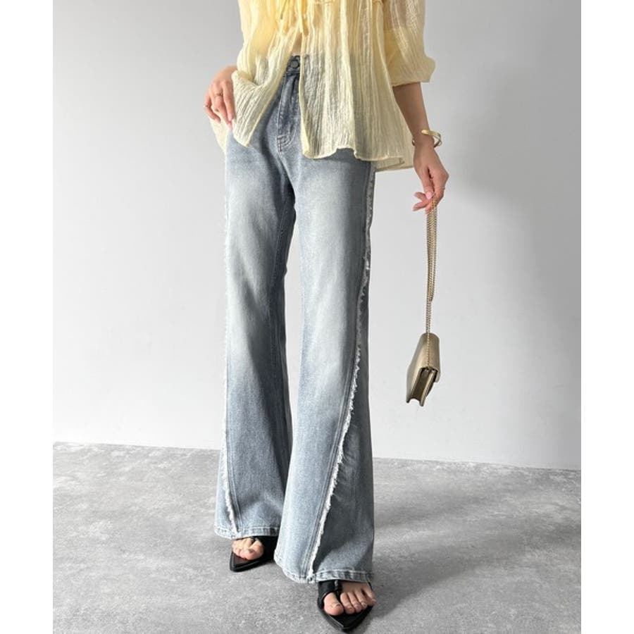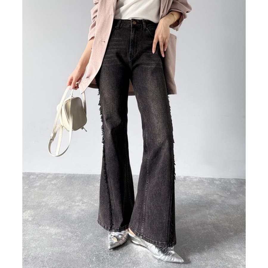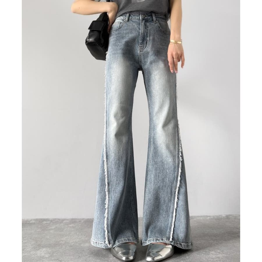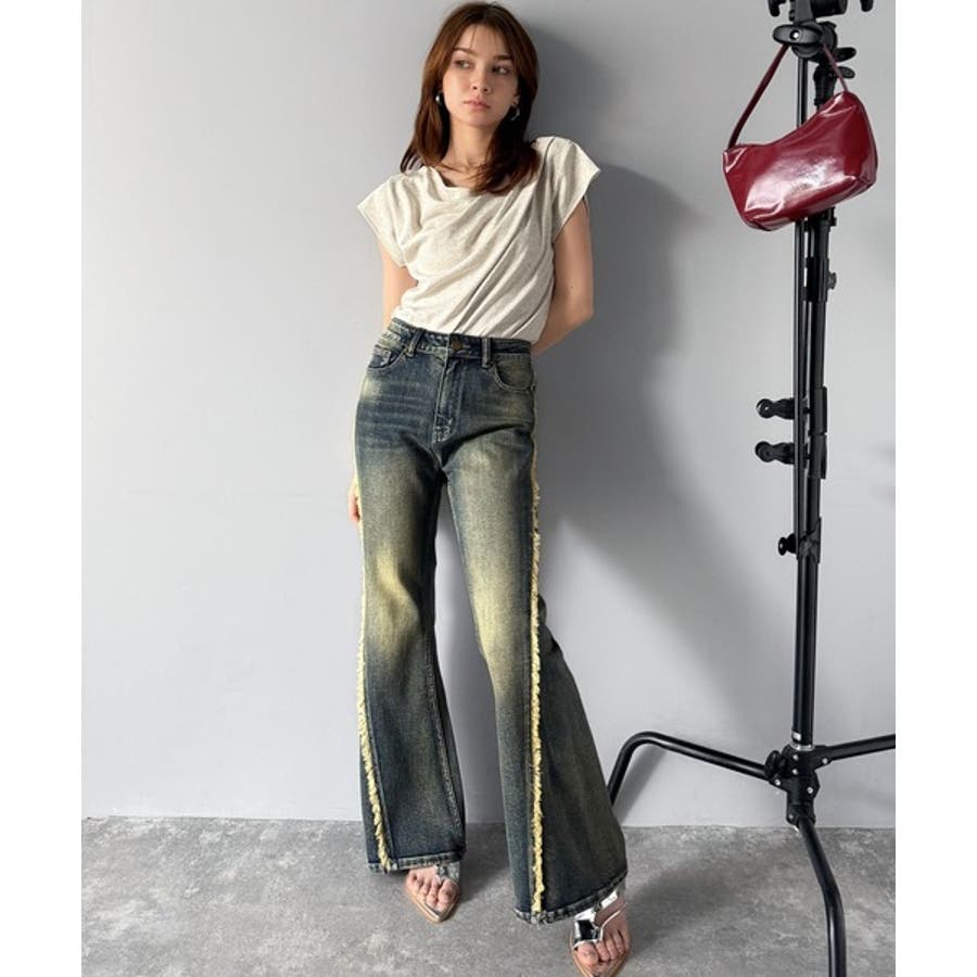 とにかく美脚!サイドフリンジ使いヴィンテージ風デニムフレアパンツ