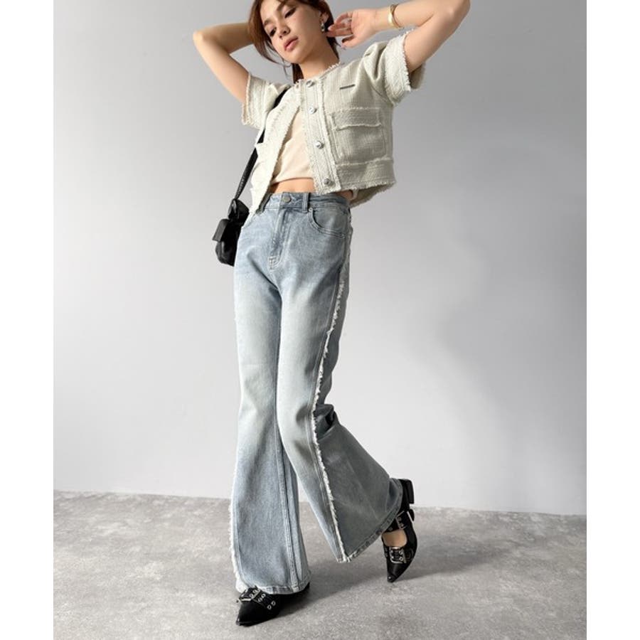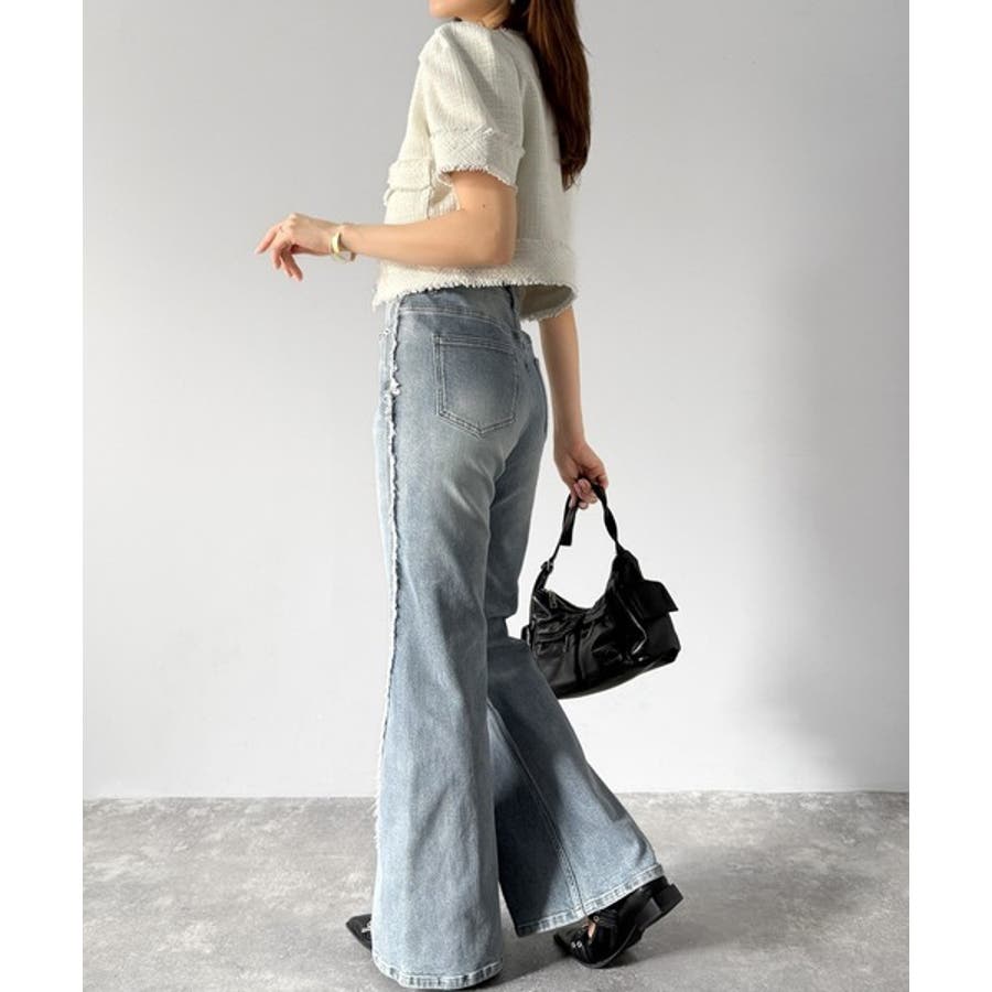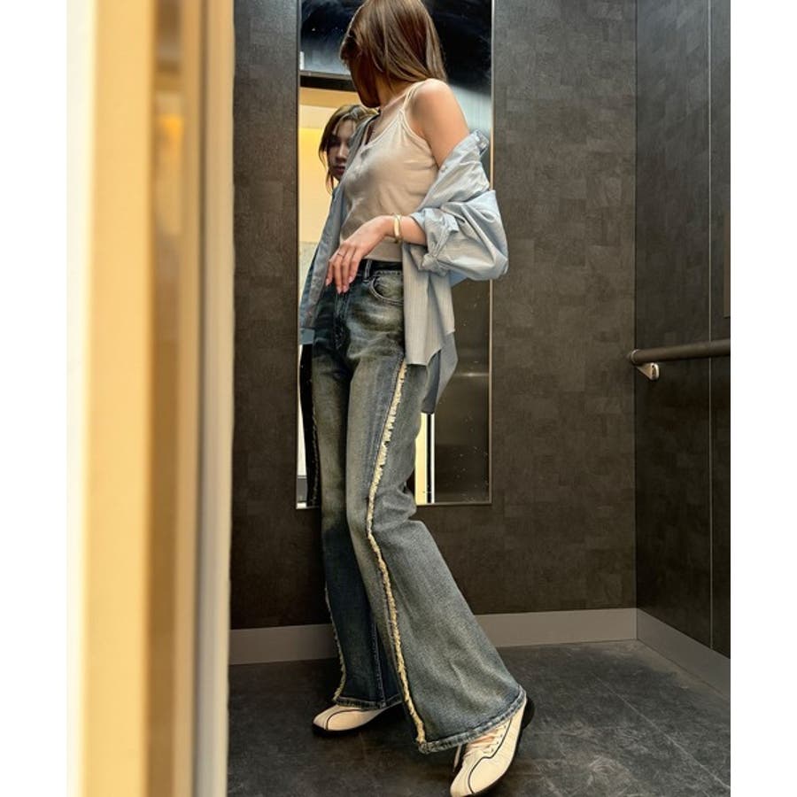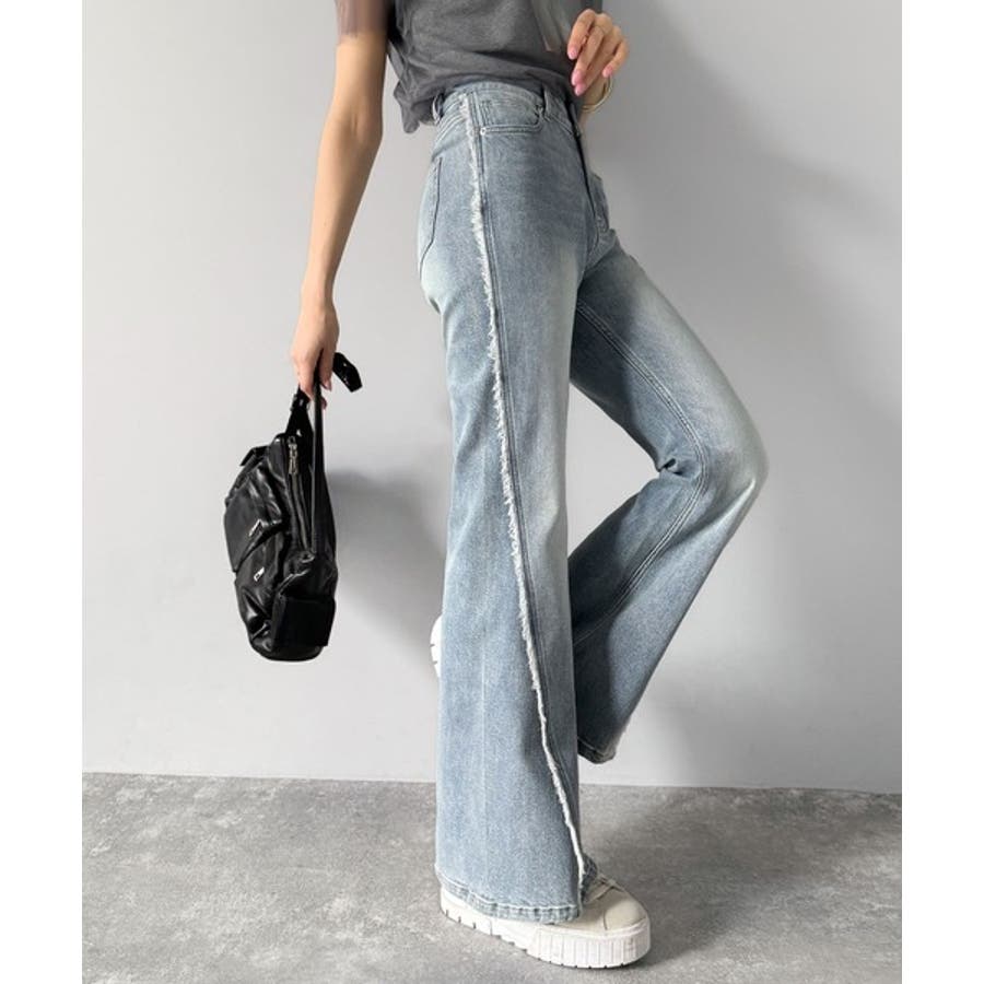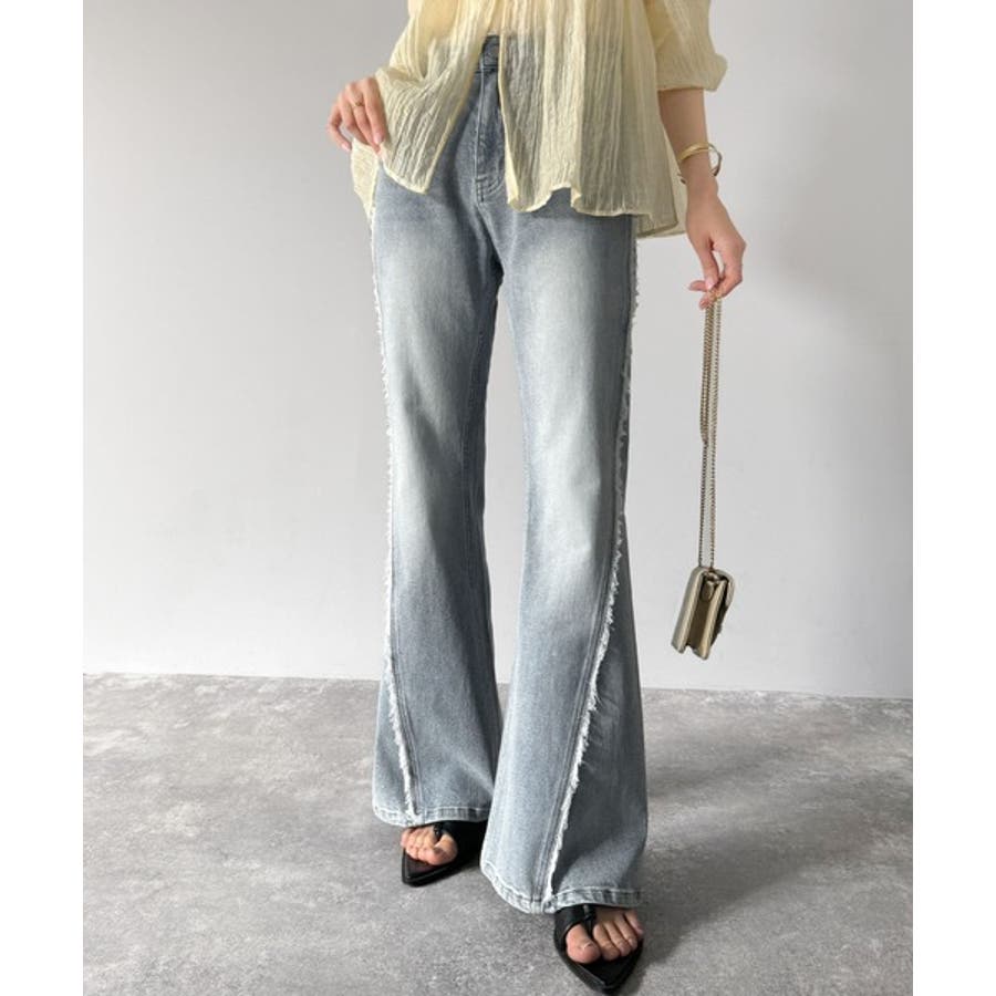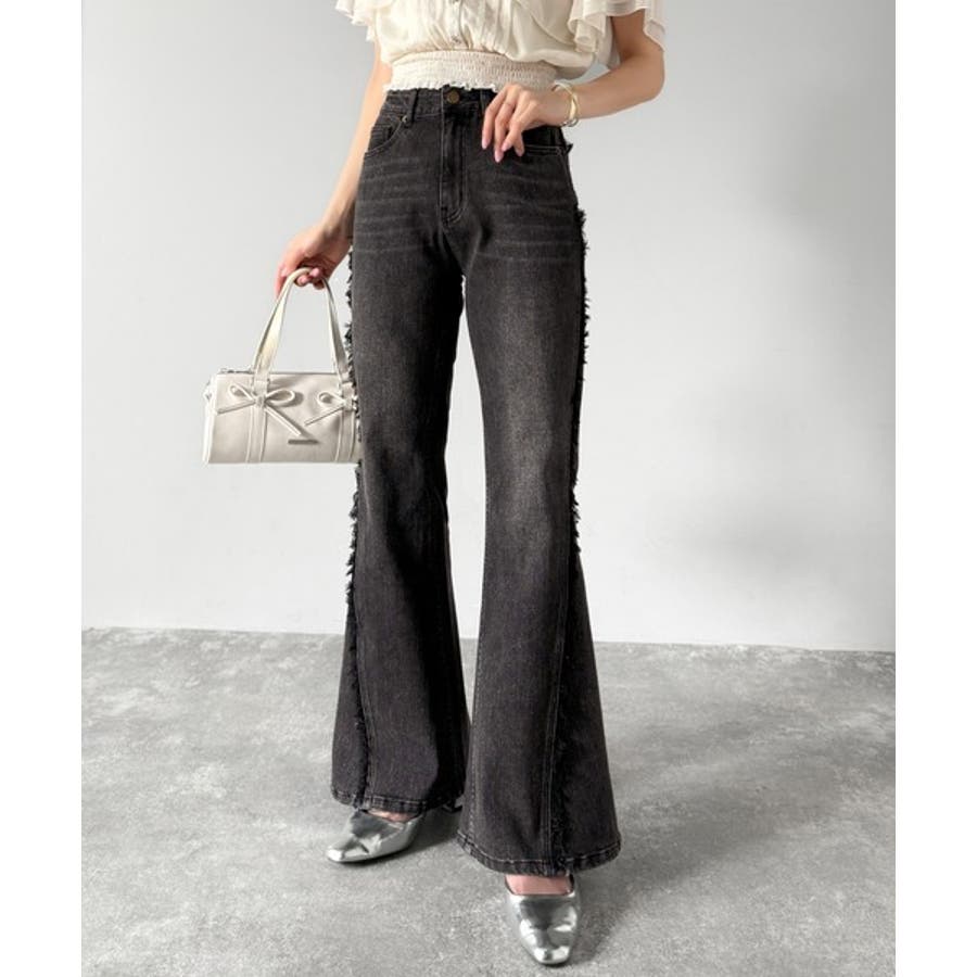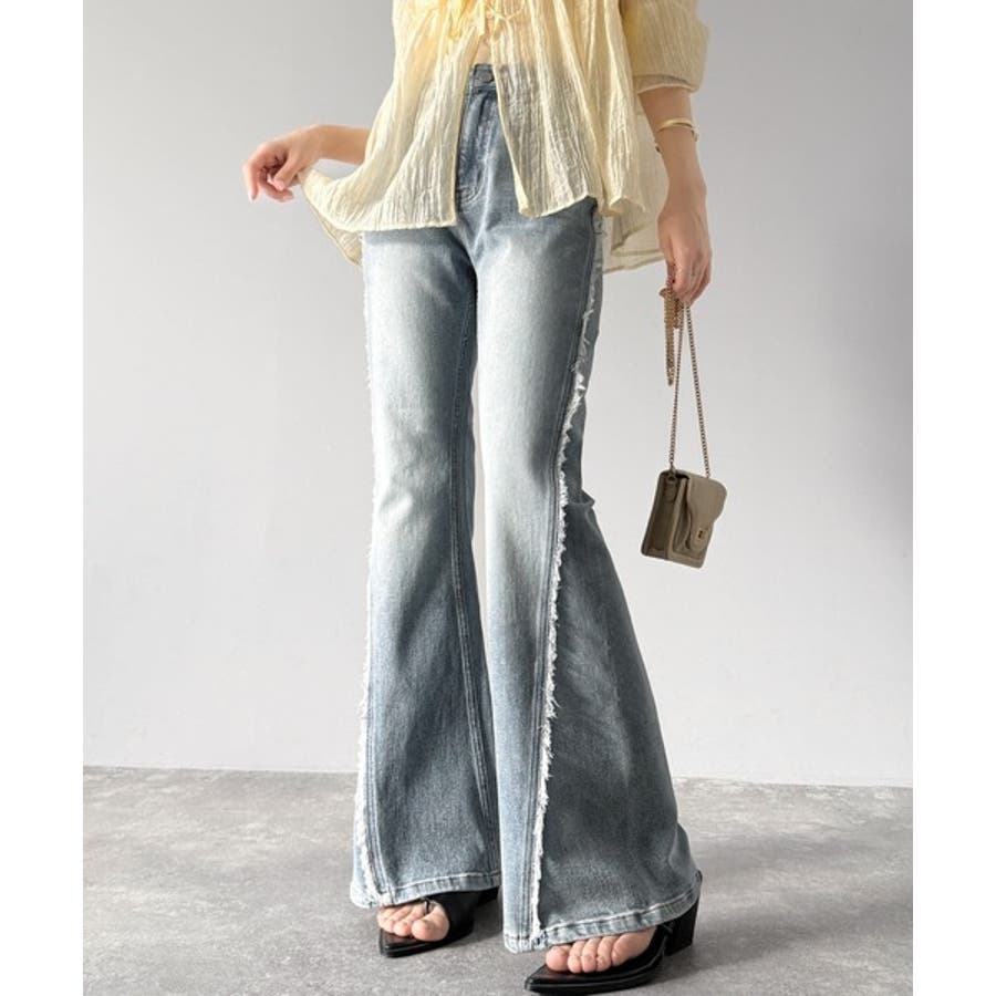 とにかく美脚!サイドフリンジ使いヴィンテージ風デニムフレアパンツ
