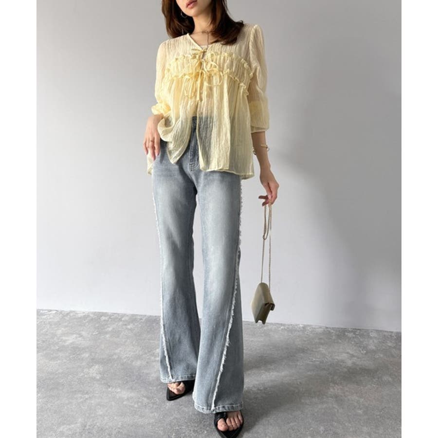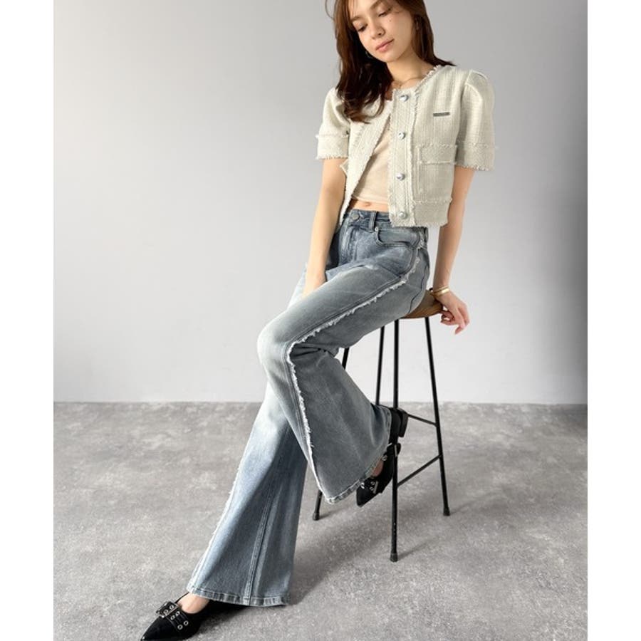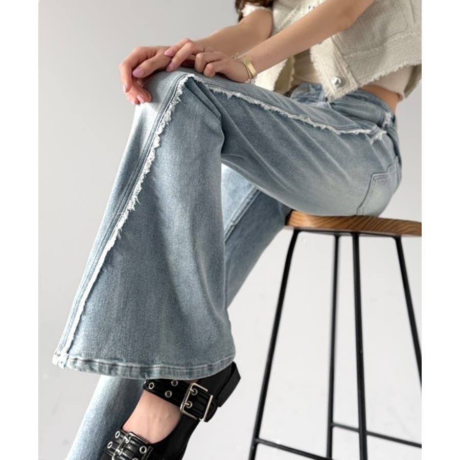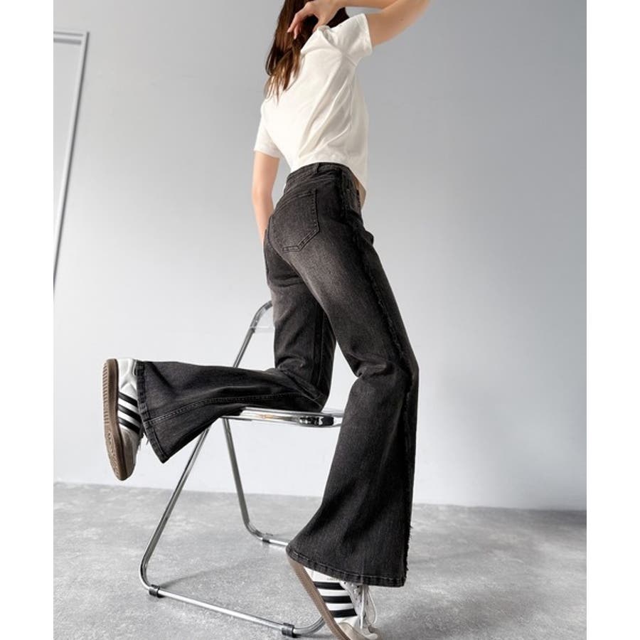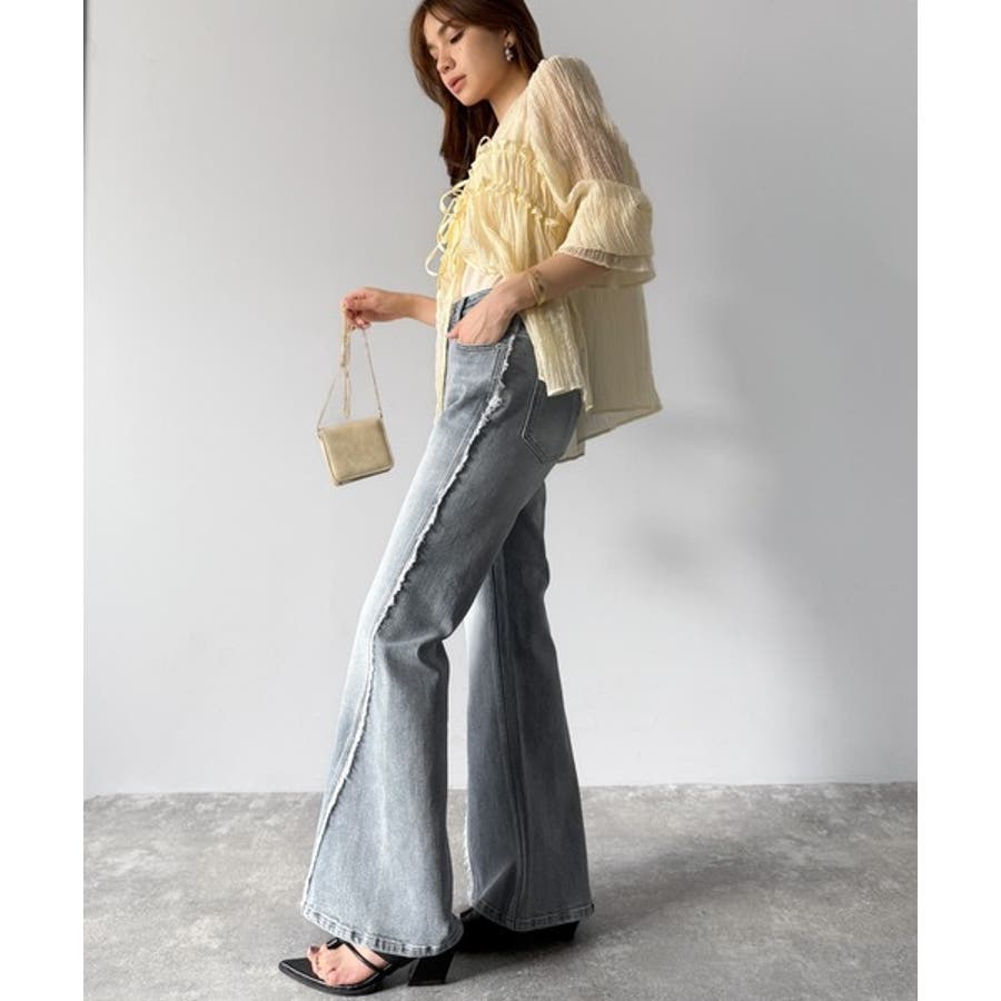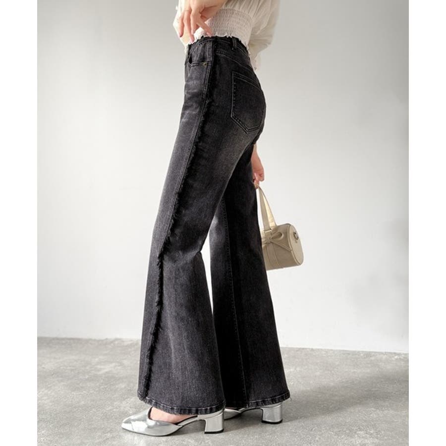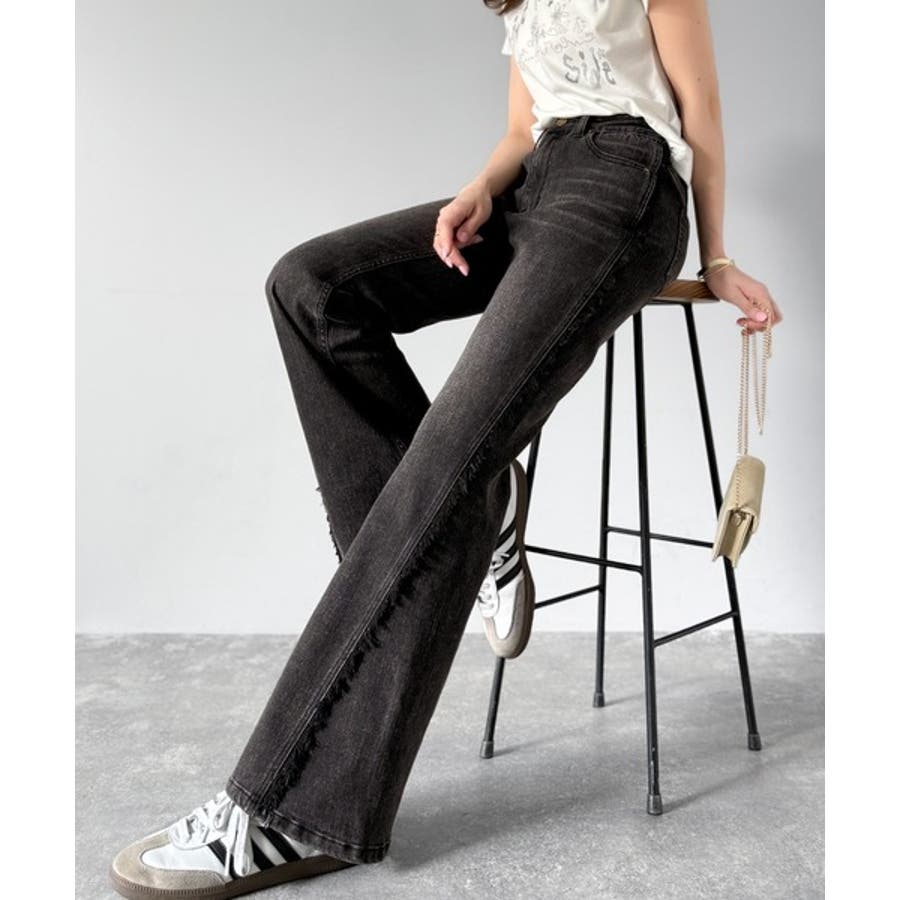 とにかく美脚!サイドフリンジ使いヴィンテージ風デニムフレアパンツ