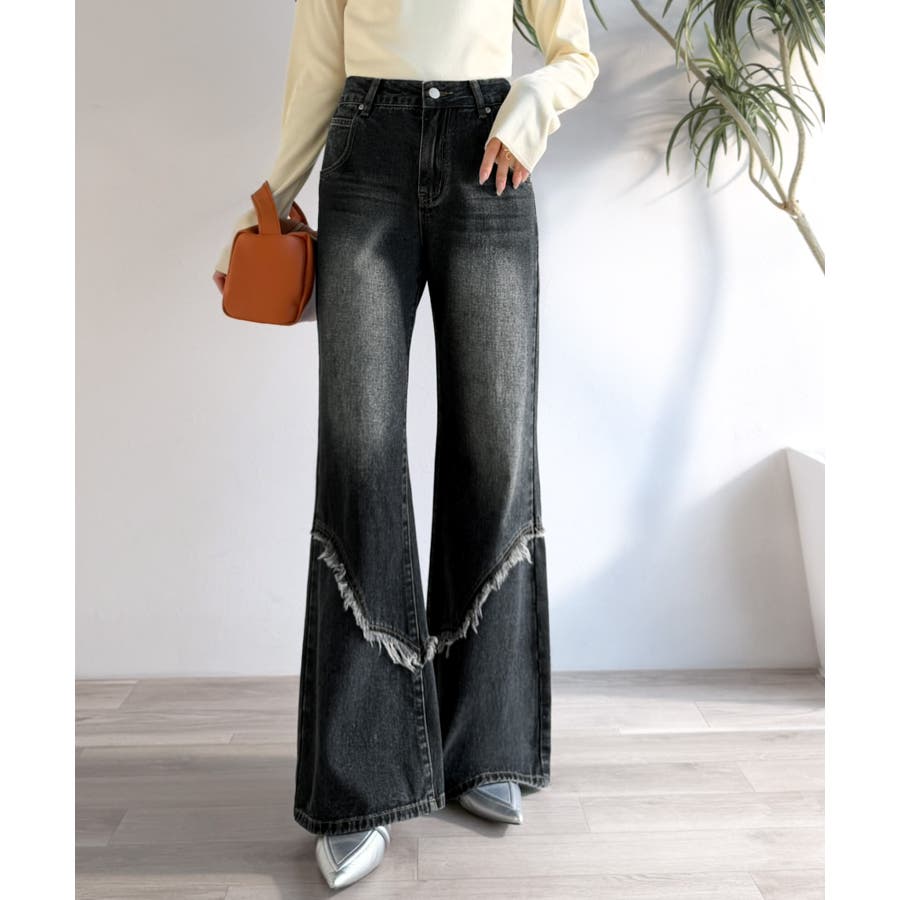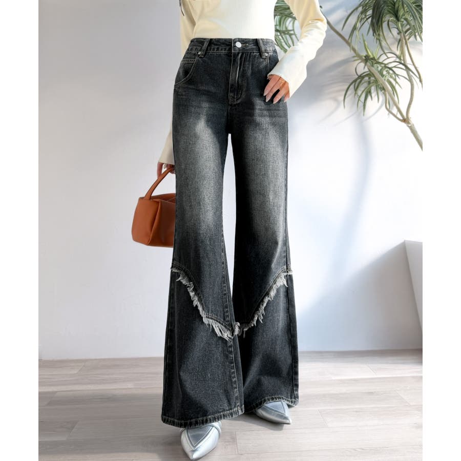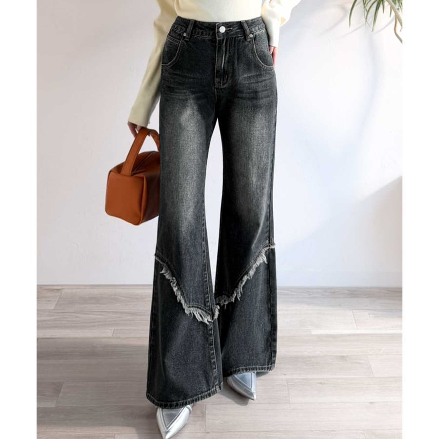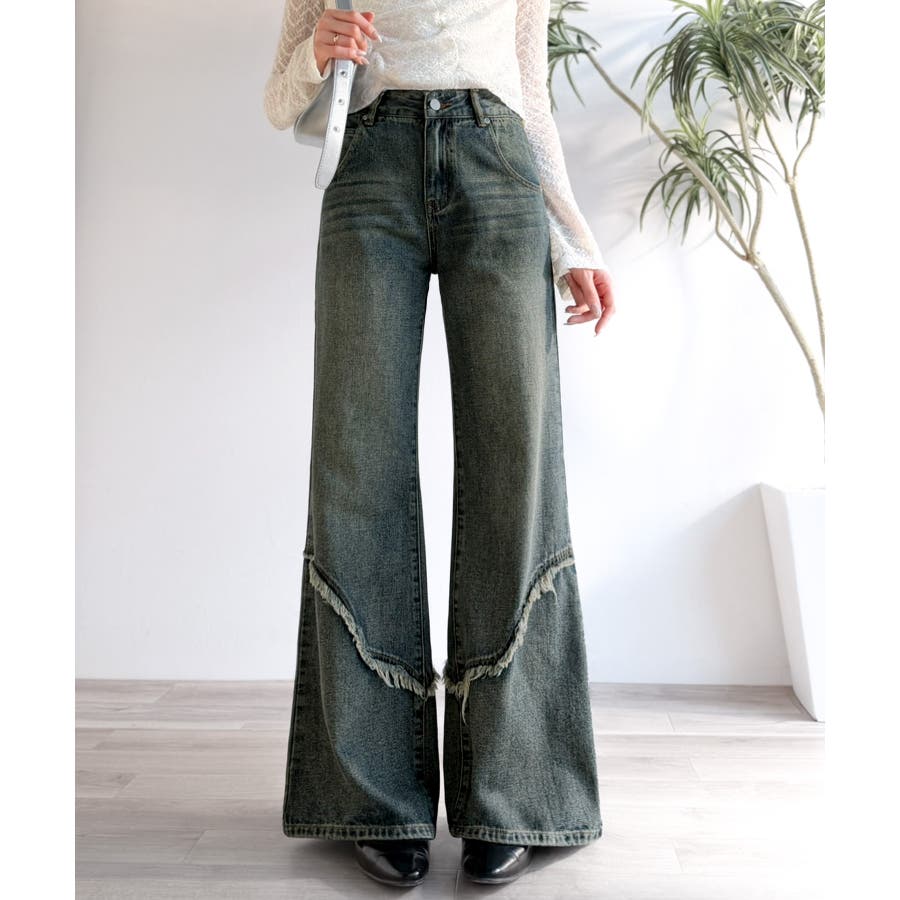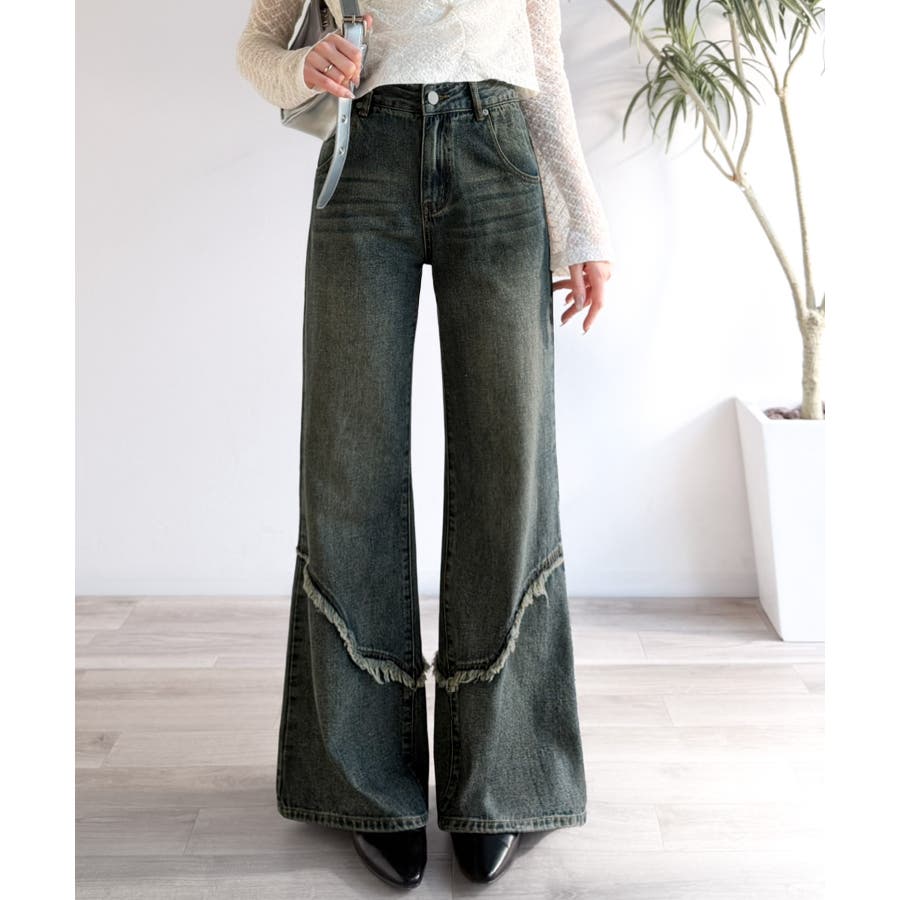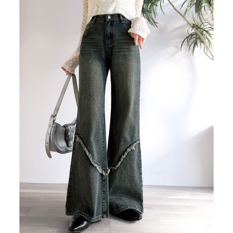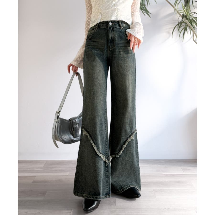 フリンジやウォッシュ加工のニュアンスが、周りと差をつけたい方にぴったりのデニムです。