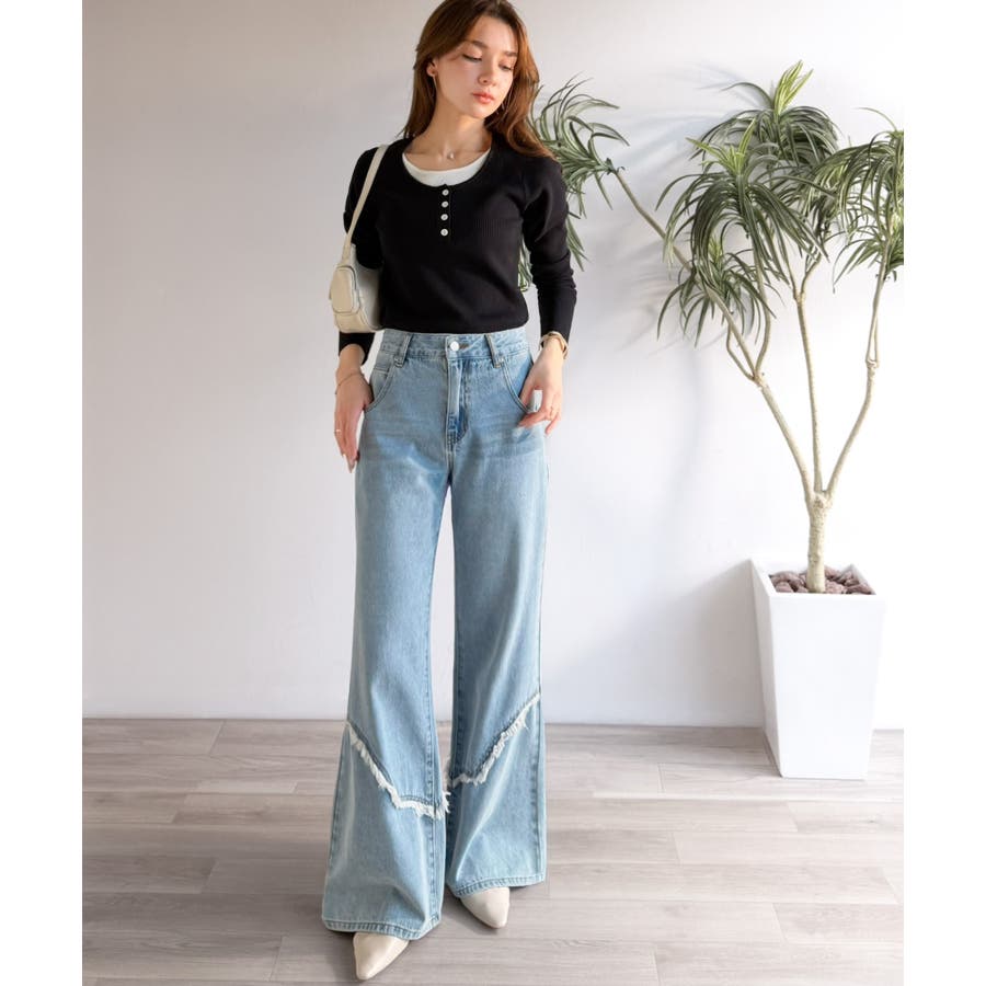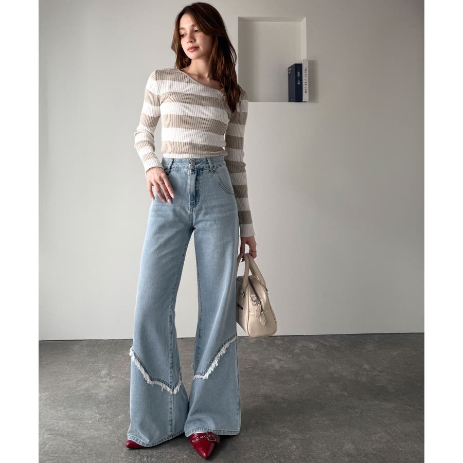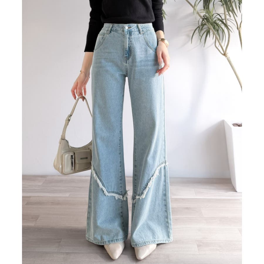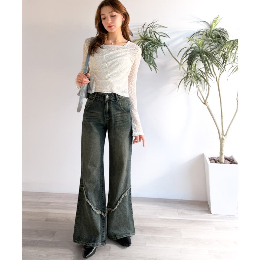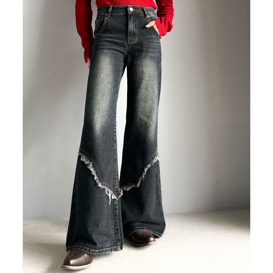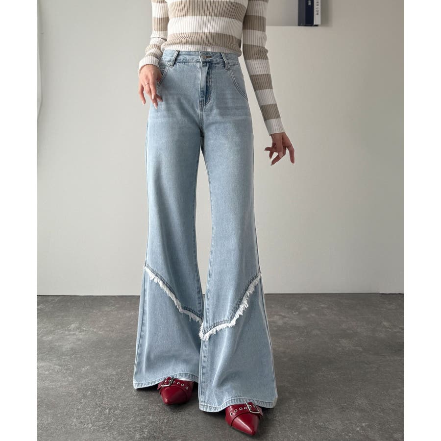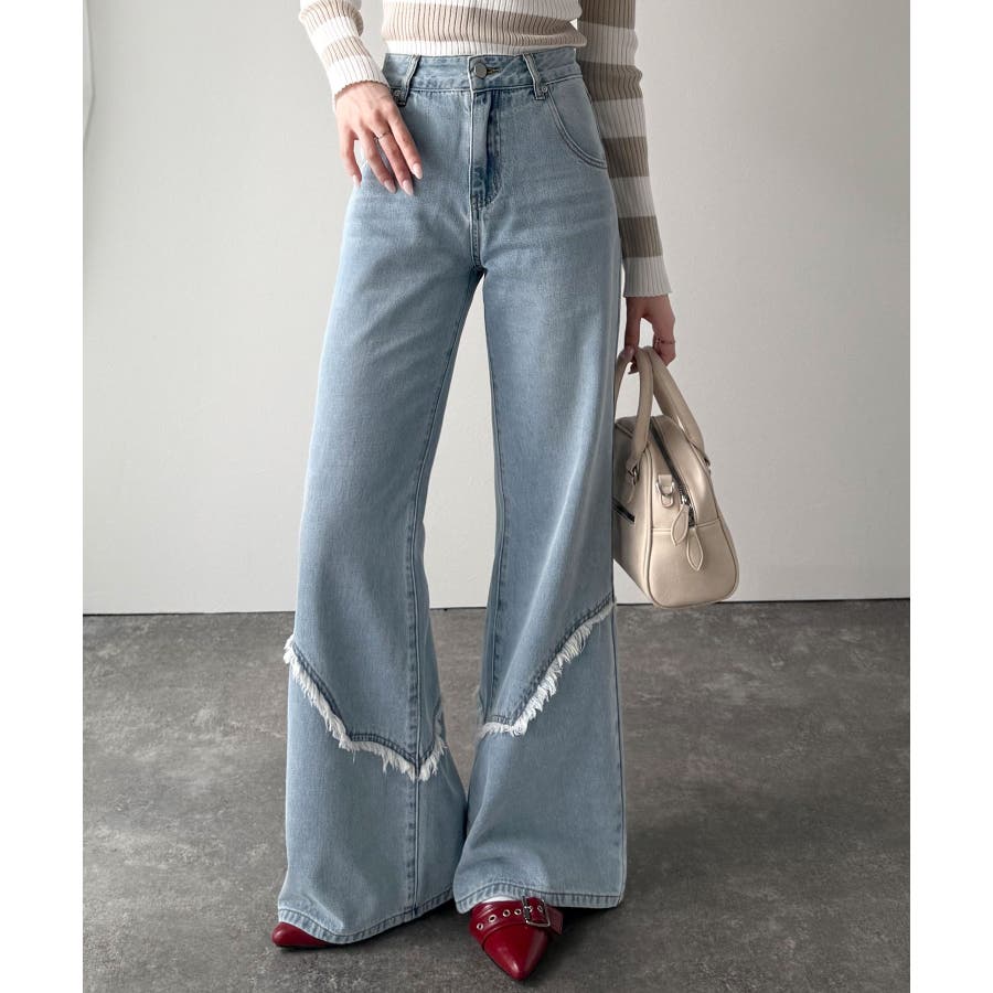 フリンジやウォッシュ加工のニュアンスが、周りと差をつけたい方にぴったりのデニムです。