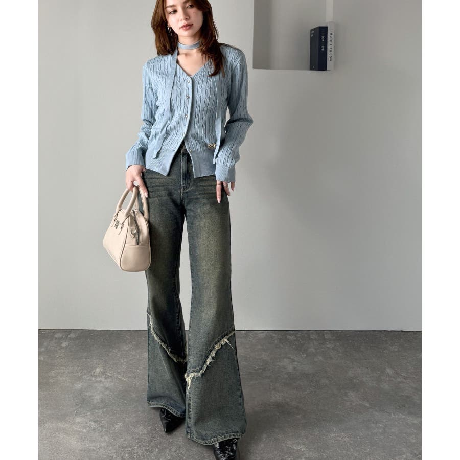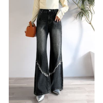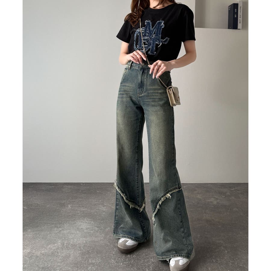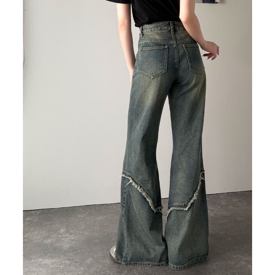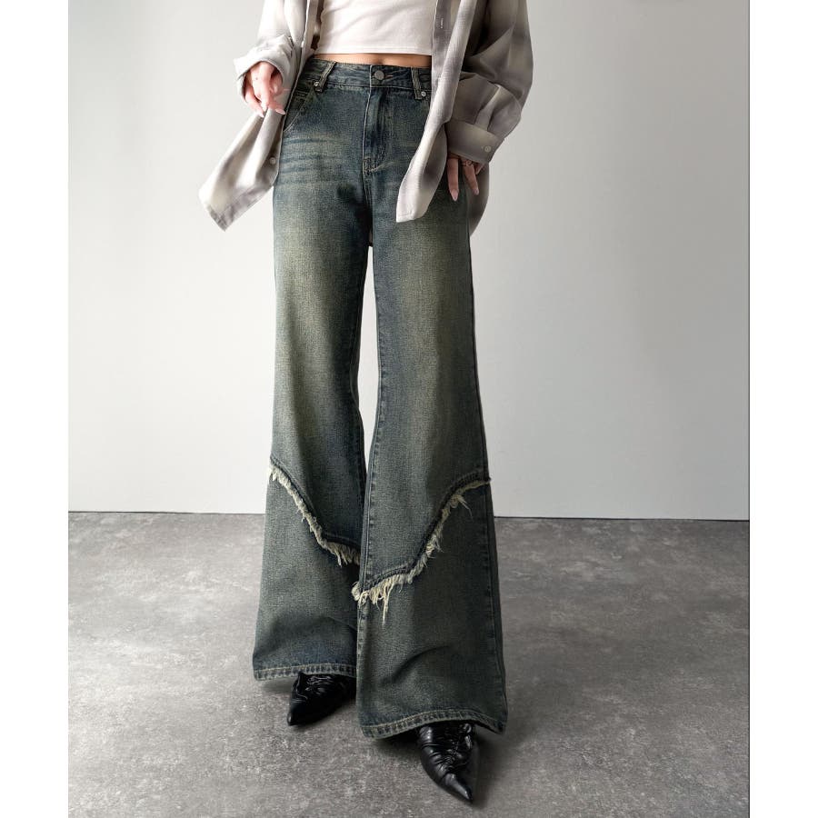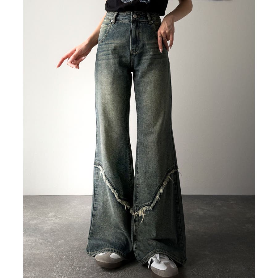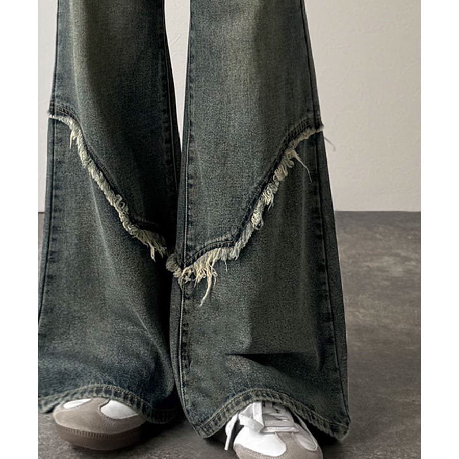 脚のラインをきれいに見せてくれるフレアシルエットに、ヴィンテージ加工を施した風合いがこなれ感をプラス。