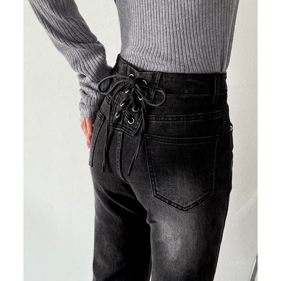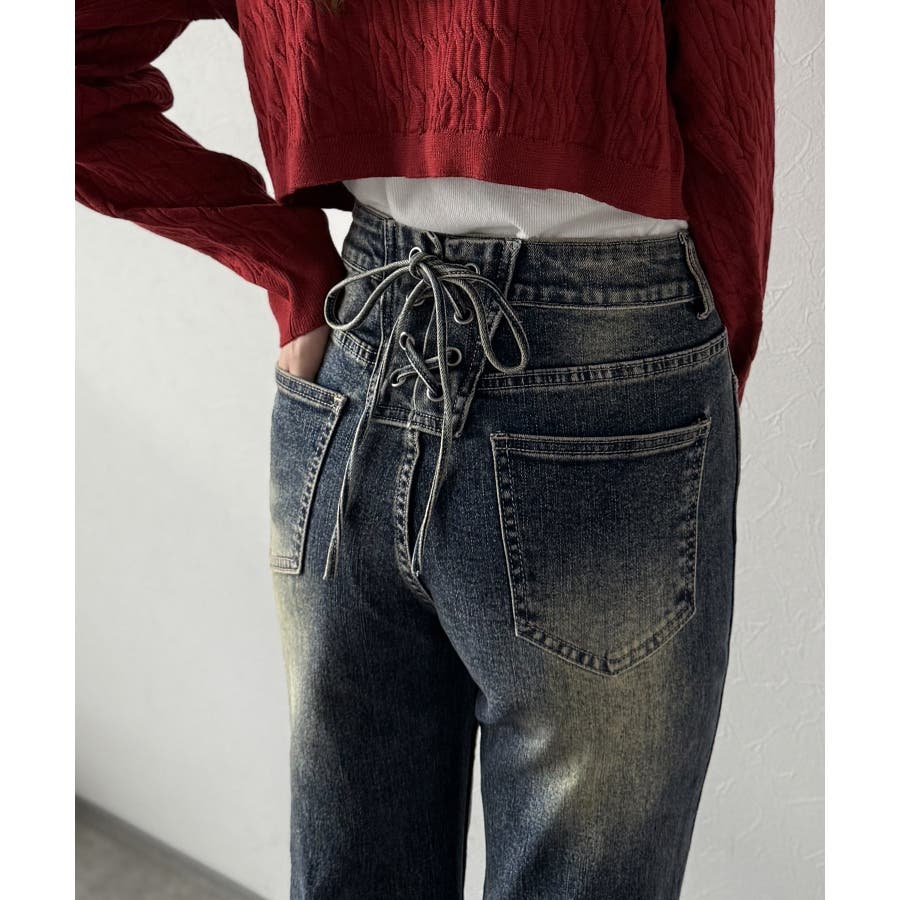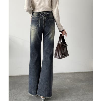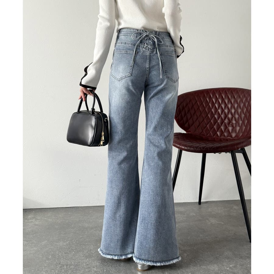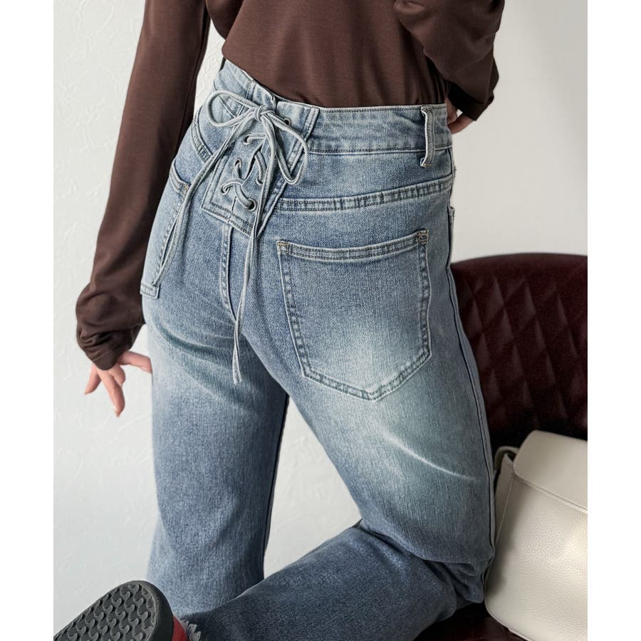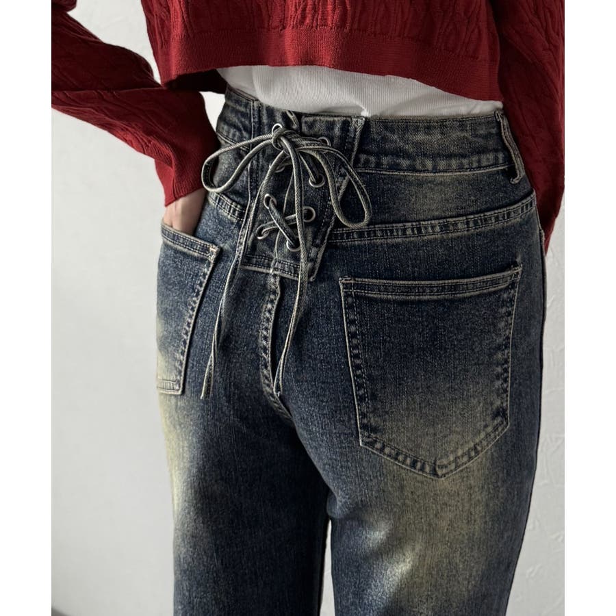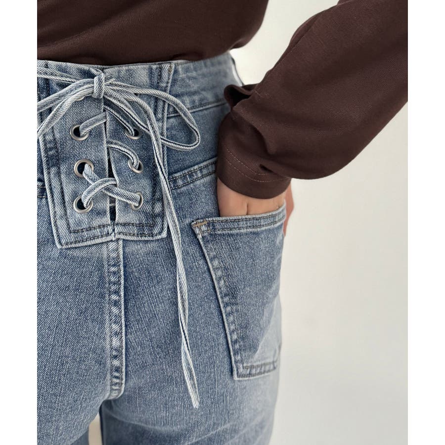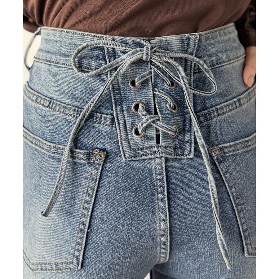 編み上げ仕様のバックリボンを背面に施したガーリーなデニム♪