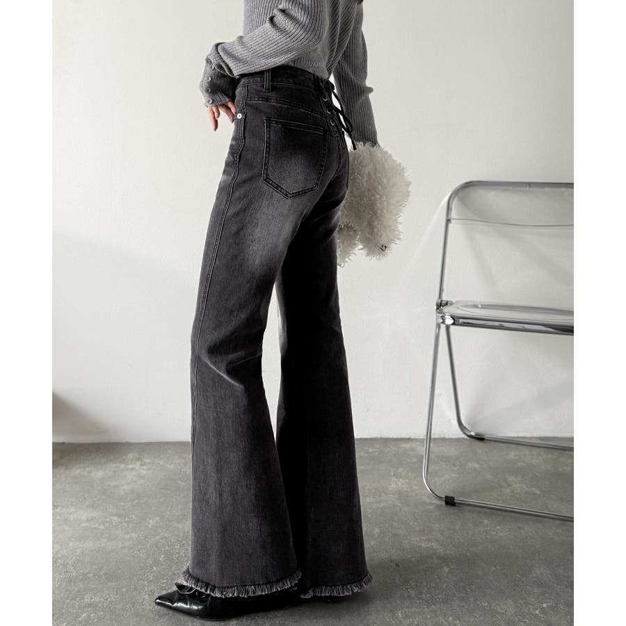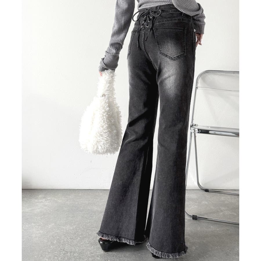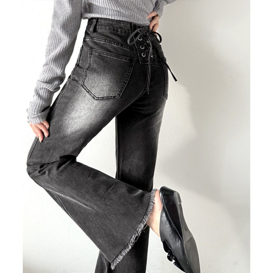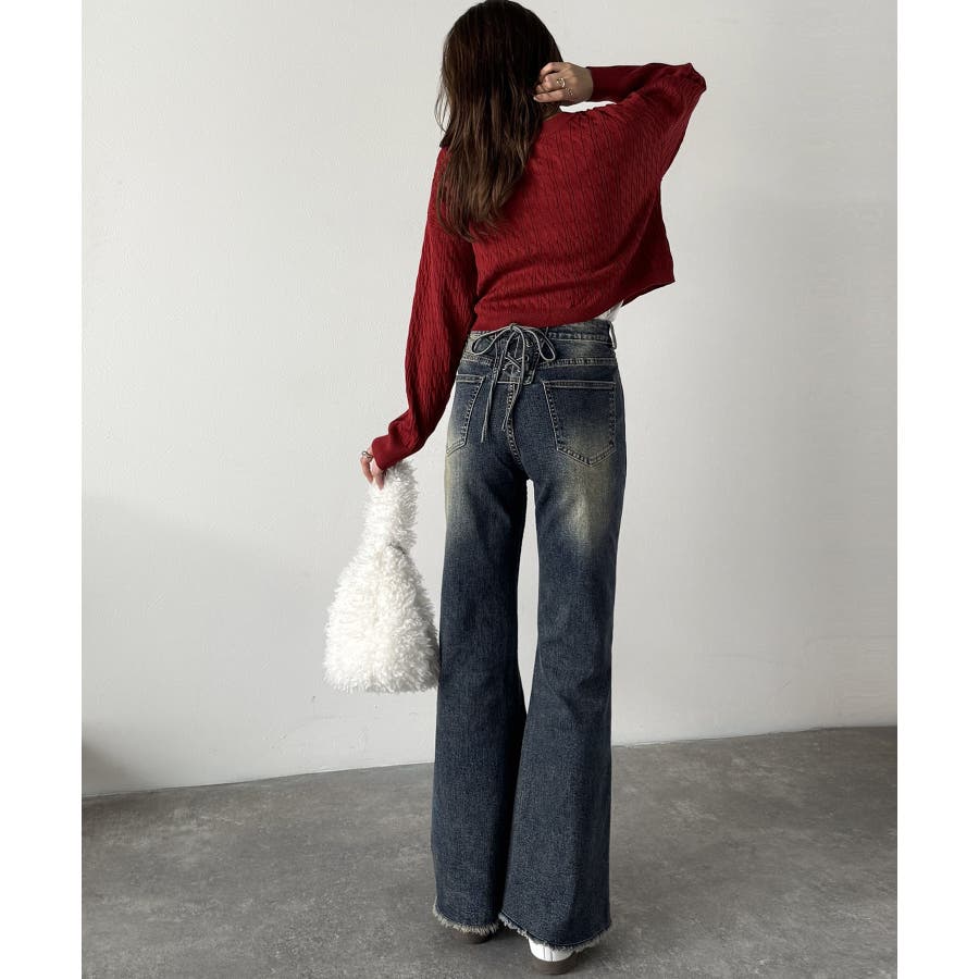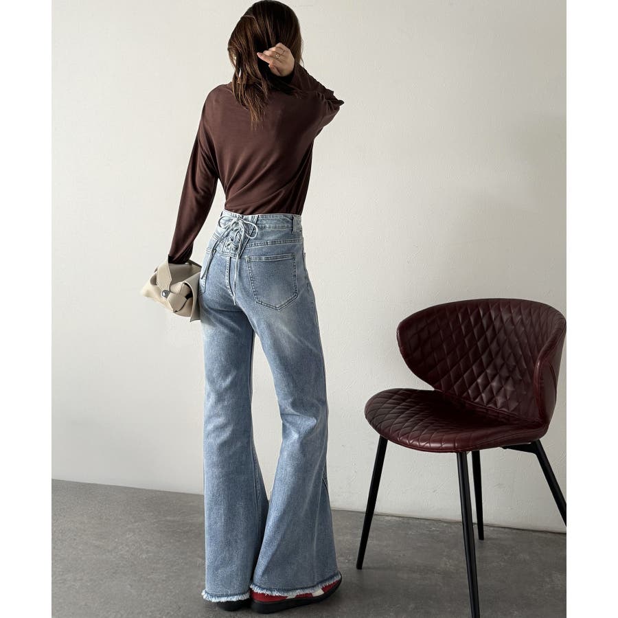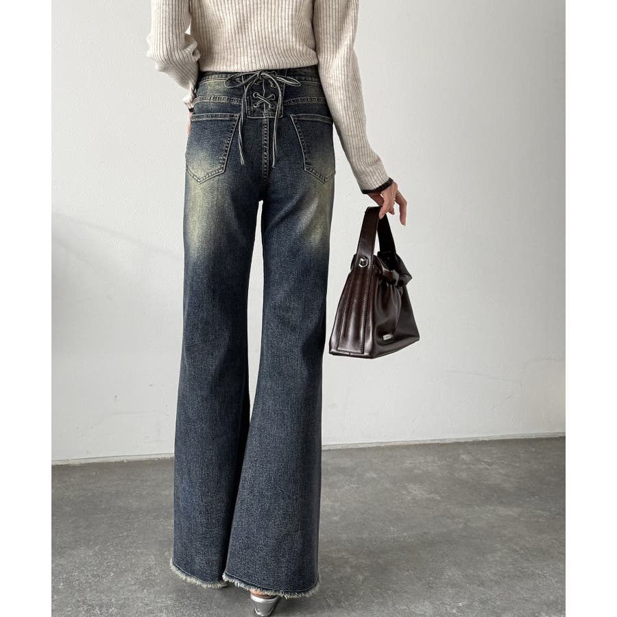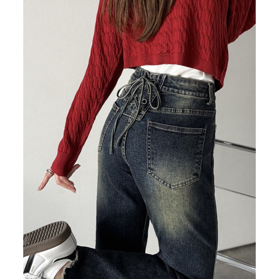 編み上げ仕様のバックリボンを背面に施したガーリーなデニム♪