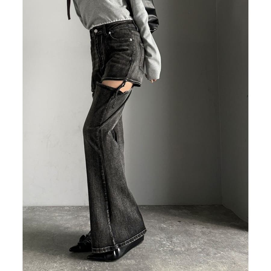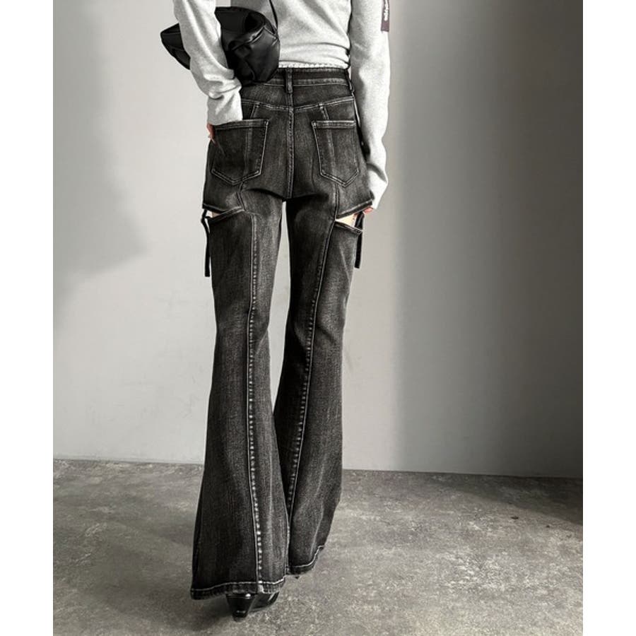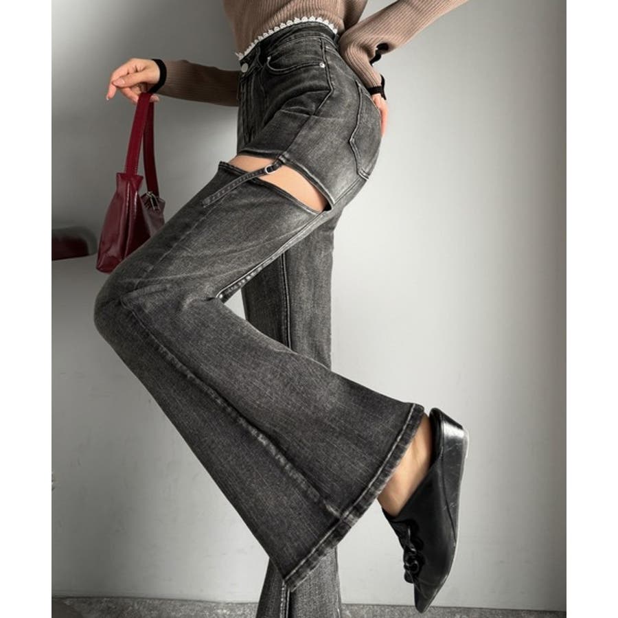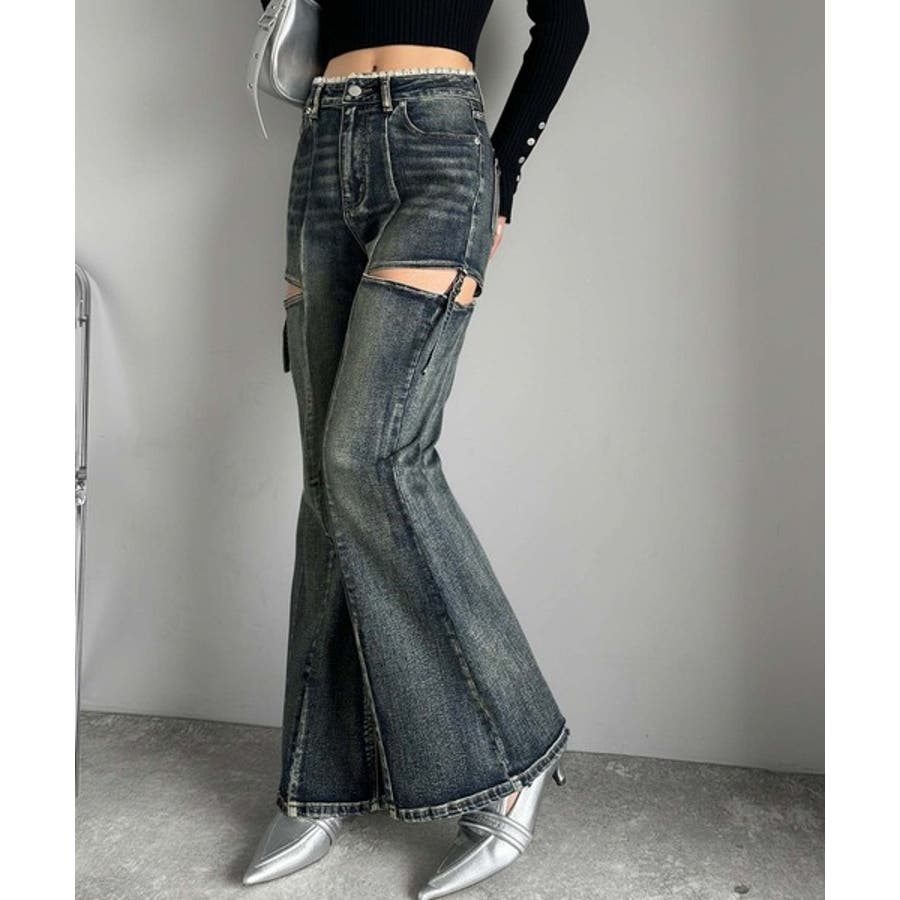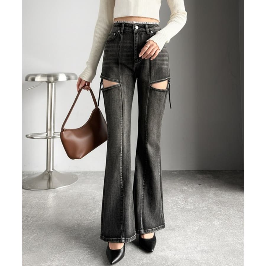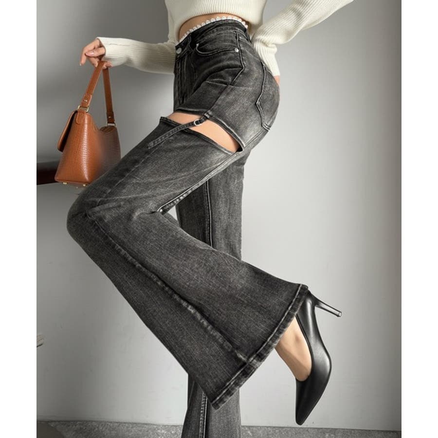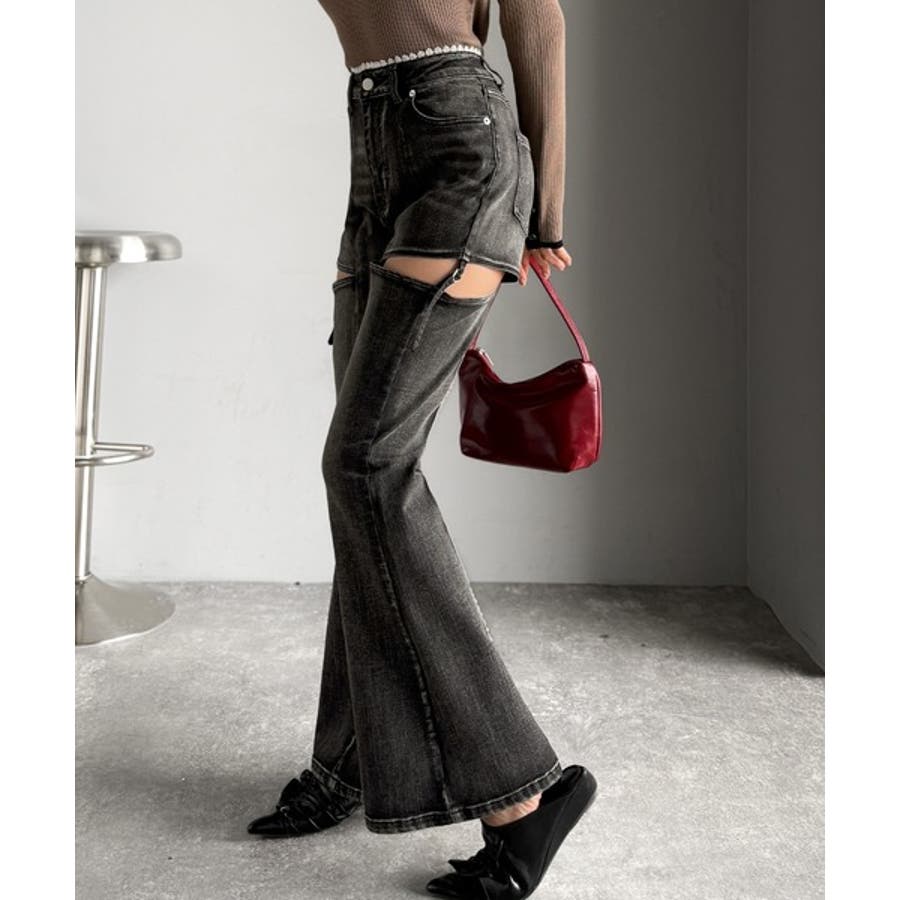 フレアシルエットが脚長視覚効果を実現する洗練デニム。