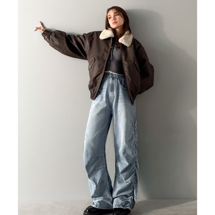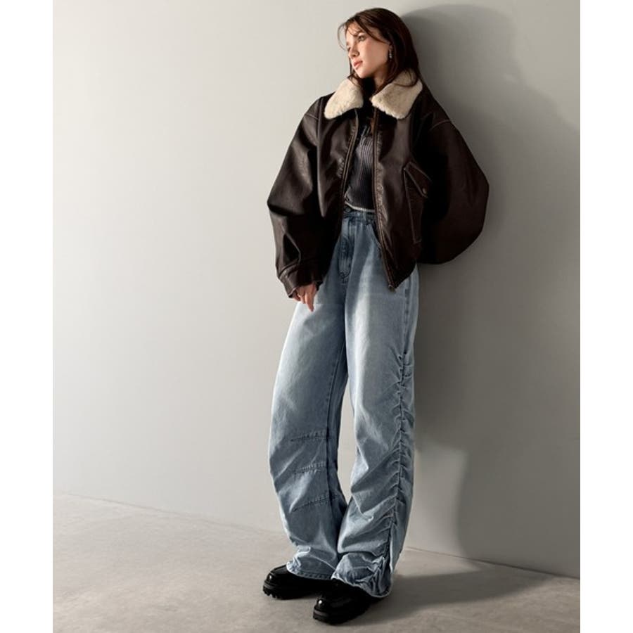 上からショートダウンやボアブルゾンを羽織って、旬の“コンパクト×ワイド”シルエットを楽しんで◎