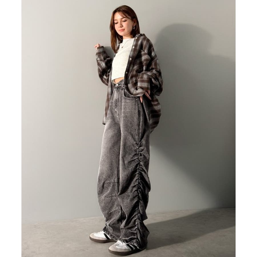 裾までゆるやかに落ちるワイドシルエットが、トレンドのストリート感を演出。