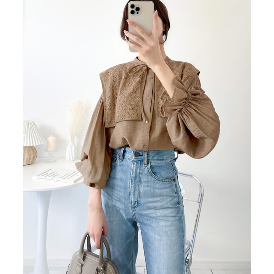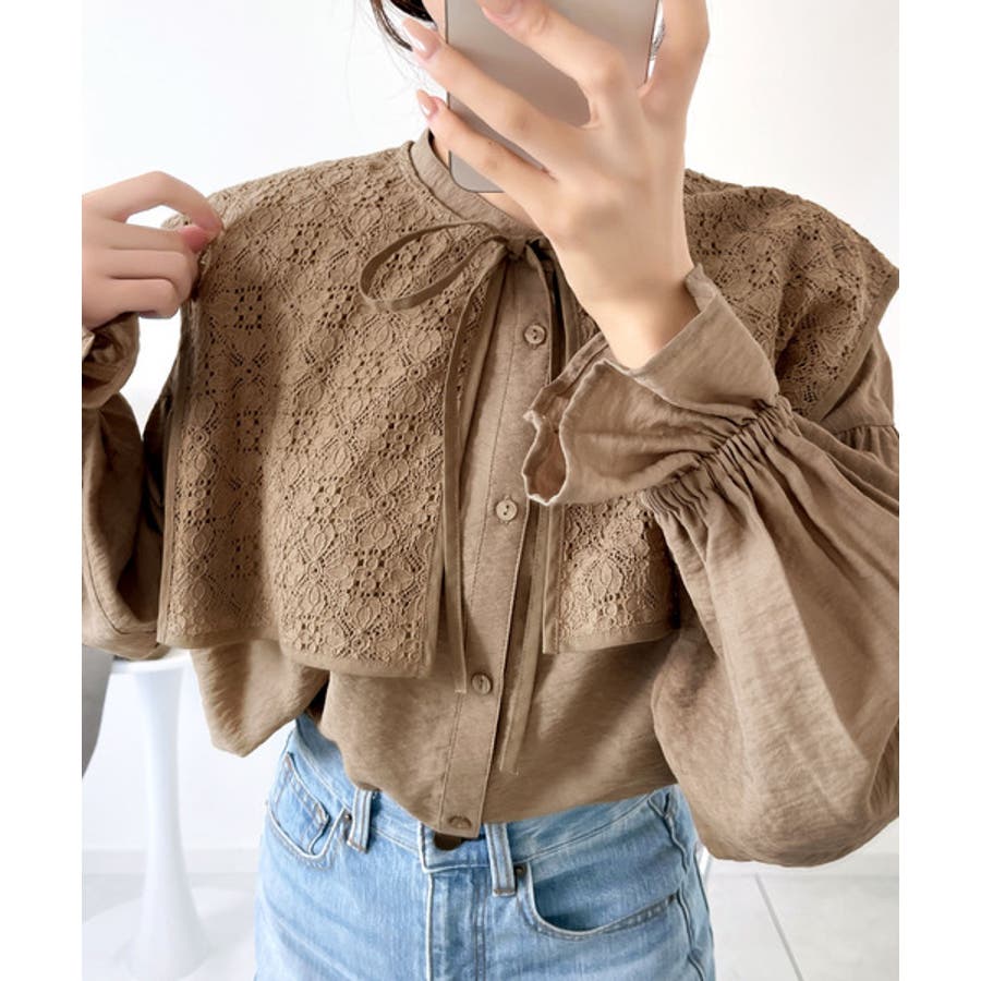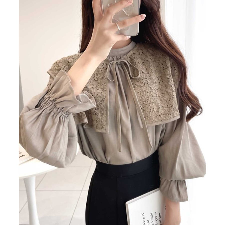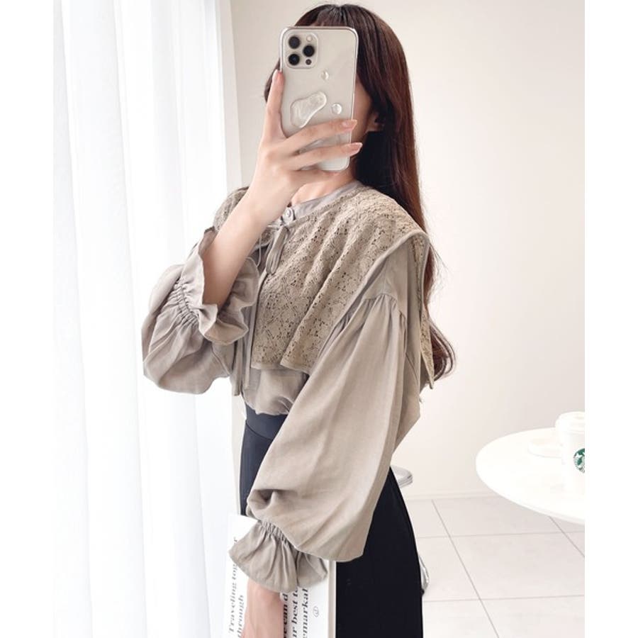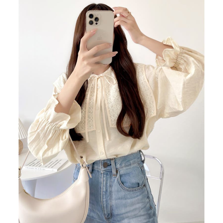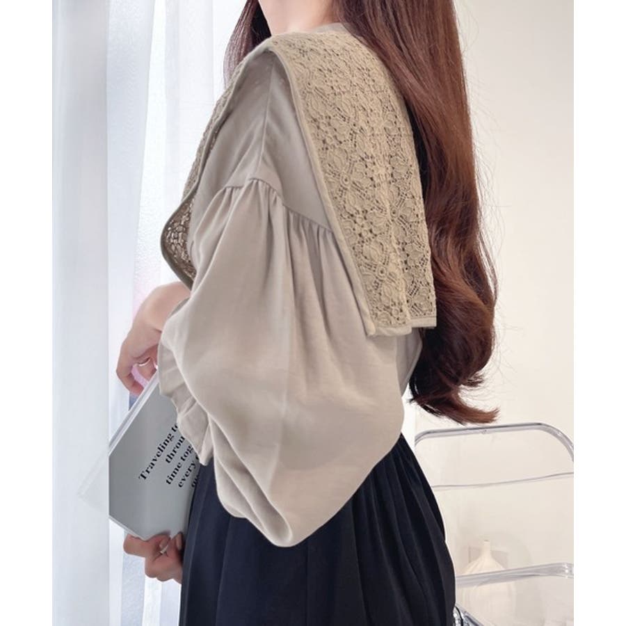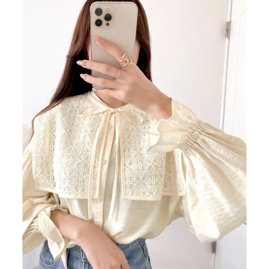 取り外し可能なビッグレース衿3wayキャンディスリーブブラウス