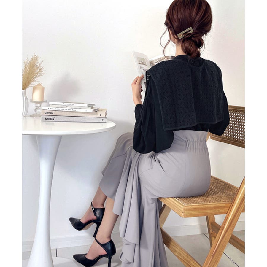 首元にさっとレース襟を巻けば、旬な大人かわいいコーデが完成♪