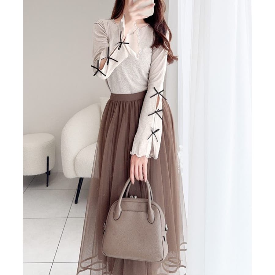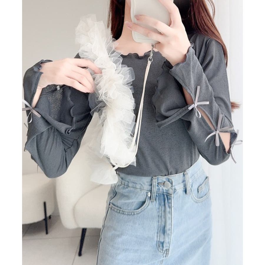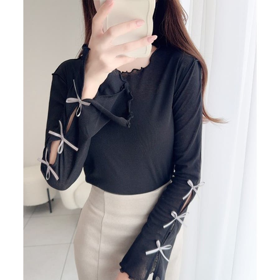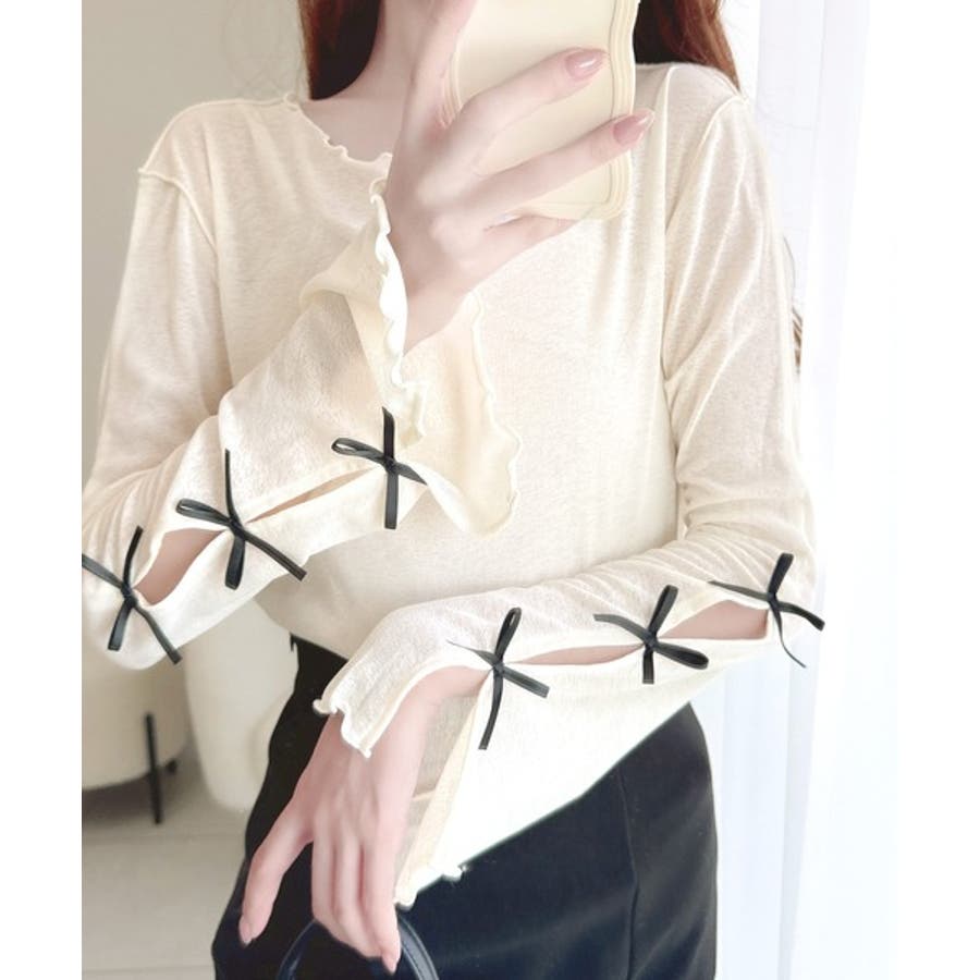 袖リボン付きフレアスリーブプルオーバーカットソーの登場!
