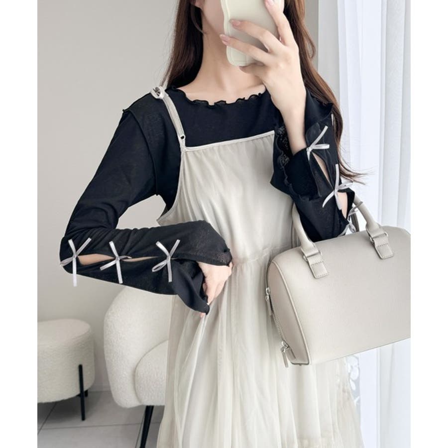 繊細なリボンが袖元を飾り女性らしいエレガントさを演出します。
