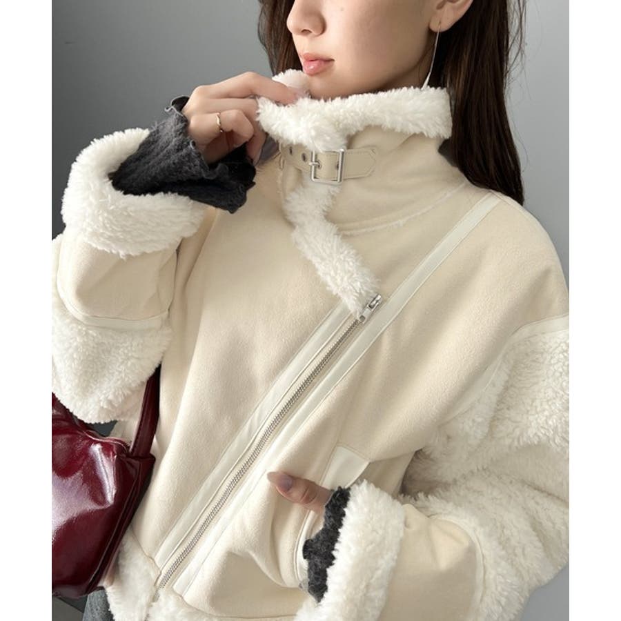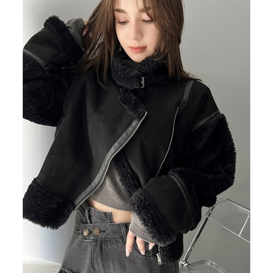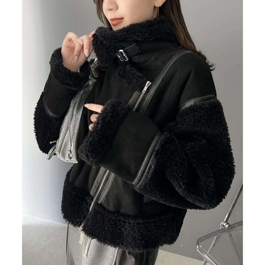 キュートかつ大人アウター。スリーブボアショートフェイクムートンジャケット