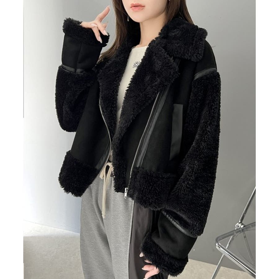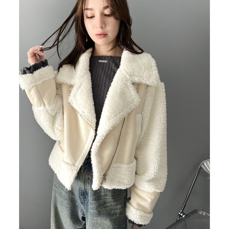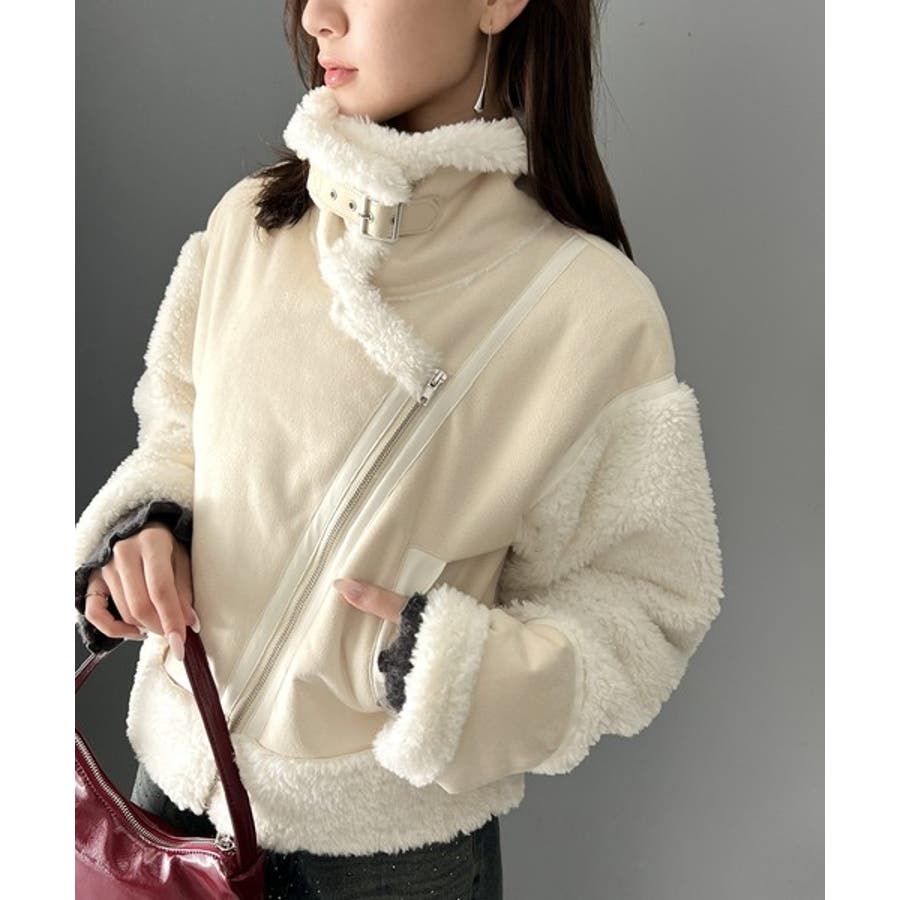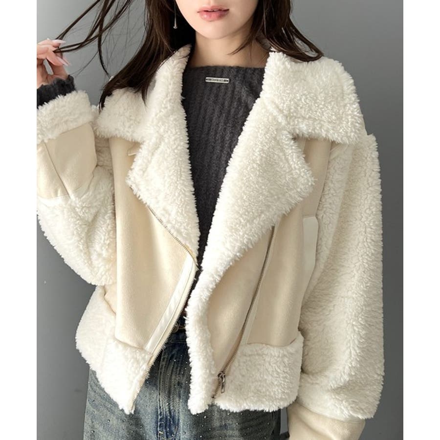 フェイクスエードとボアのボンディングライダースジャケット。