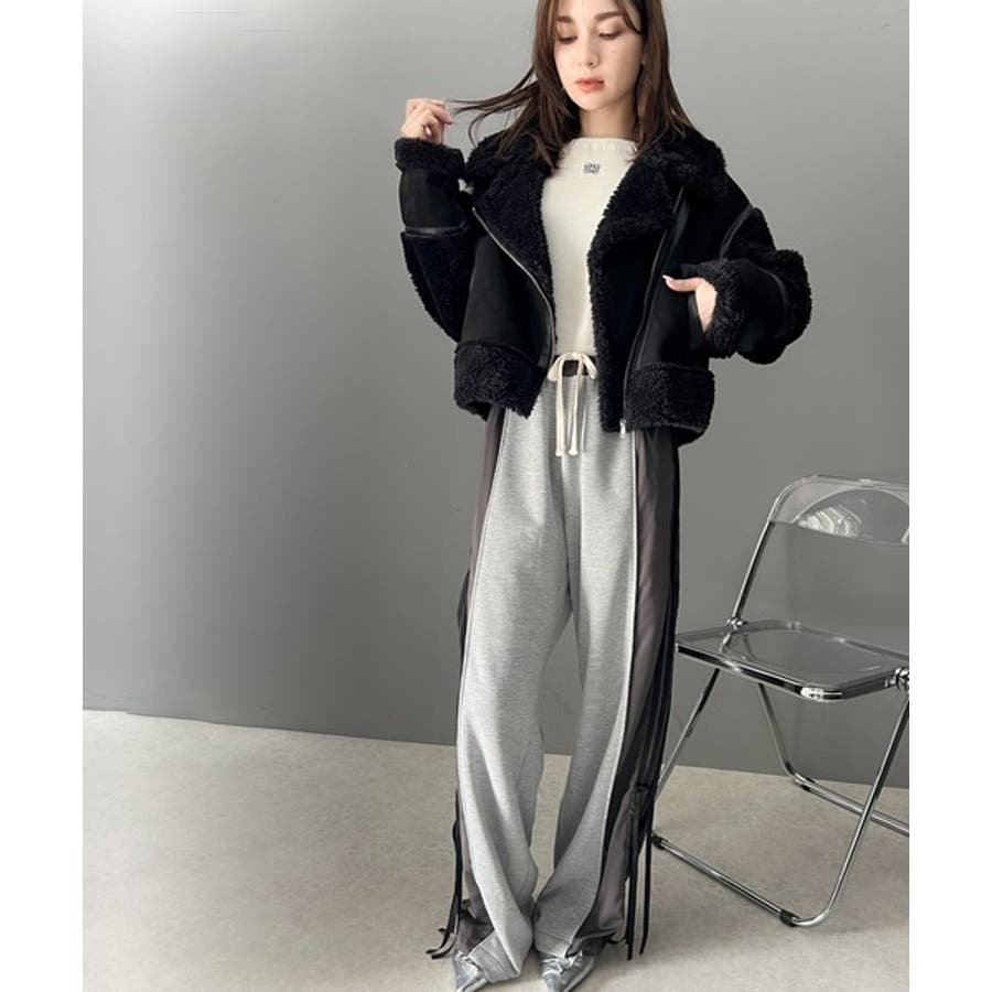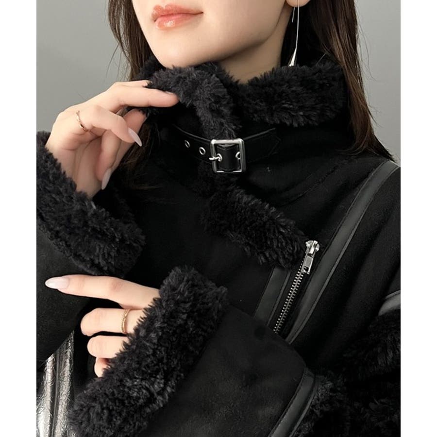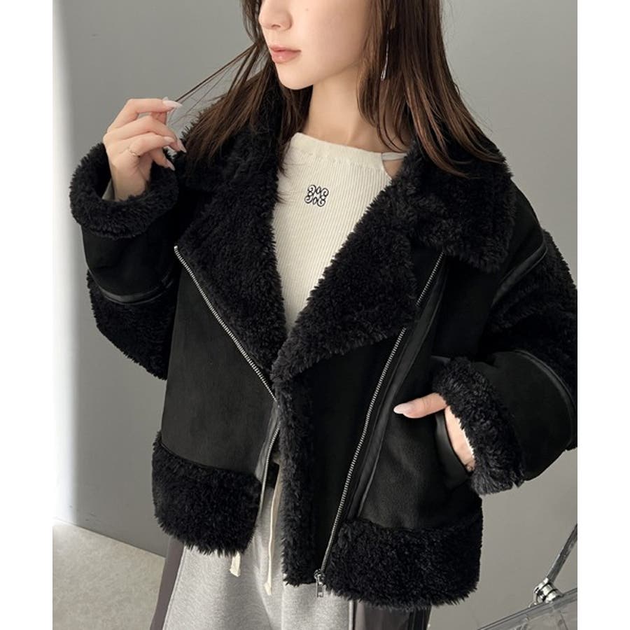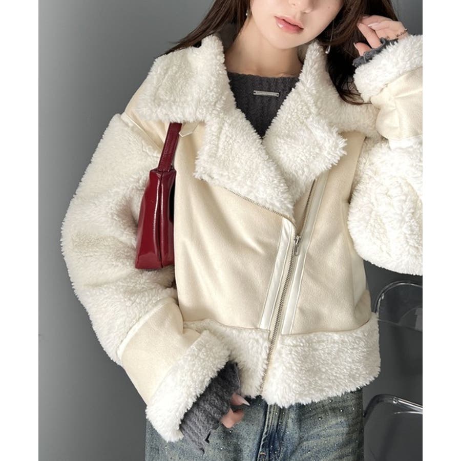 フェイクスエードとボアのボンディングライダースジャケット。