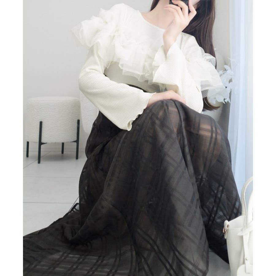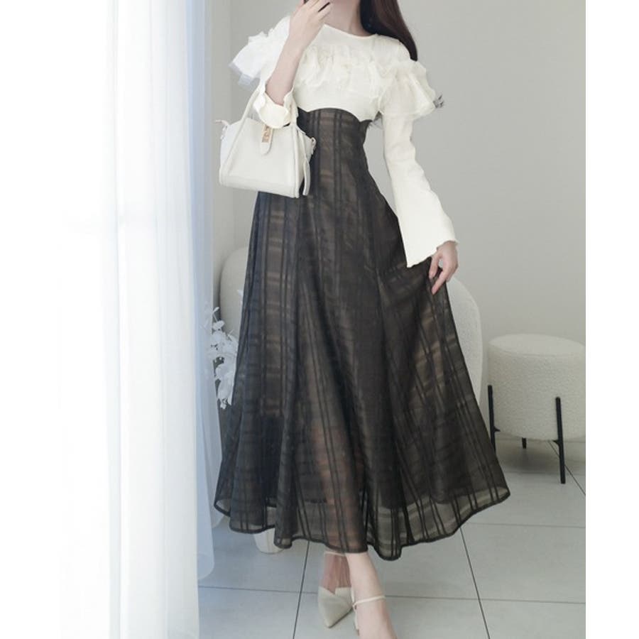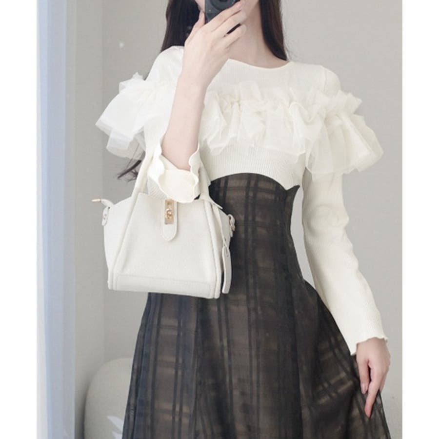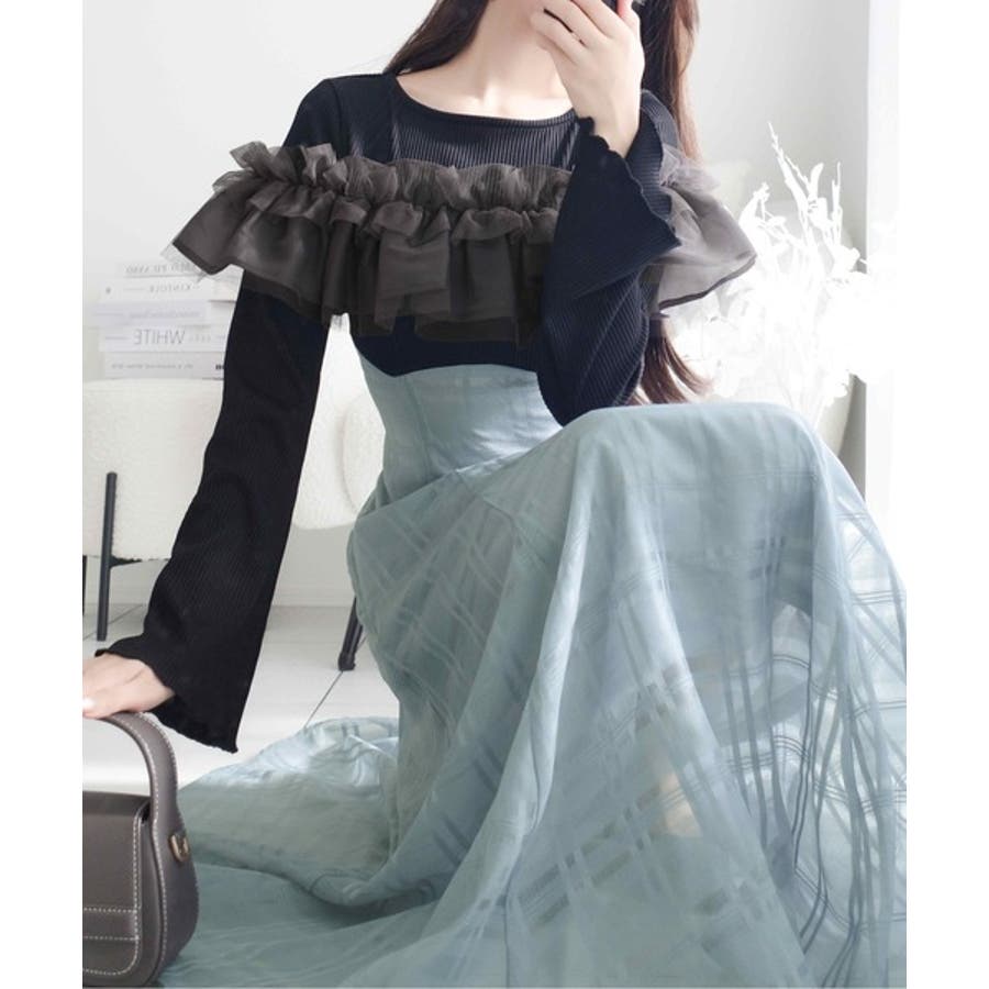 【mily bilet】大人の女性にぴったり!チュールフリルデザインドッキングワ…