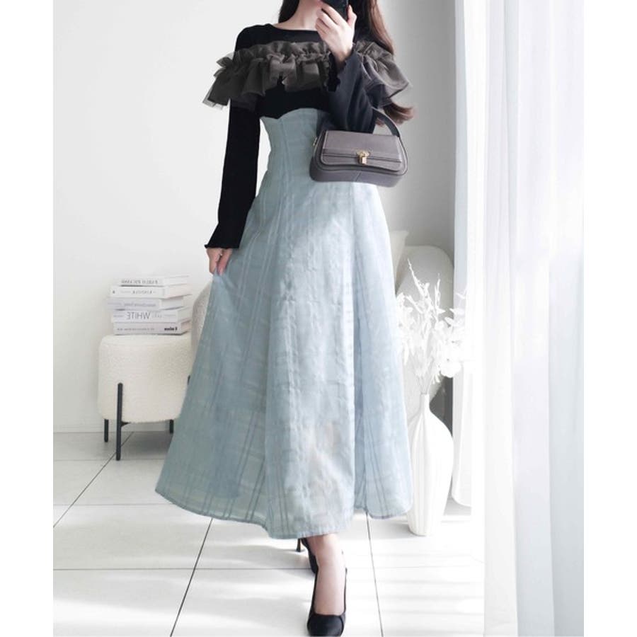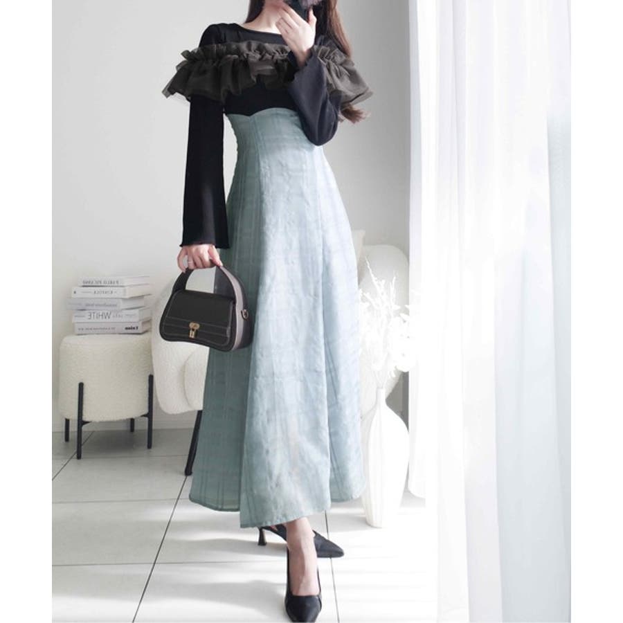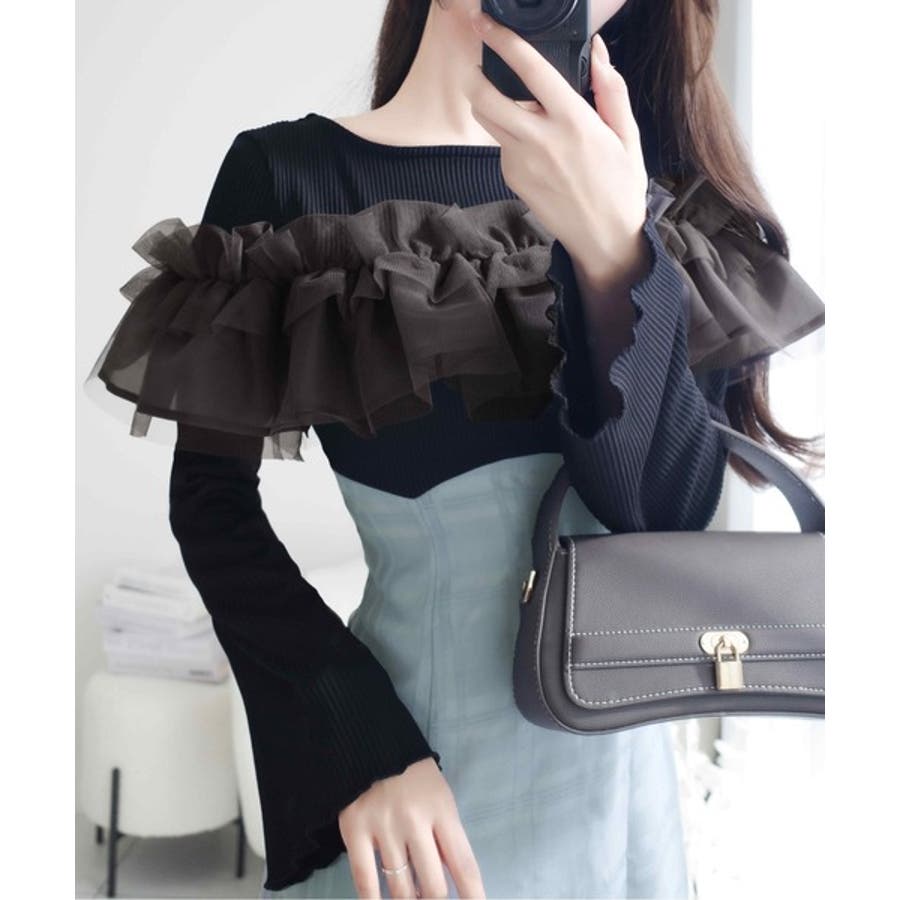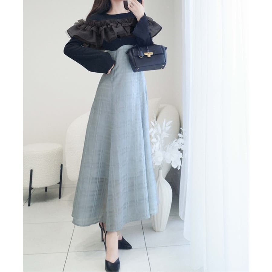 【mily bilet】大人の女性にぴったり!チュールフリルデザインドッキングワ…