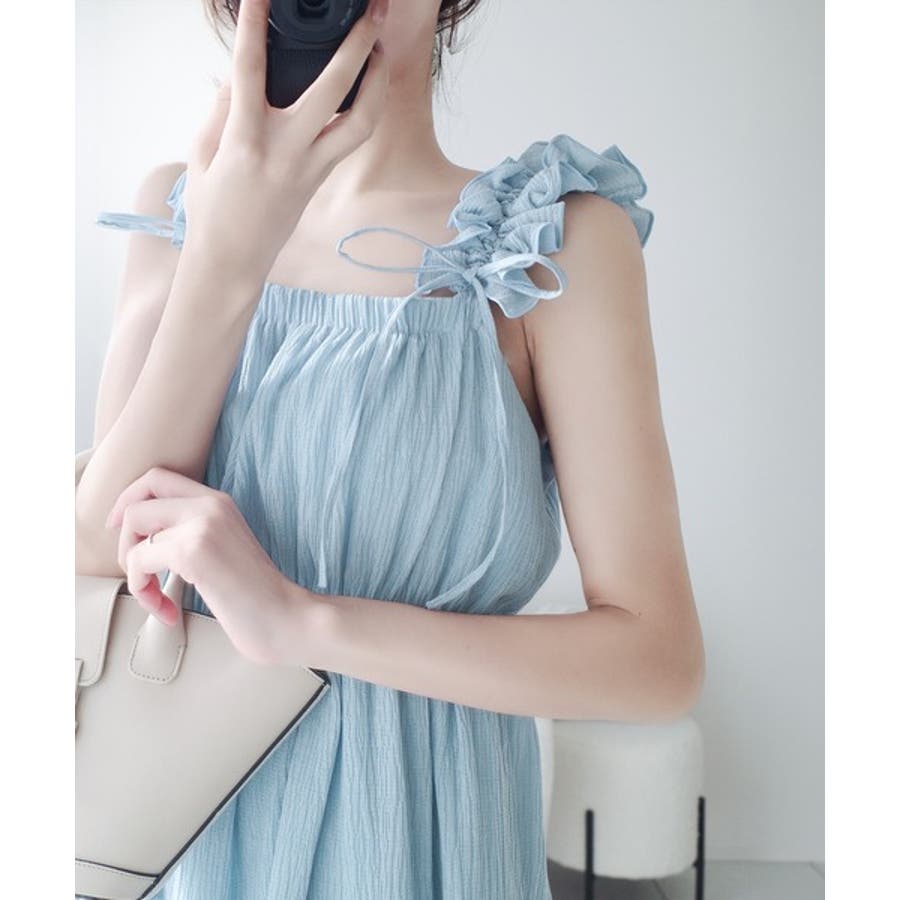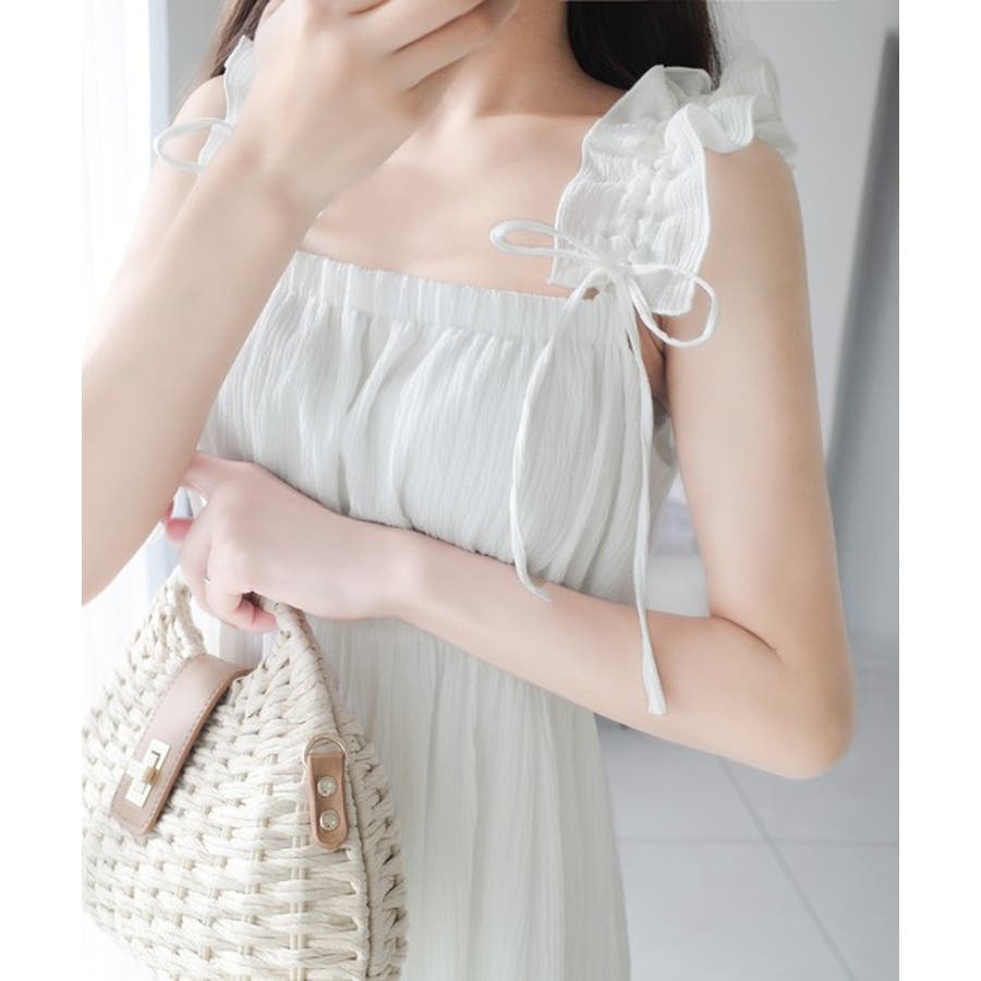 【mily bilet】甘くて軽やか。フリルショルダーAラインティアードキャミワ…