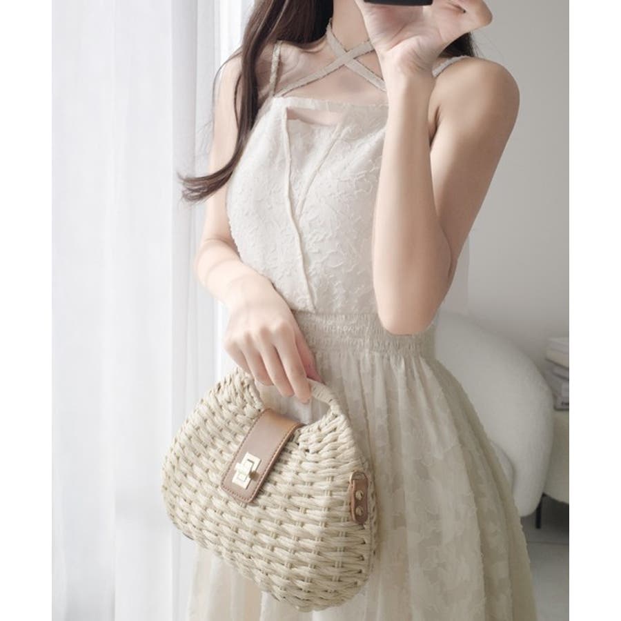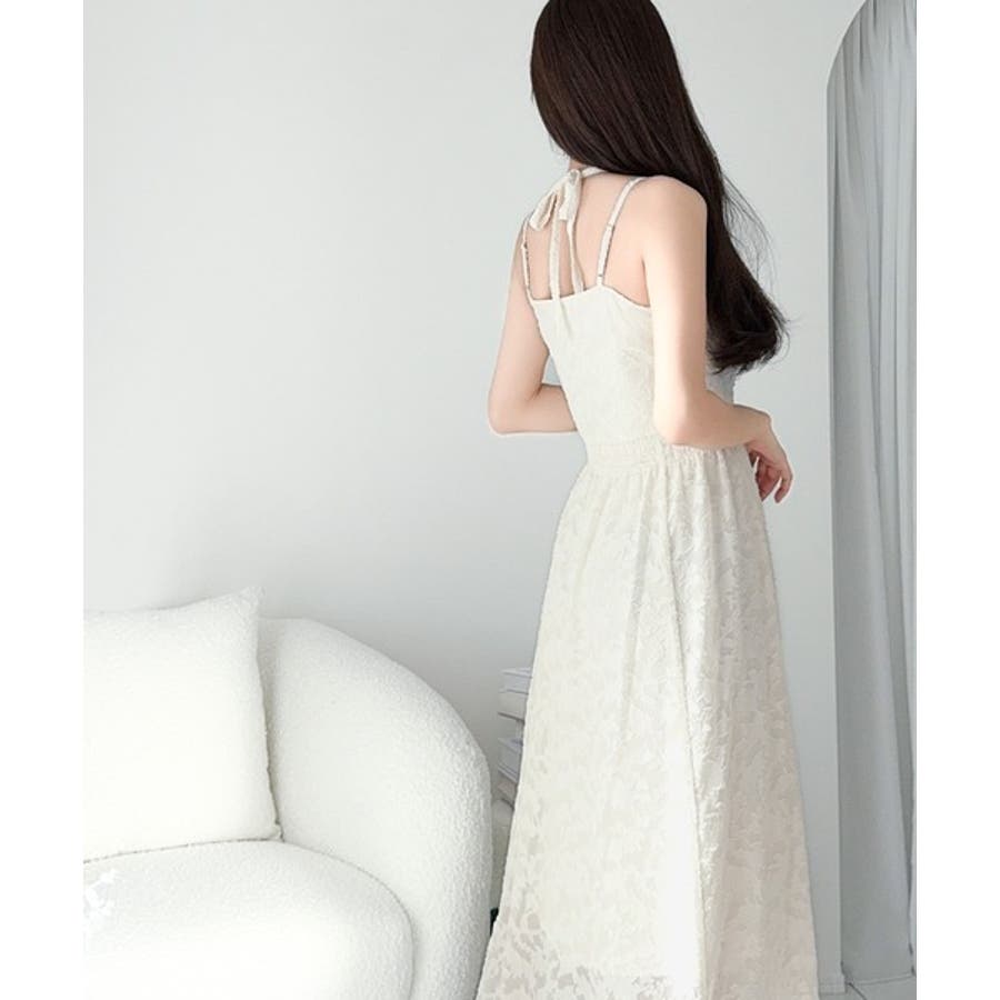 華奢感のあるストラップリボンが印象的なワンピース。