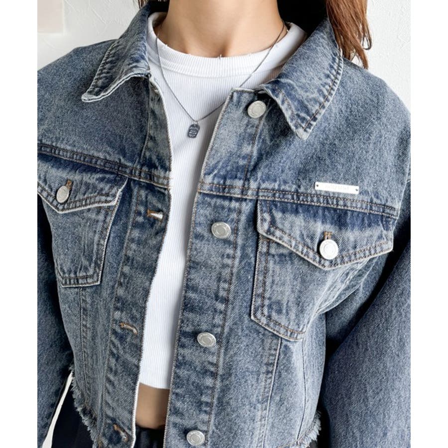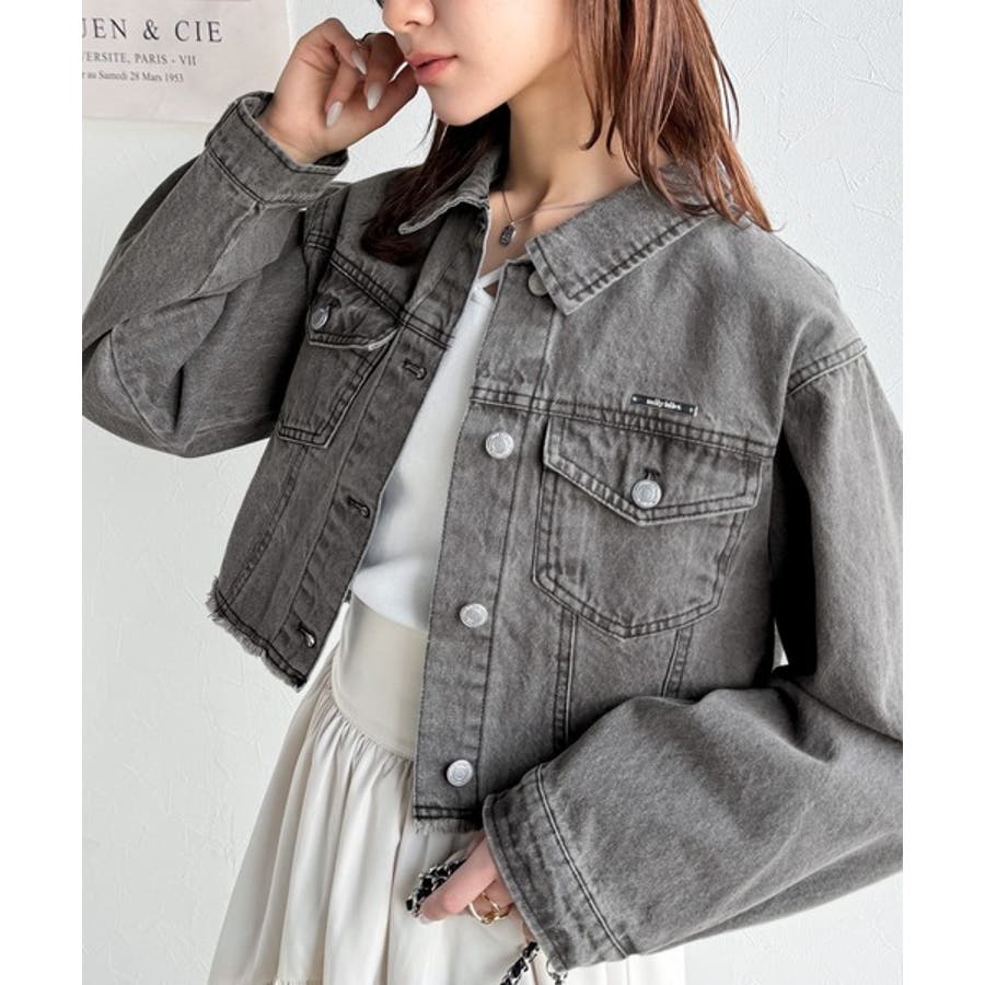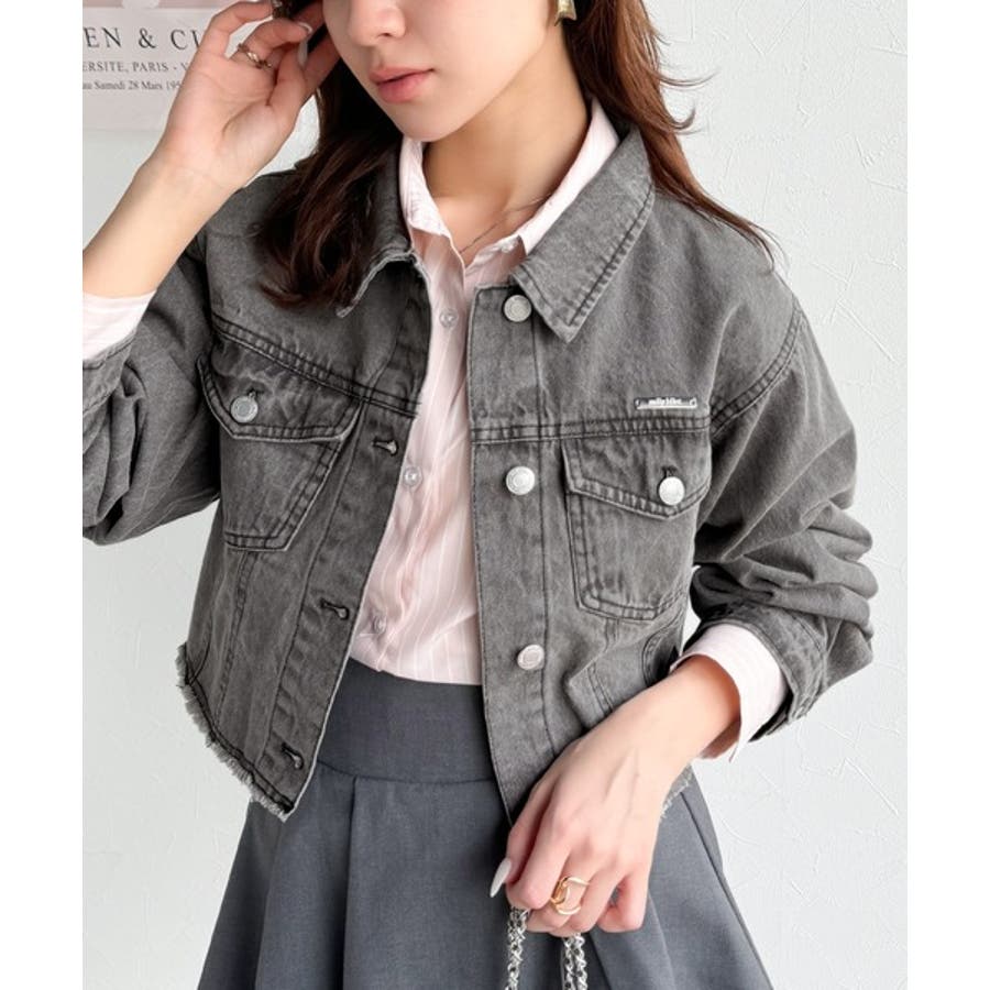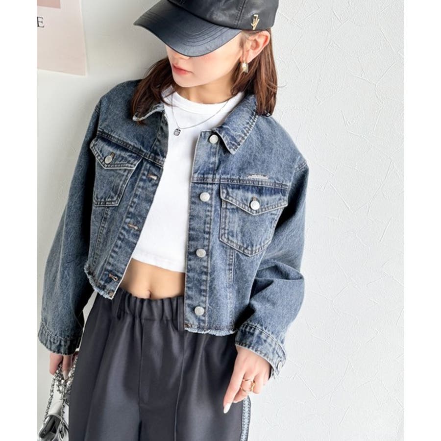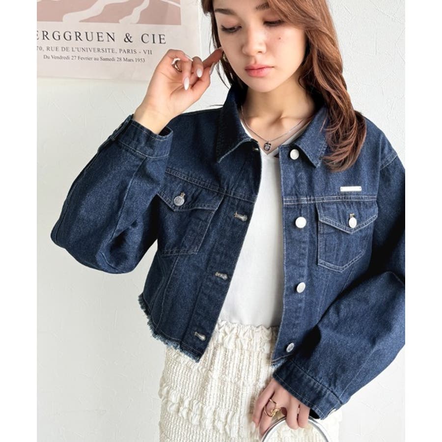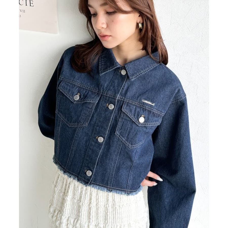 【mily bilet】オリジナルプレートが光る!綿100%フリンジデニムジャケ…