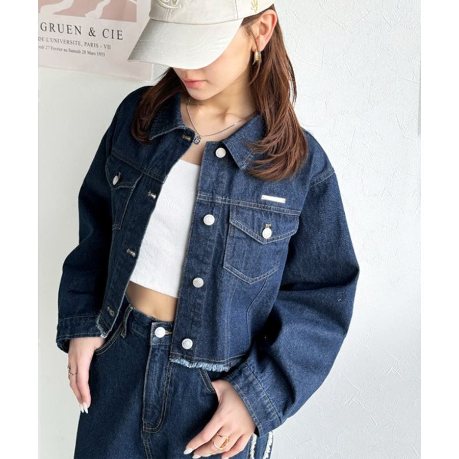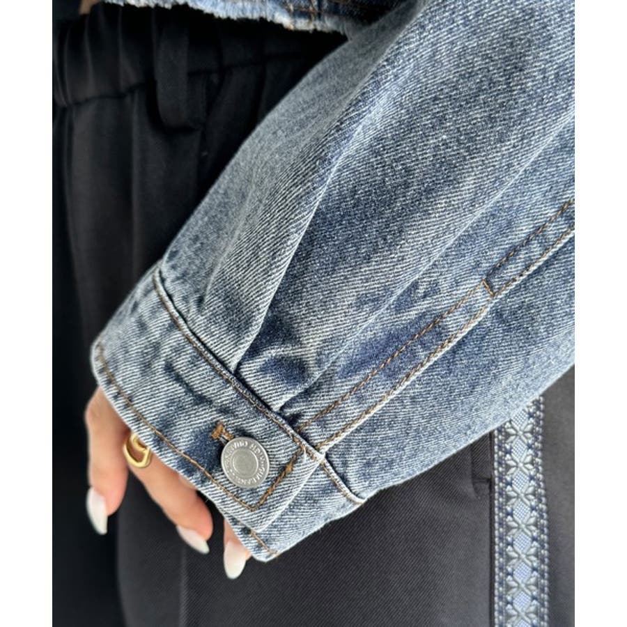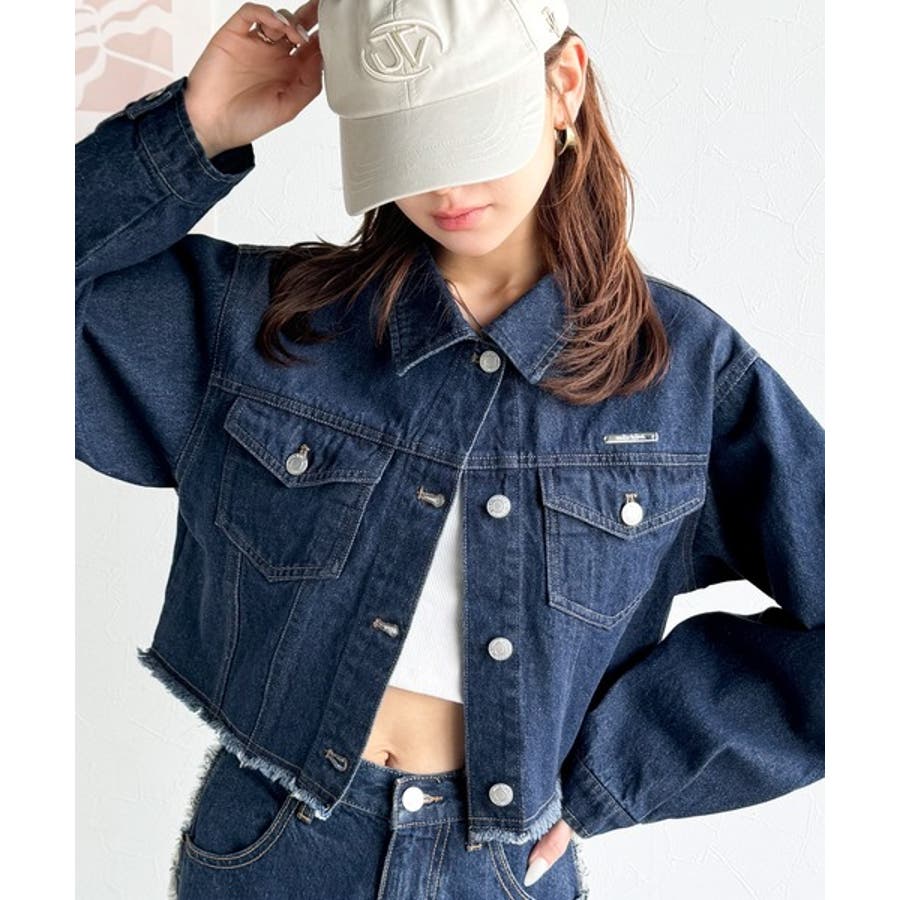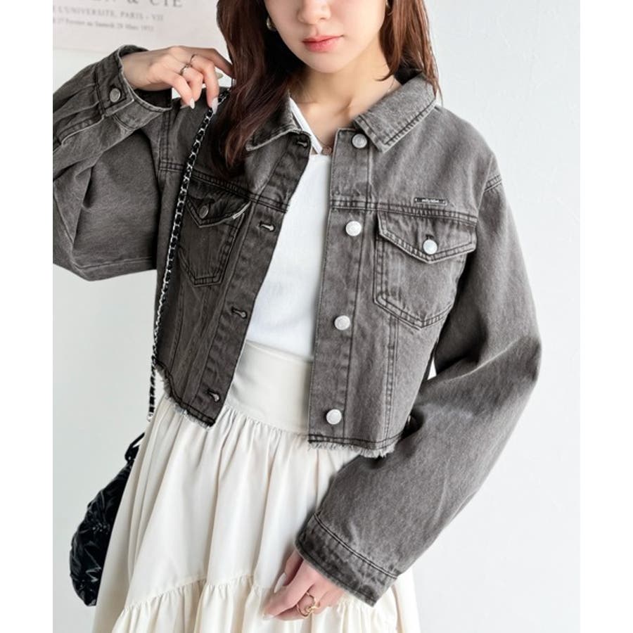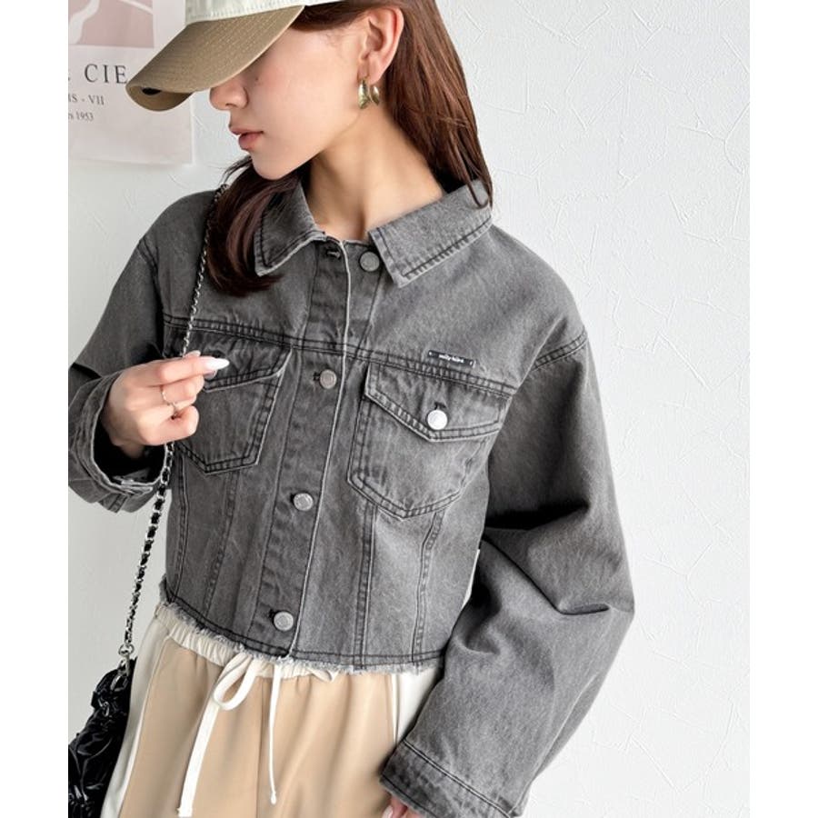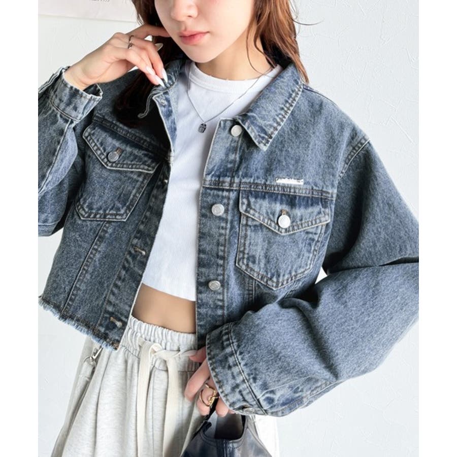 【mily bilet】オリジナルプレートが光る!綿100%フリンジデニムジャケ…