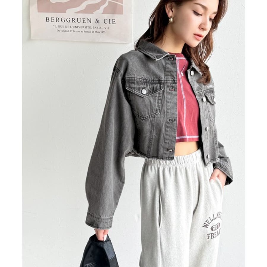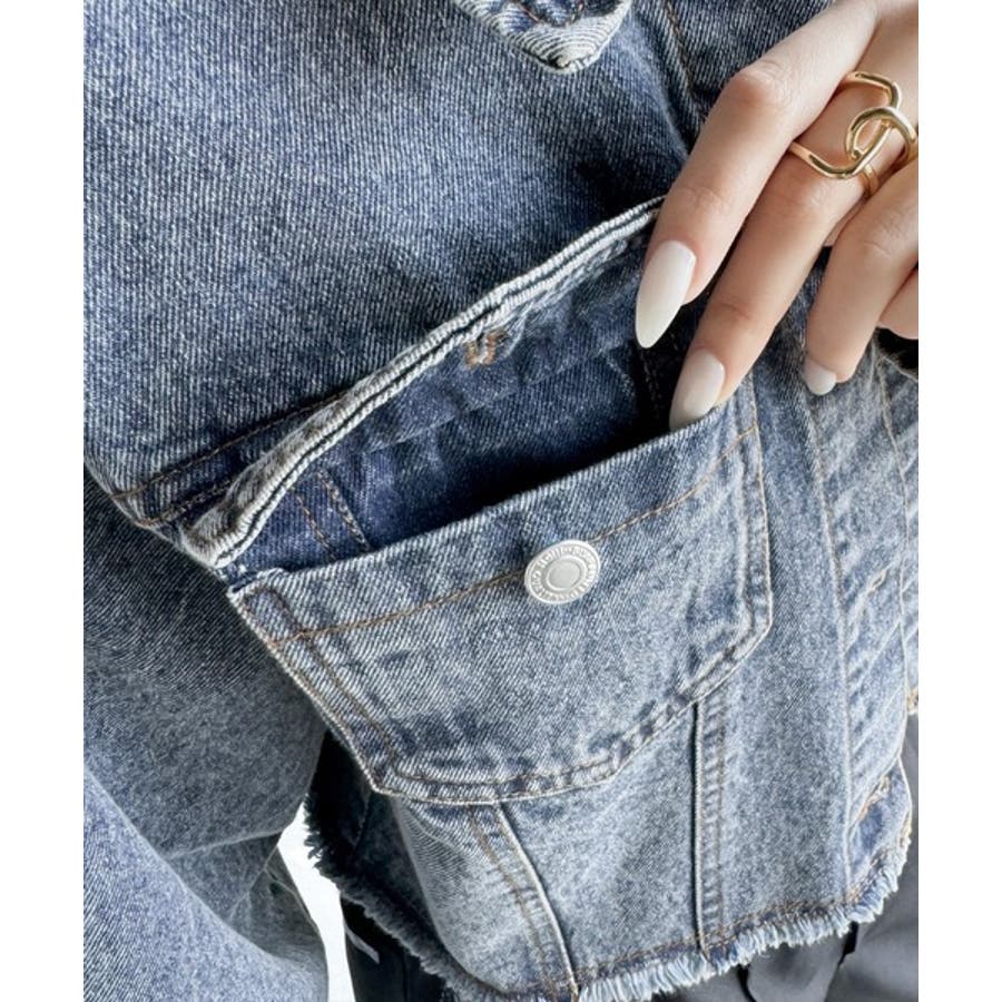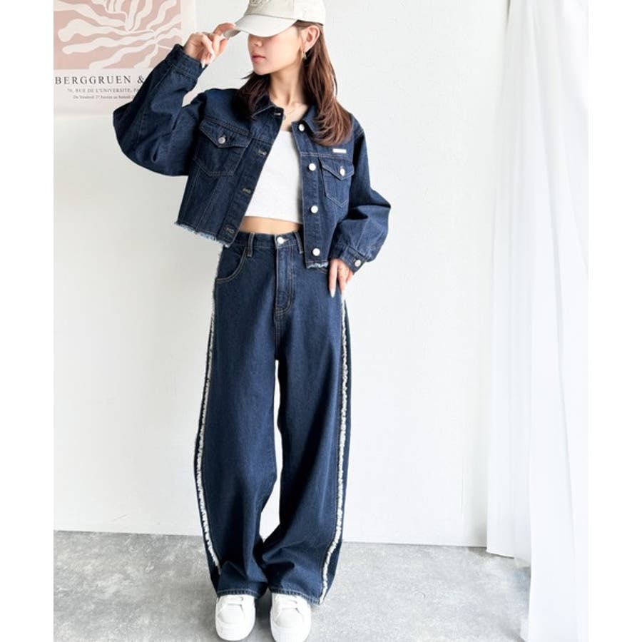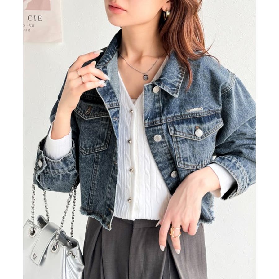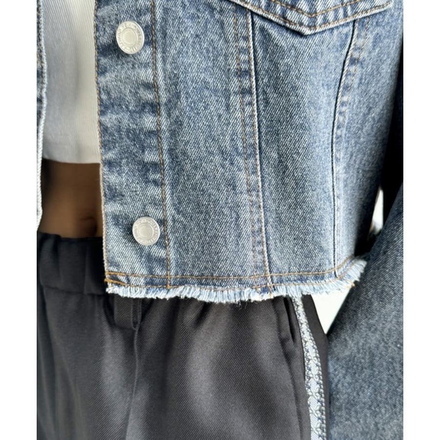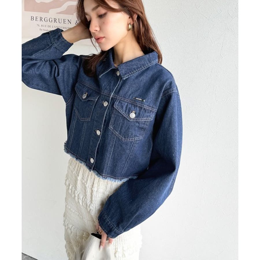 【mily bilet】オリジナルプレートが光る!綿100%フリンジデニムジャケ…